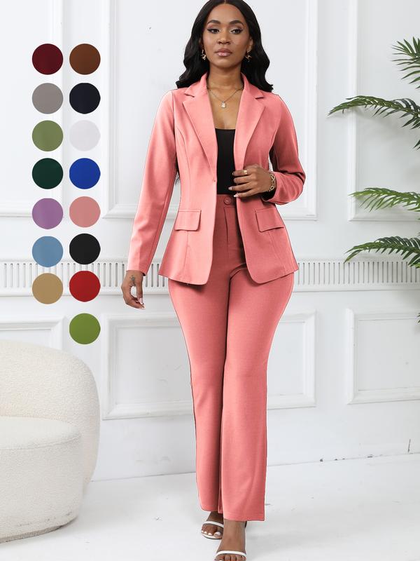 Two-Piece Set Women's Plain Button Lapel Neck Blazer & Suit Pants