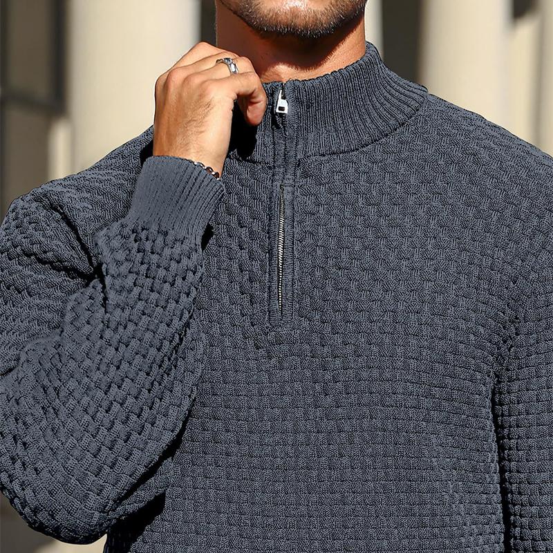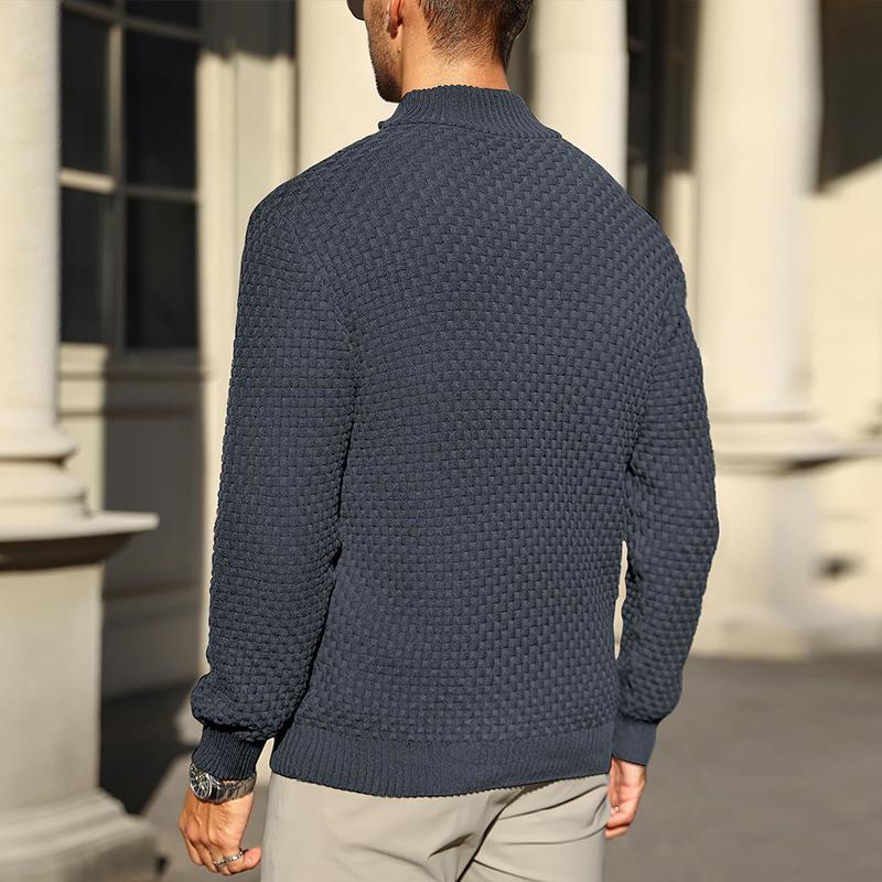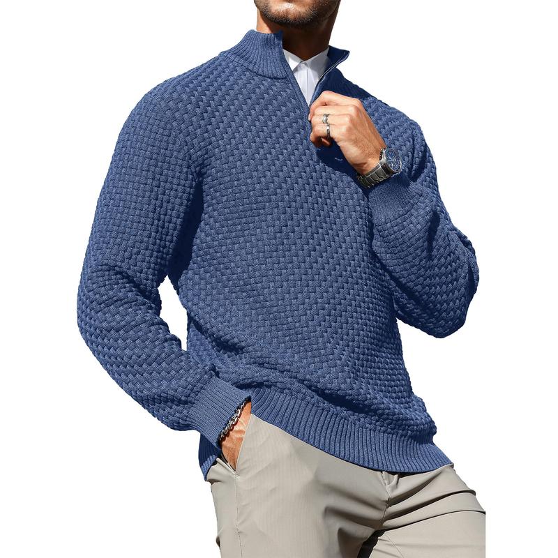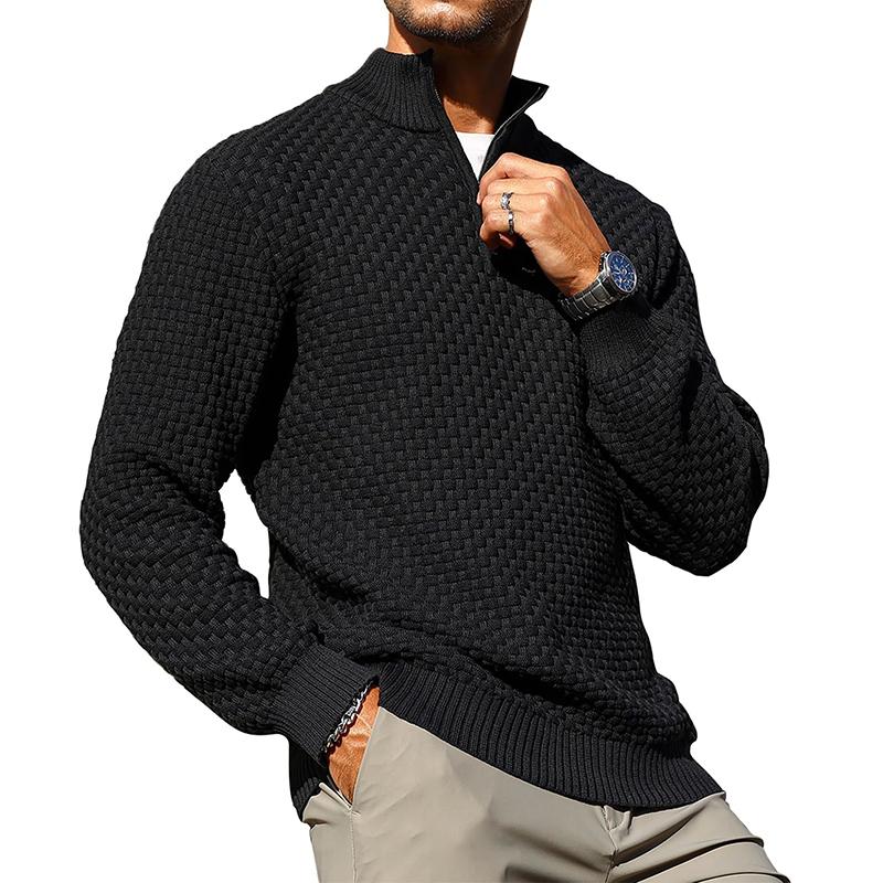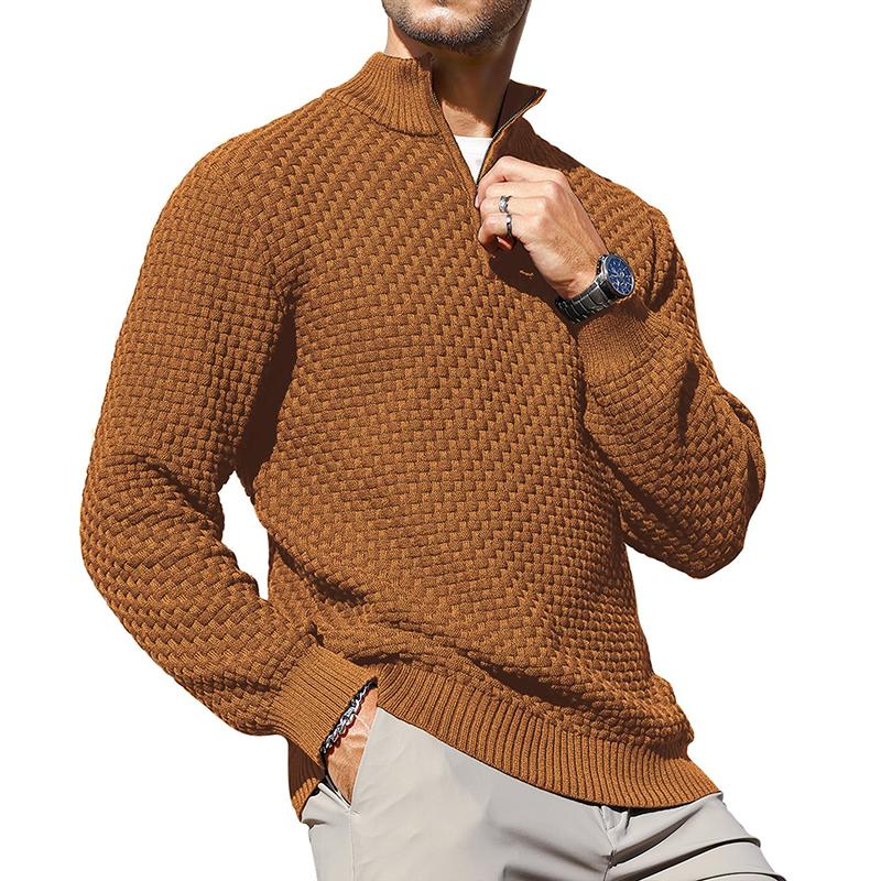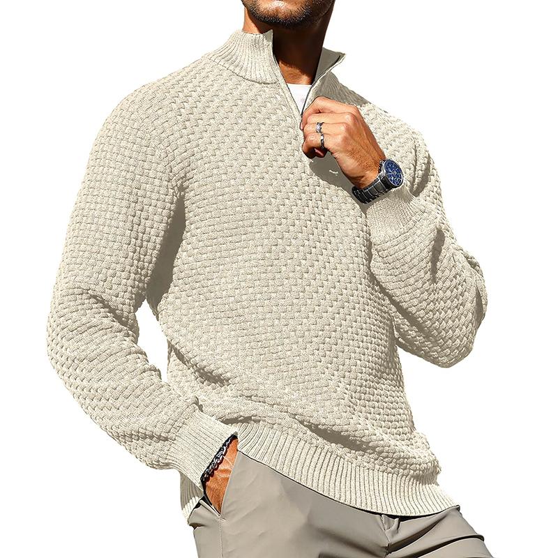 Men’s Cable Knit Quarter-Zip Sweater – Warm Turtleneck Pullover with Zip Collar – Perfect Layer for Cold Days