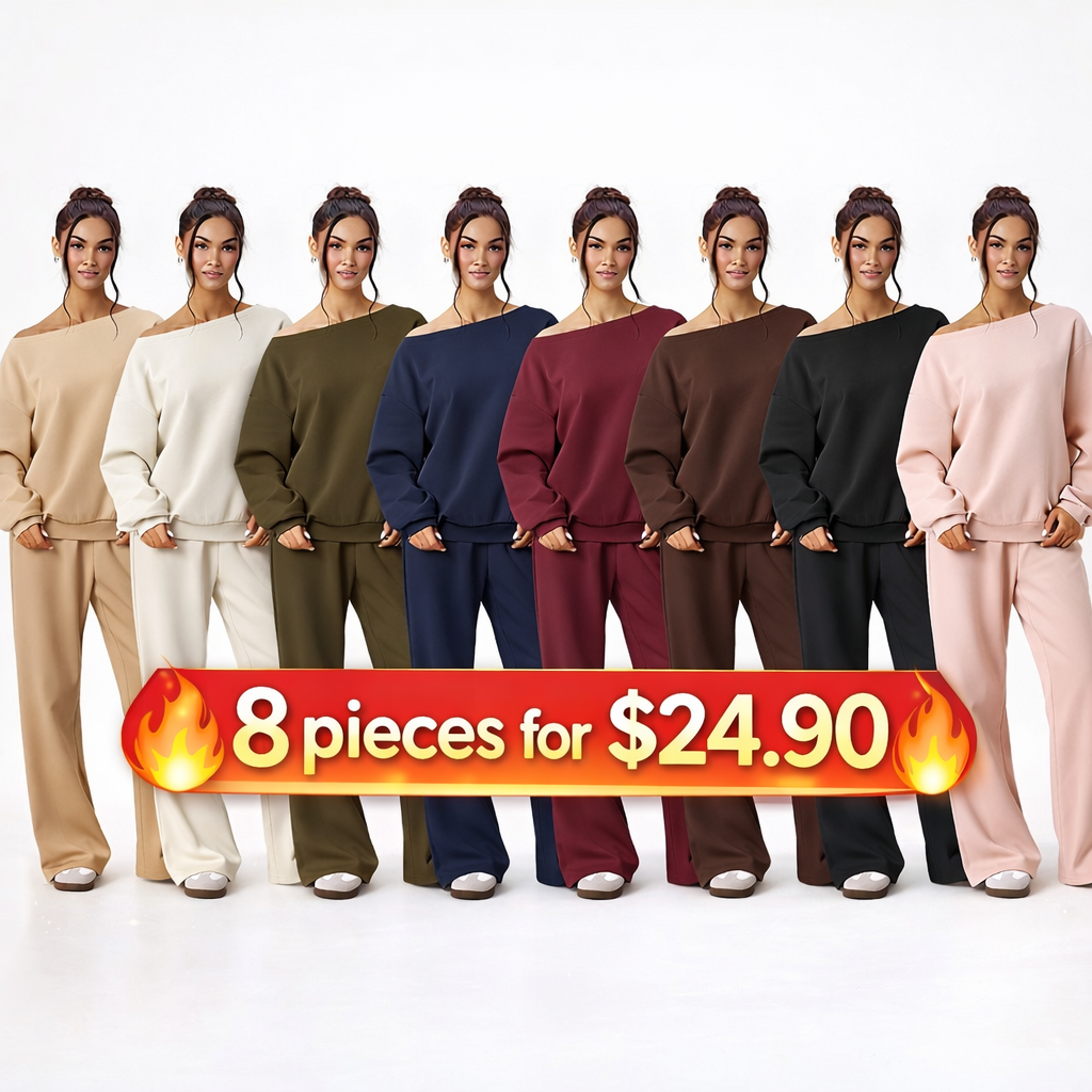 🔥HOT🔥Women's Winter Off-Shoulder Long-Sleeve Top and Wide-Leg Pants Set