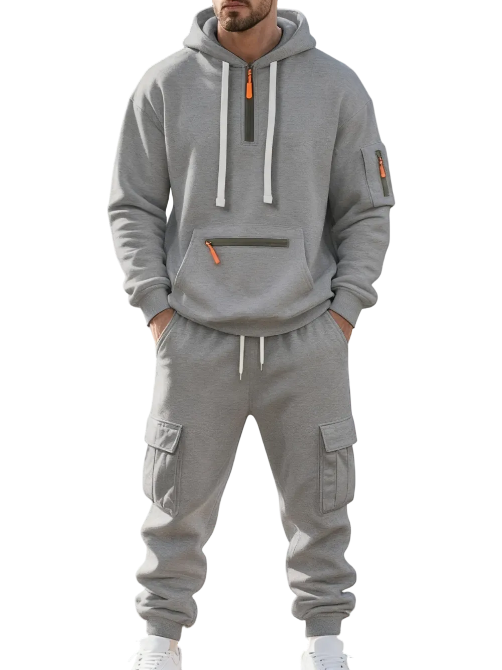 Christmas exclusive sale!Men Winter Fleece-Lined Set Warm Casual Workwear Outfit with Multi-Pocket Jacket & Pants