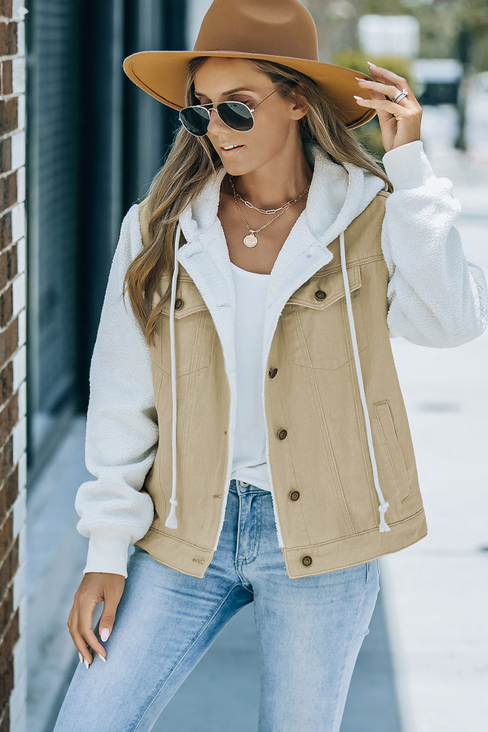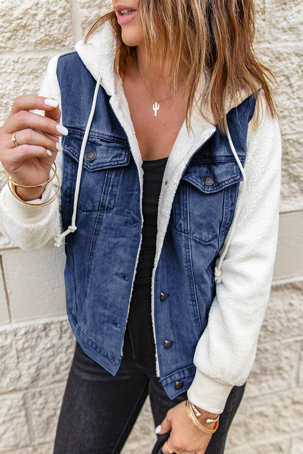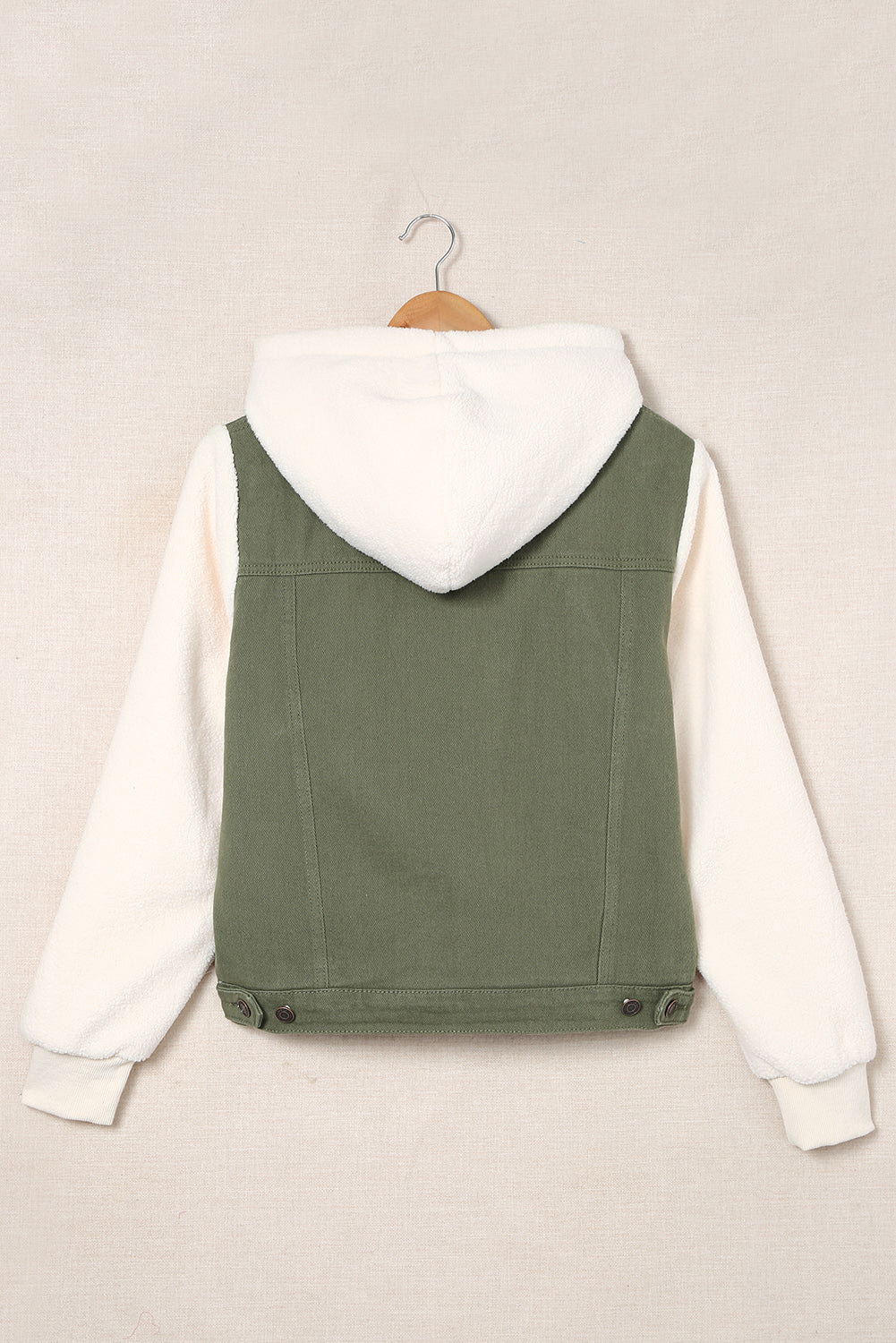 Two-Tone Spliced Denim Sherpa Hooded Jacket
