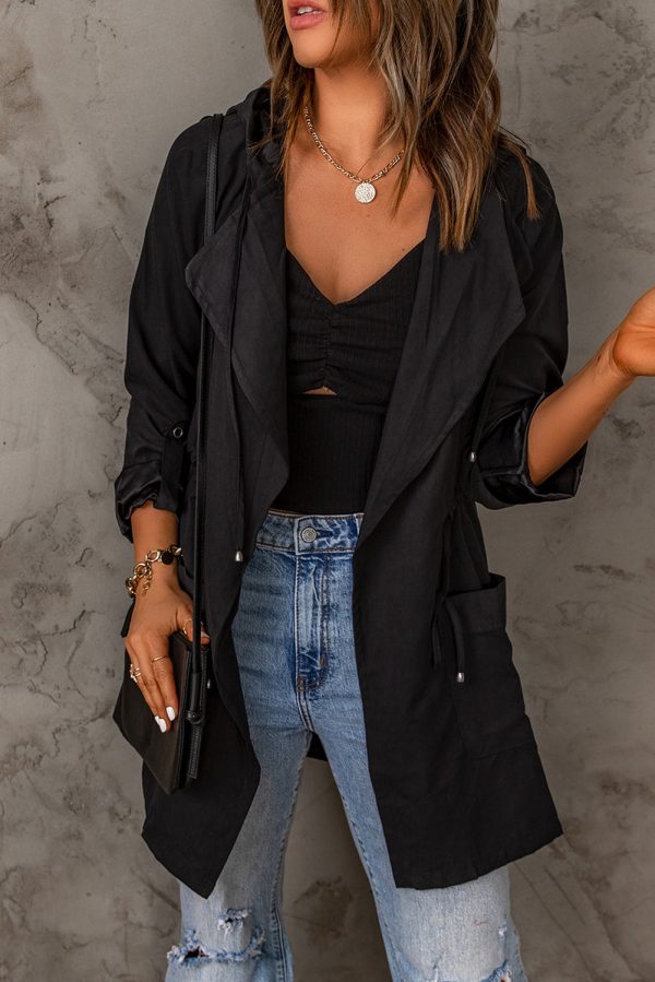 Drawstring Waist Hooded Jacket with Pockets