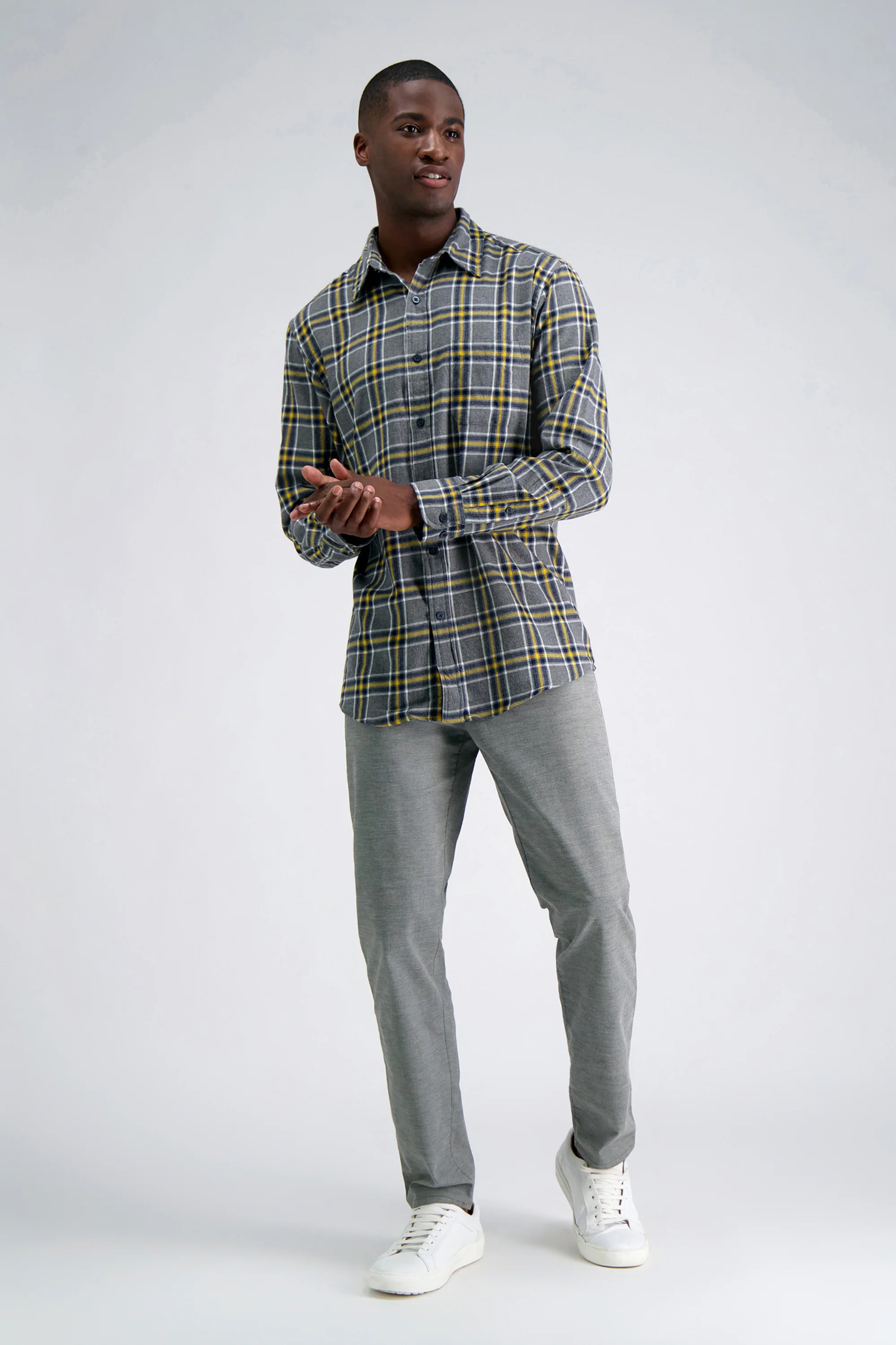 Long Sleeve Flannel Plaid Shirt - Yellow