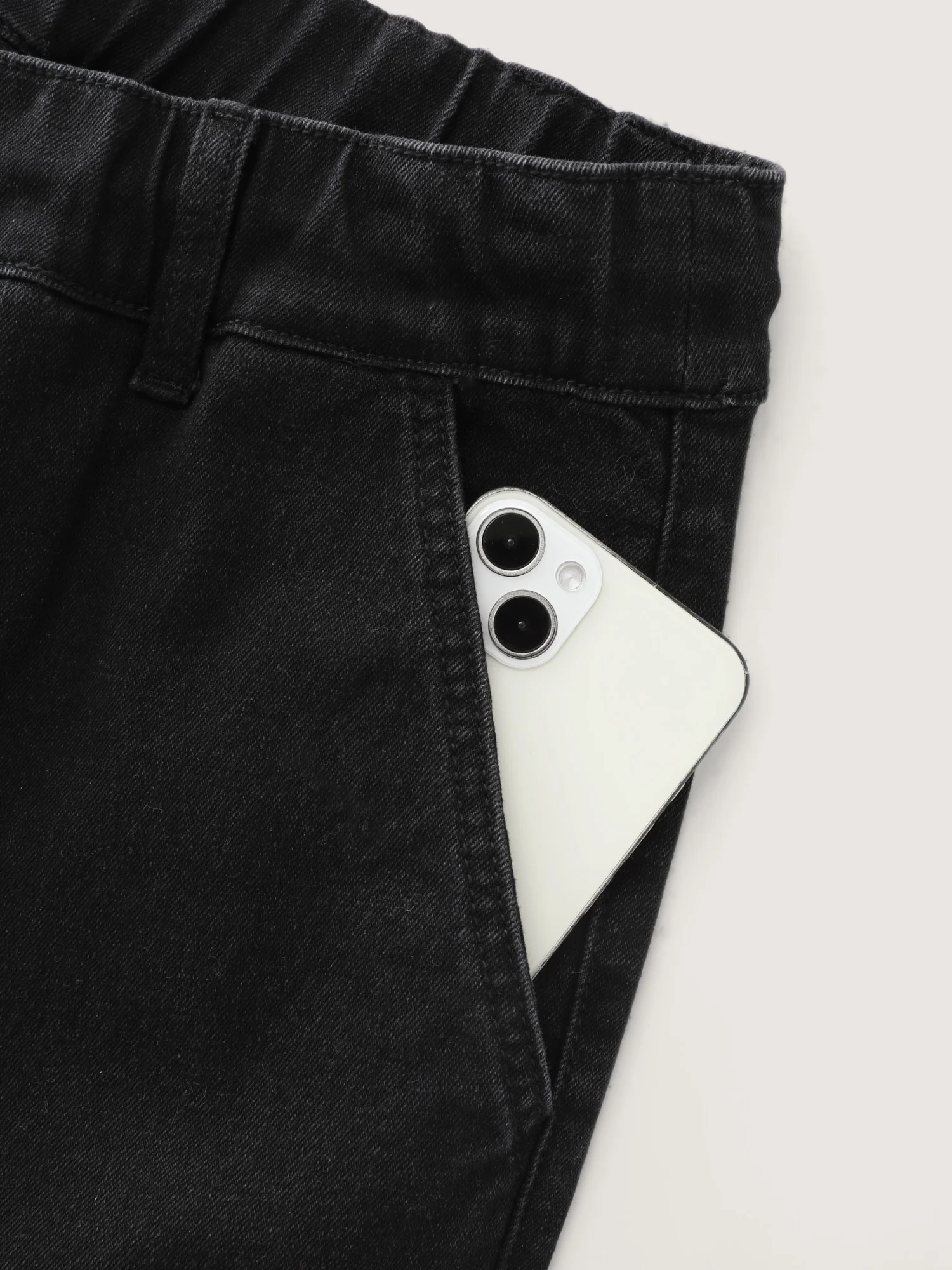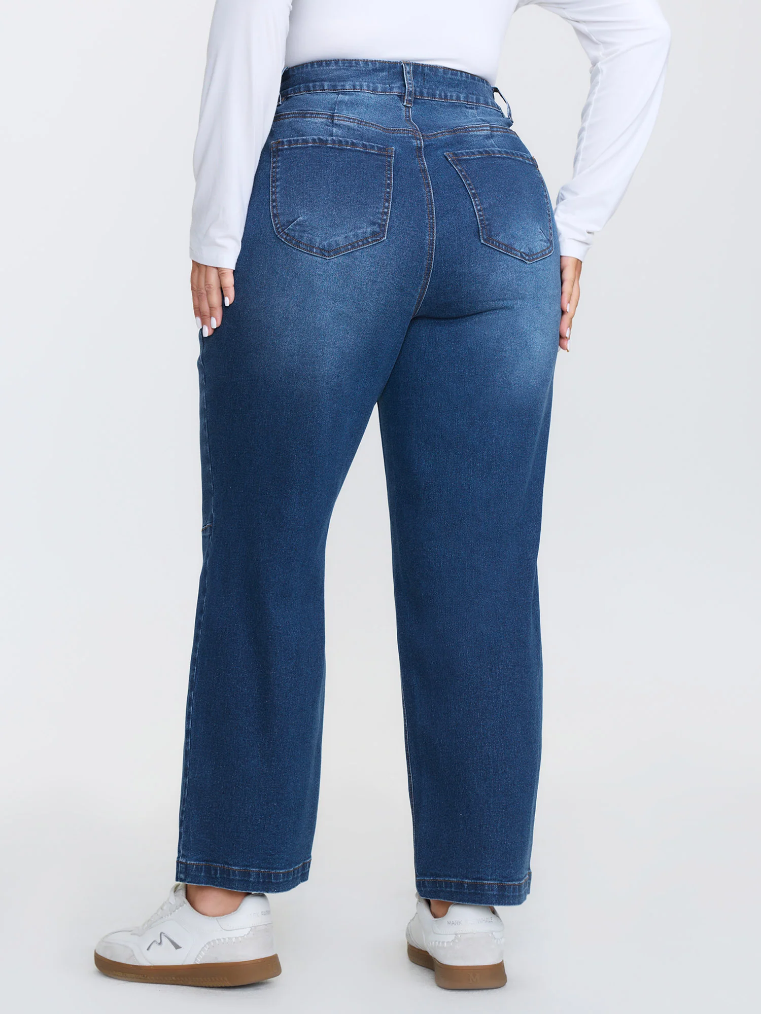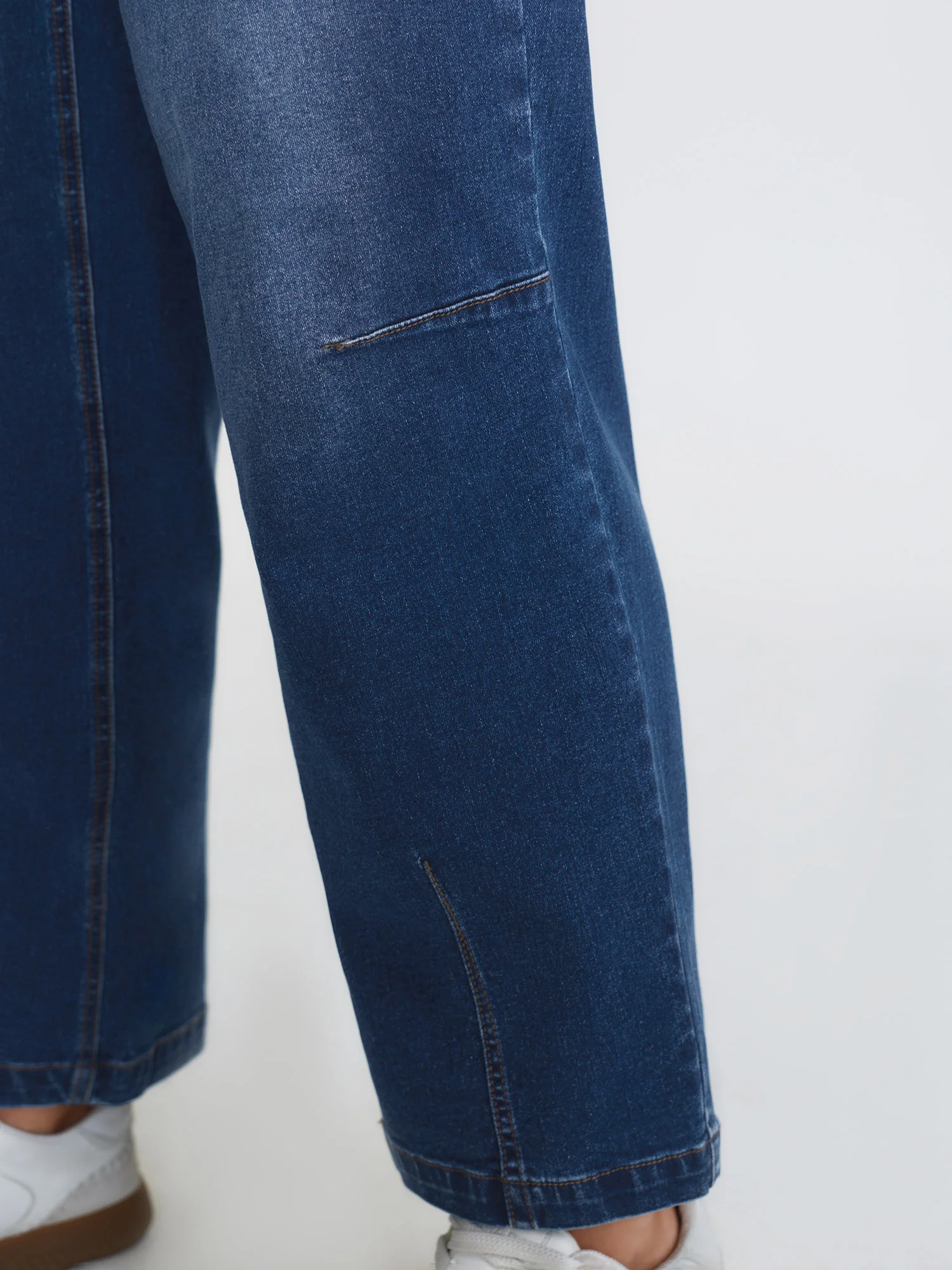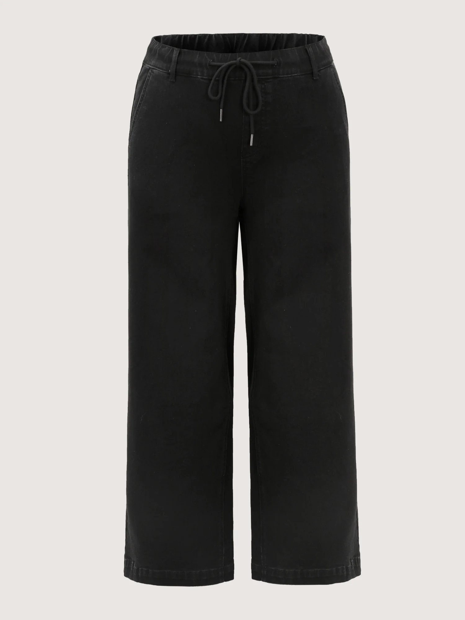 Stretchy Pull-On Drawstring Waist Wide-Leg Jeans