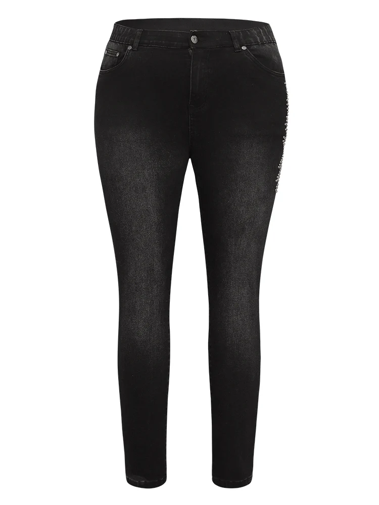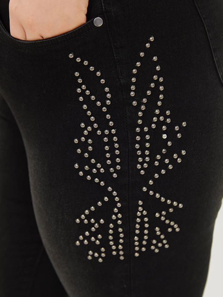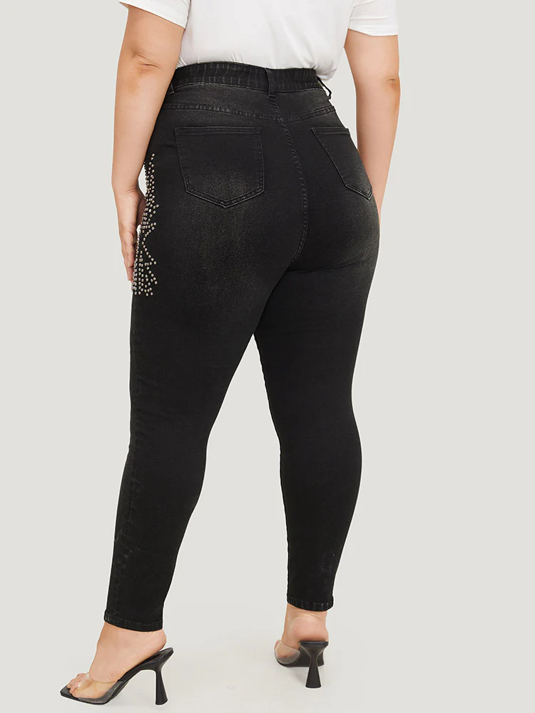 Beaded Detail Pocket Very Stretchy Black Wash Jeans