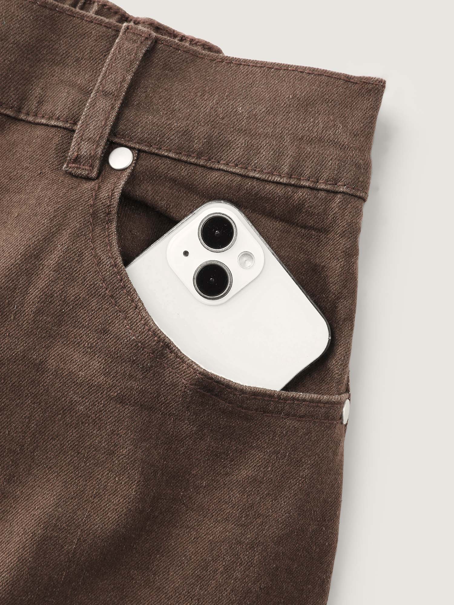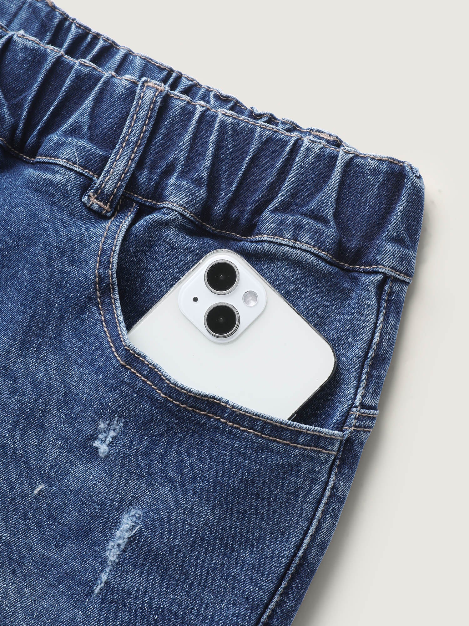 Vintage Wash Rubber Waist Straight-Leg Jeans