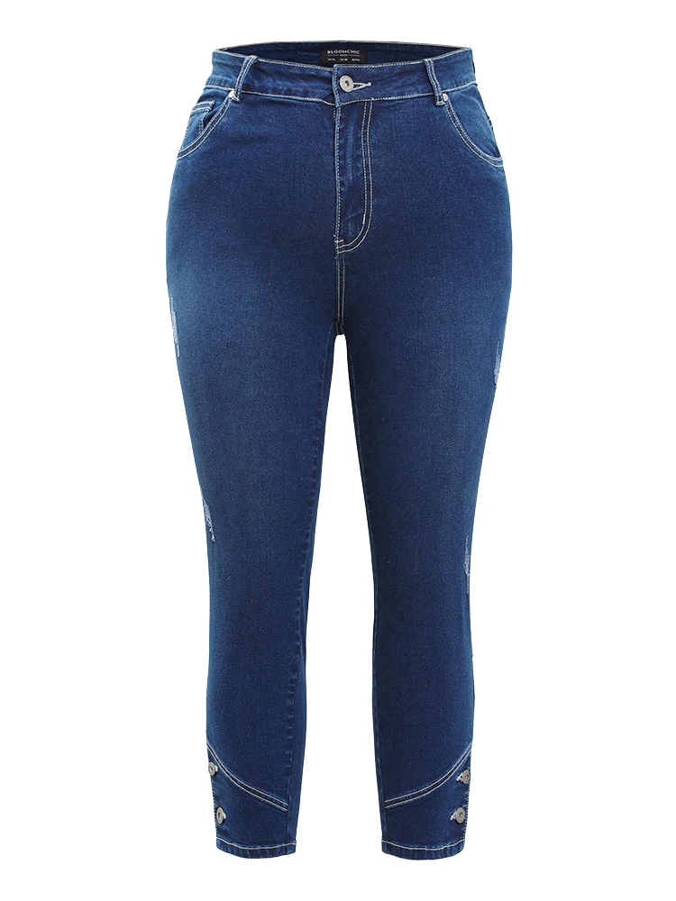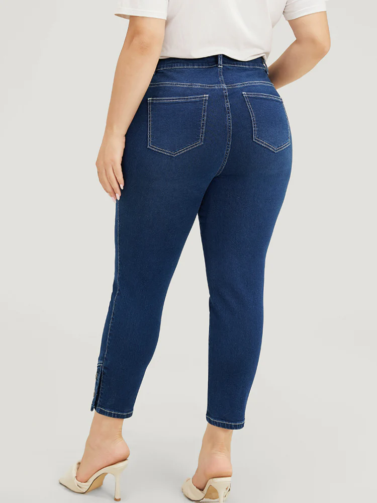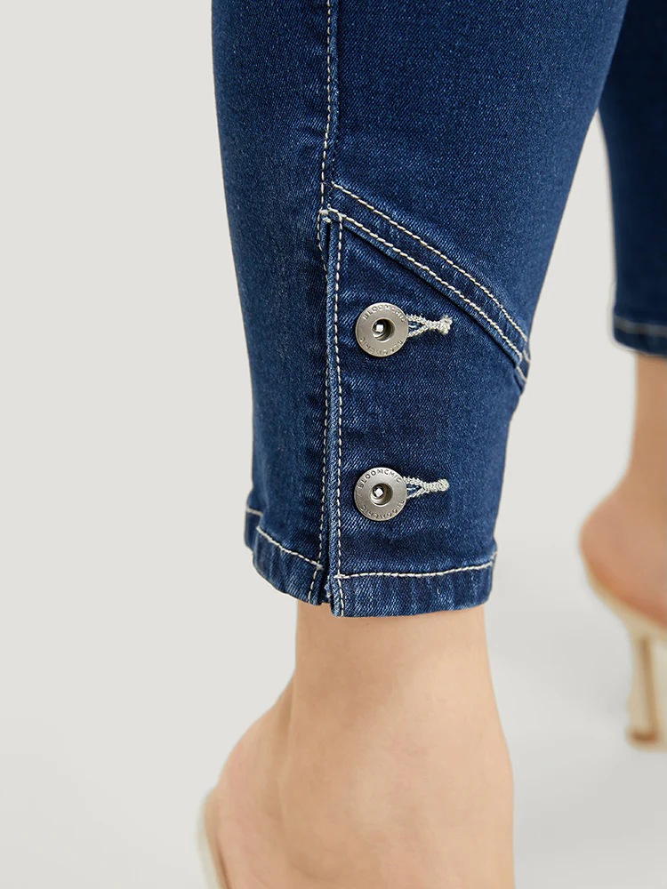 Very Stretchy High Rise Dark Wash Button Hem Jeans
