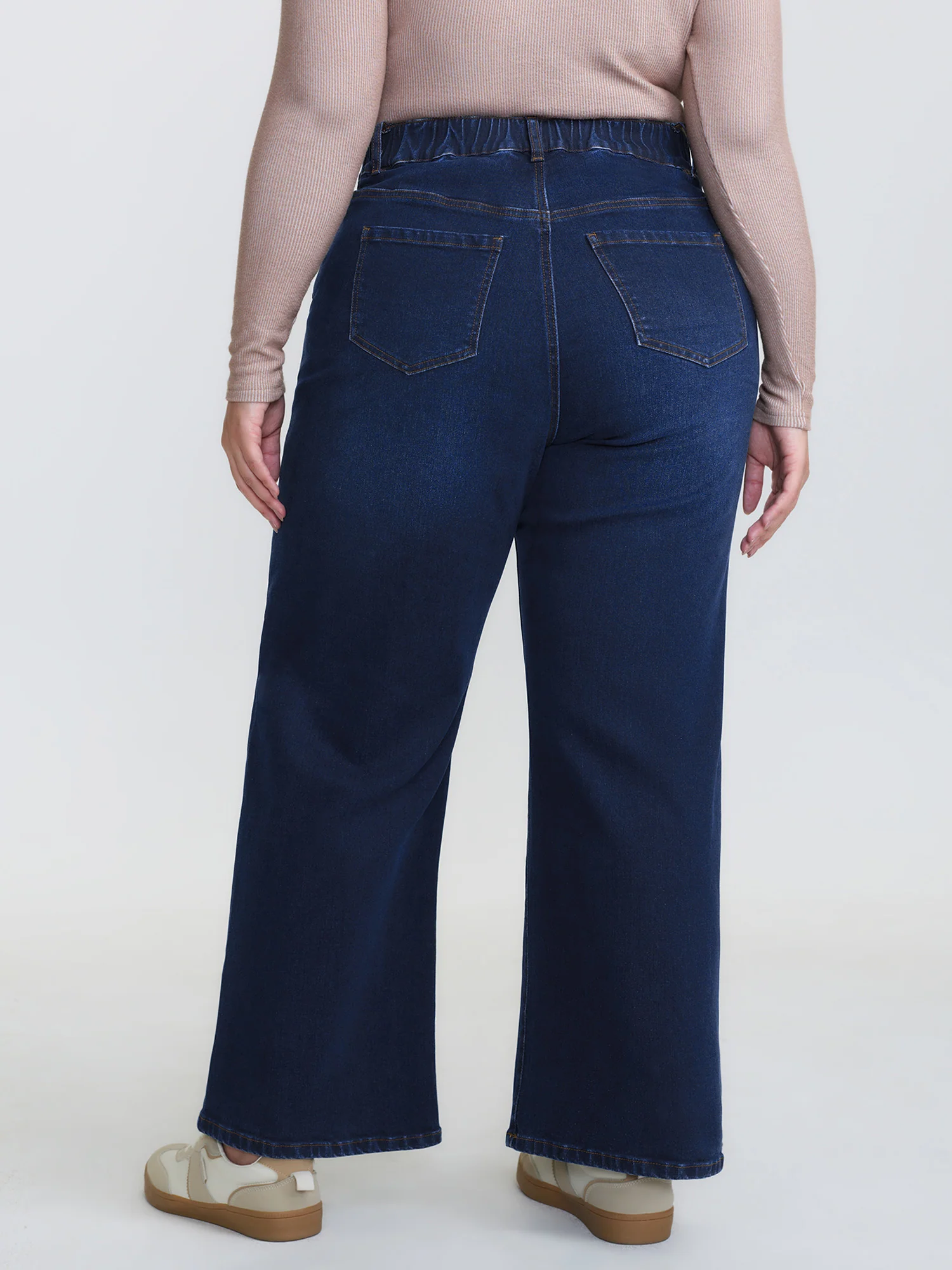Mid-Rise Elastic Waistband Wide-Leg Jeans