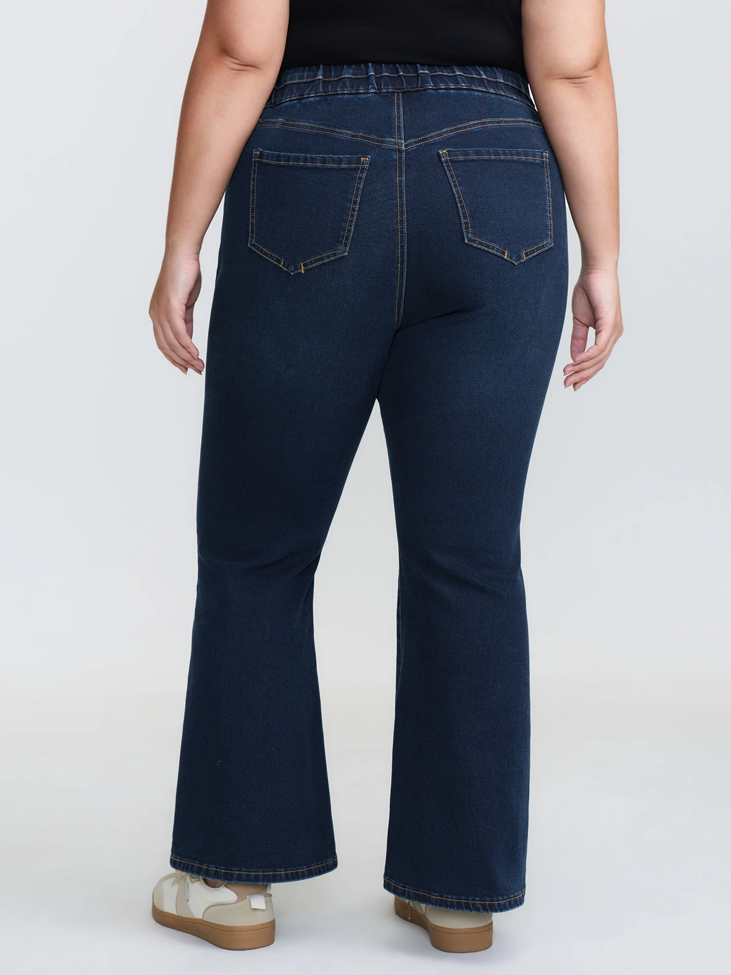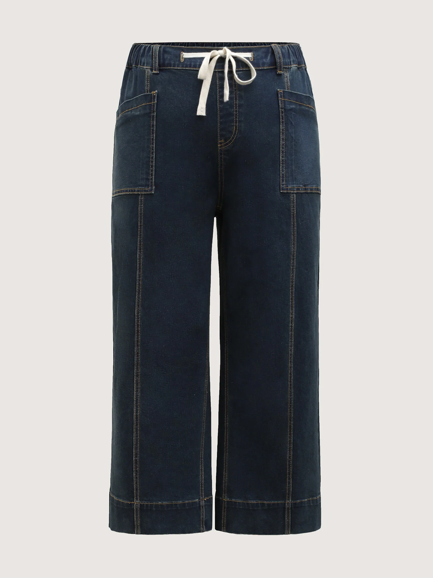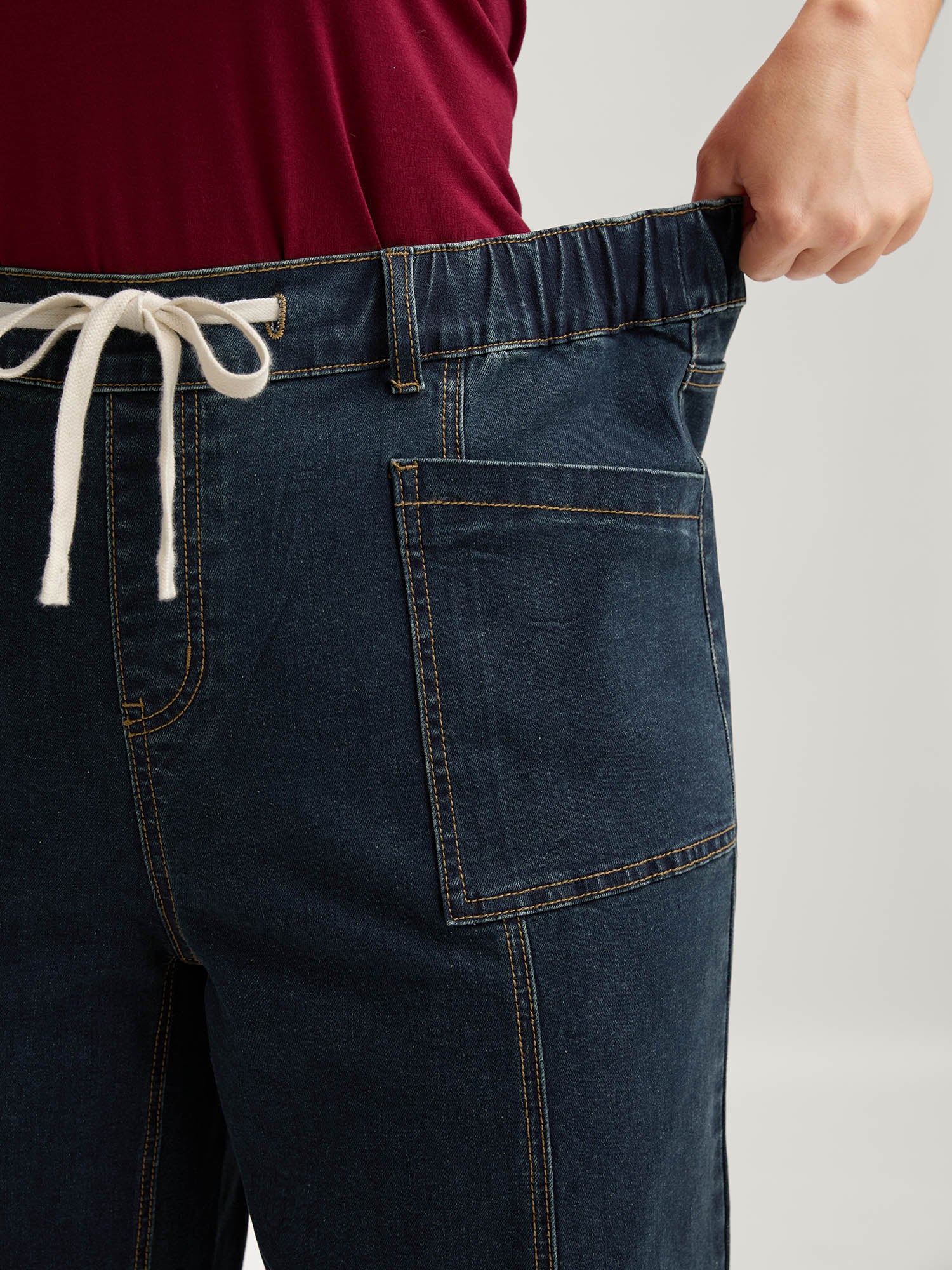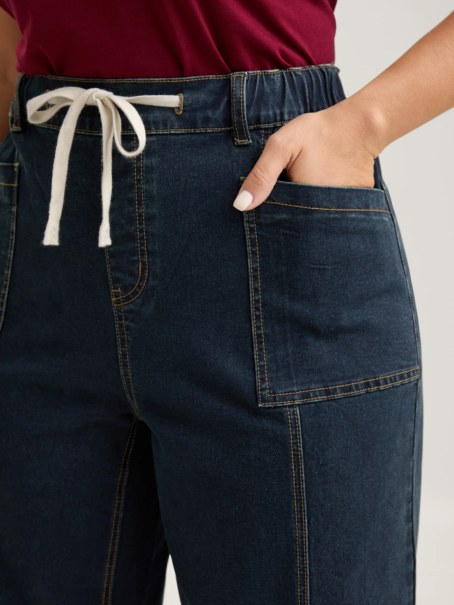 Drawstring Waist Elastic Waist Straight-Leg Jeans