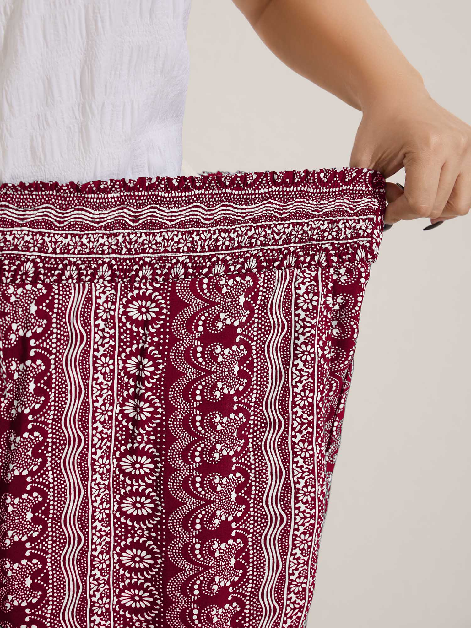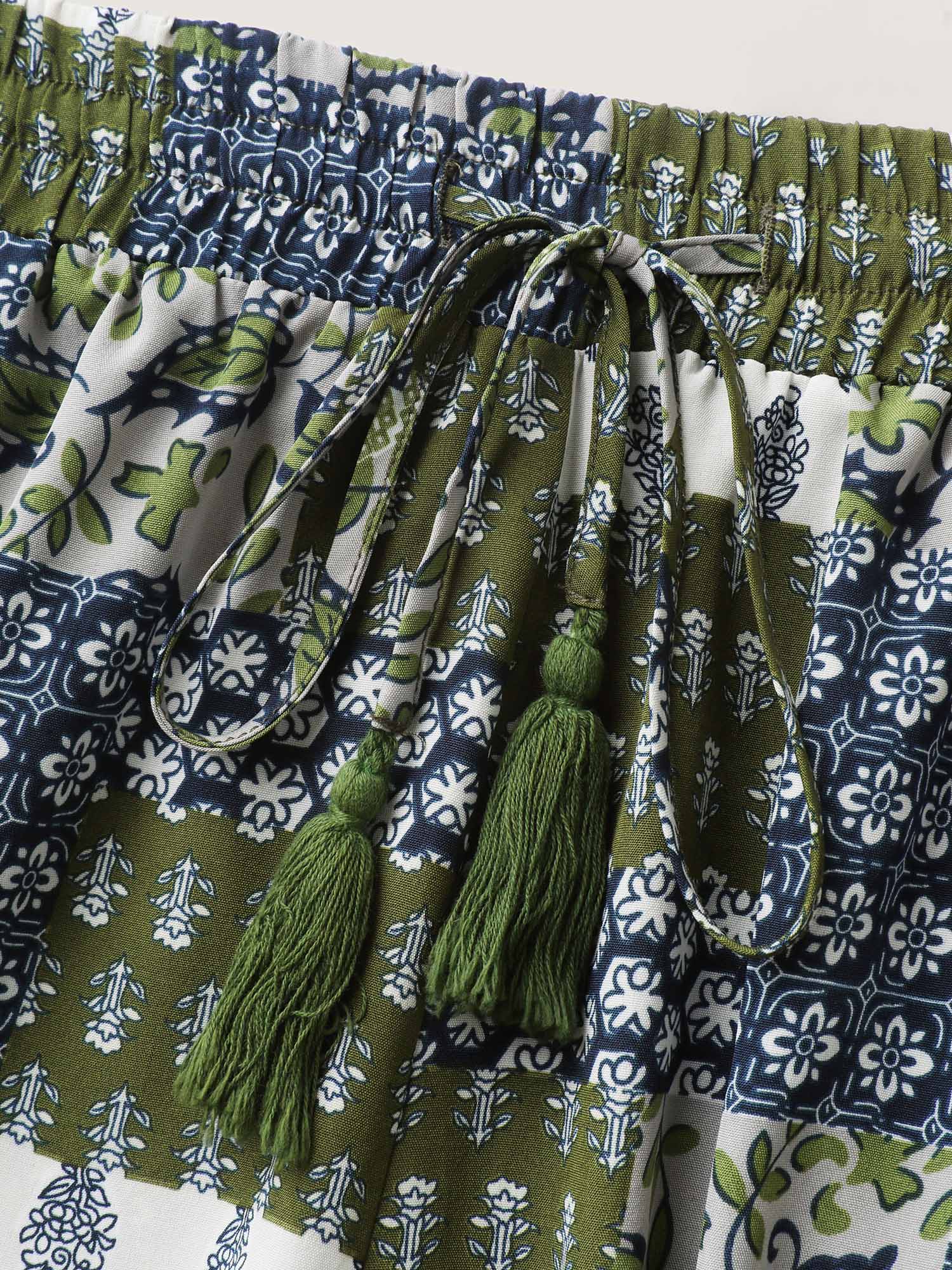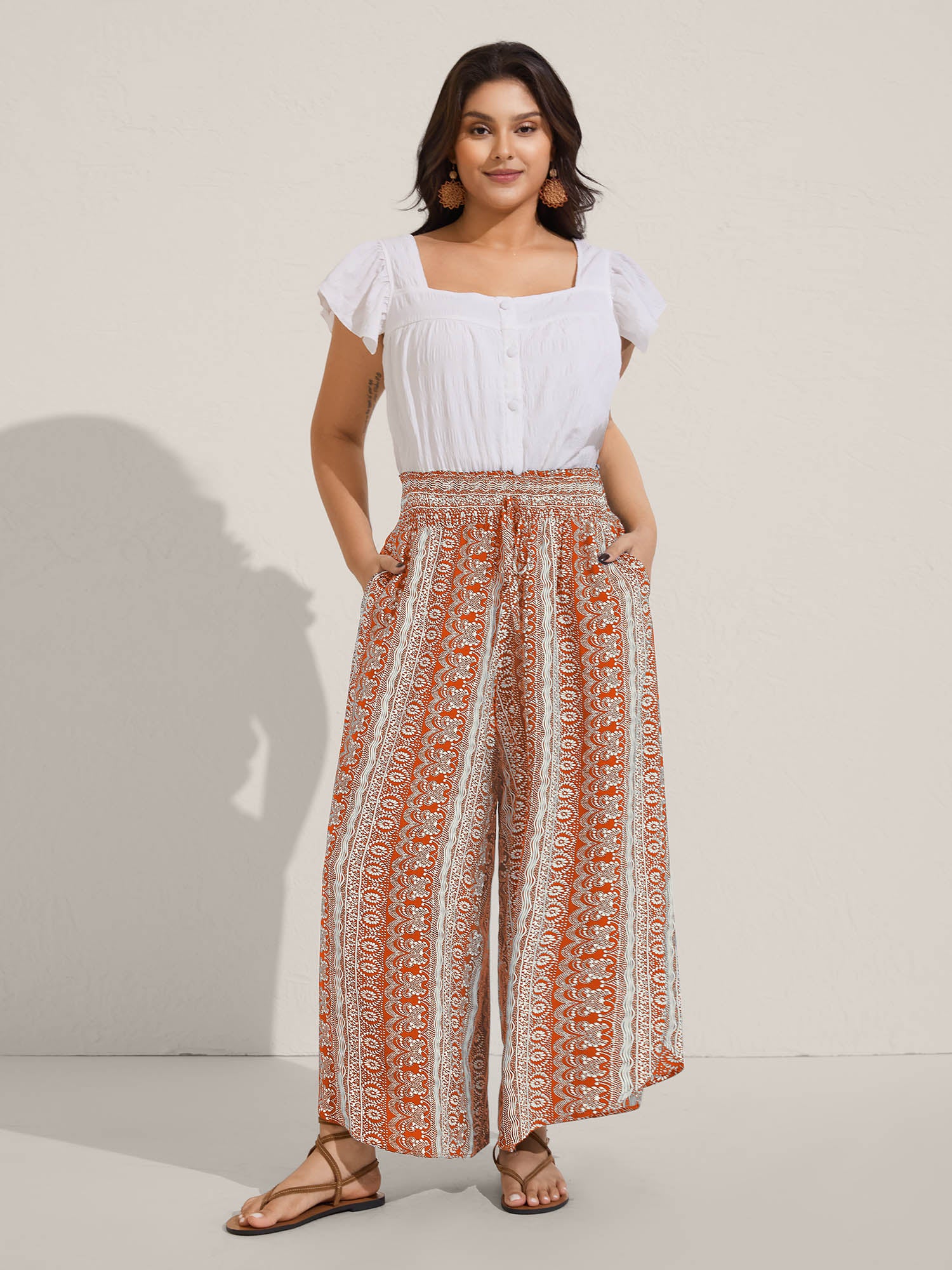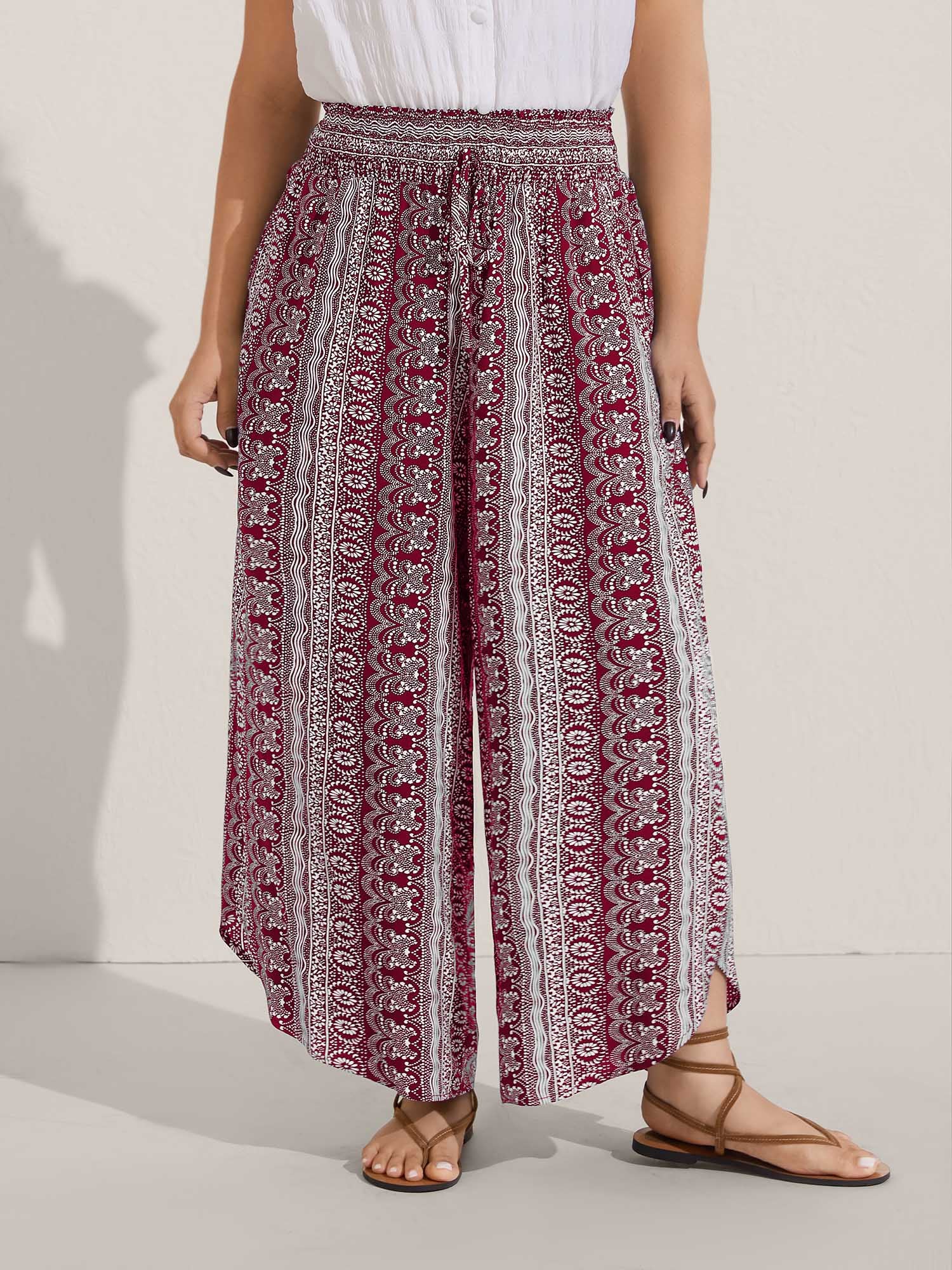 Cotton Waist-Tie Lace Wide-Leg Pants