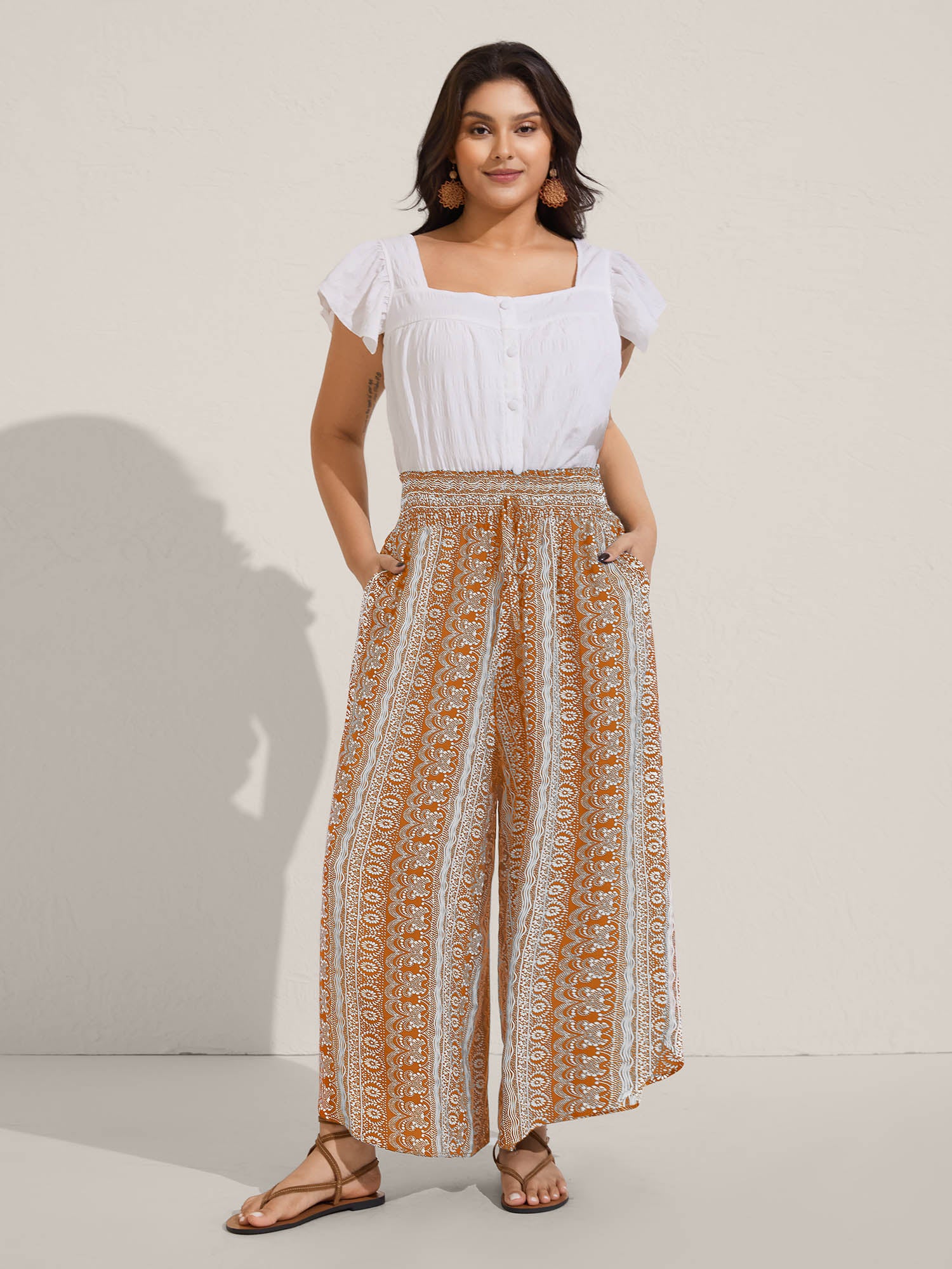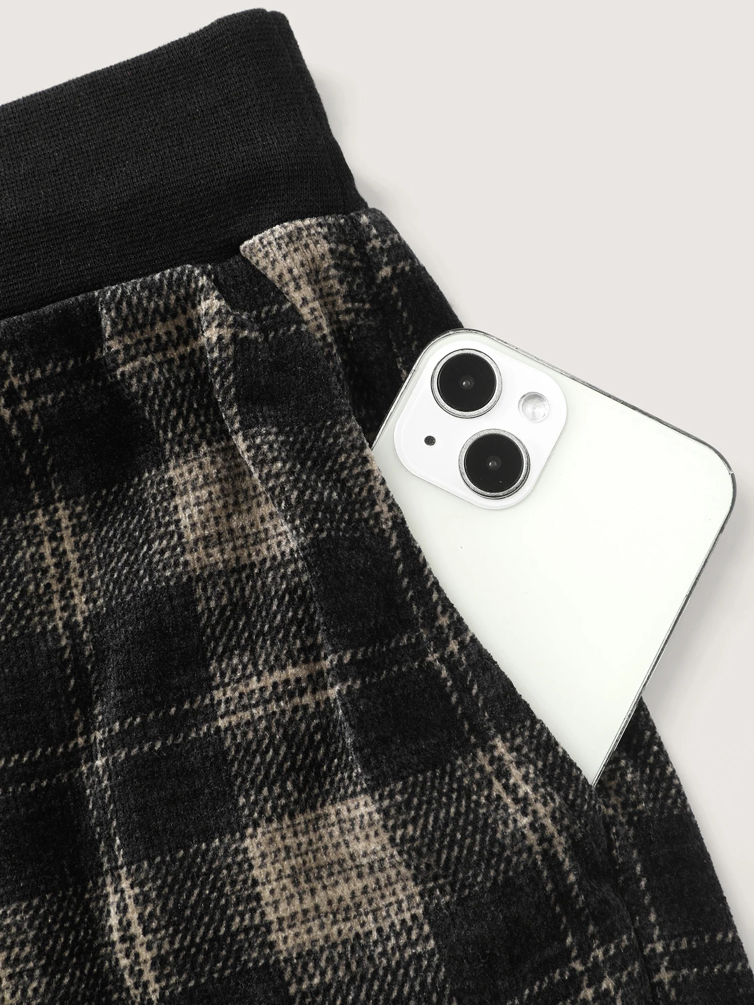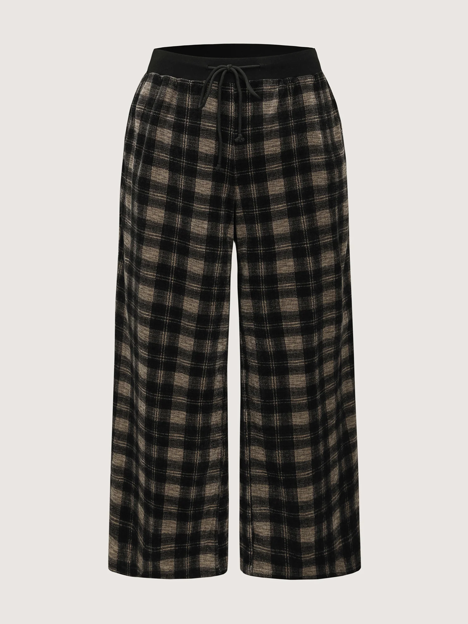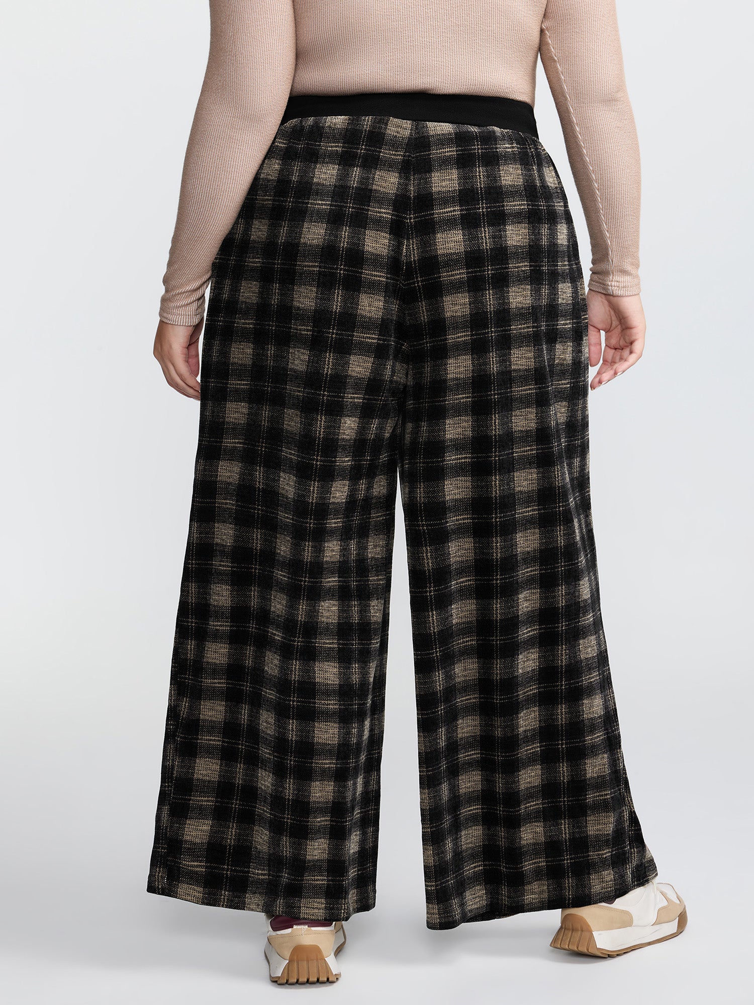 Supersoft Plaid Color Contrast Wide-Leg Pants