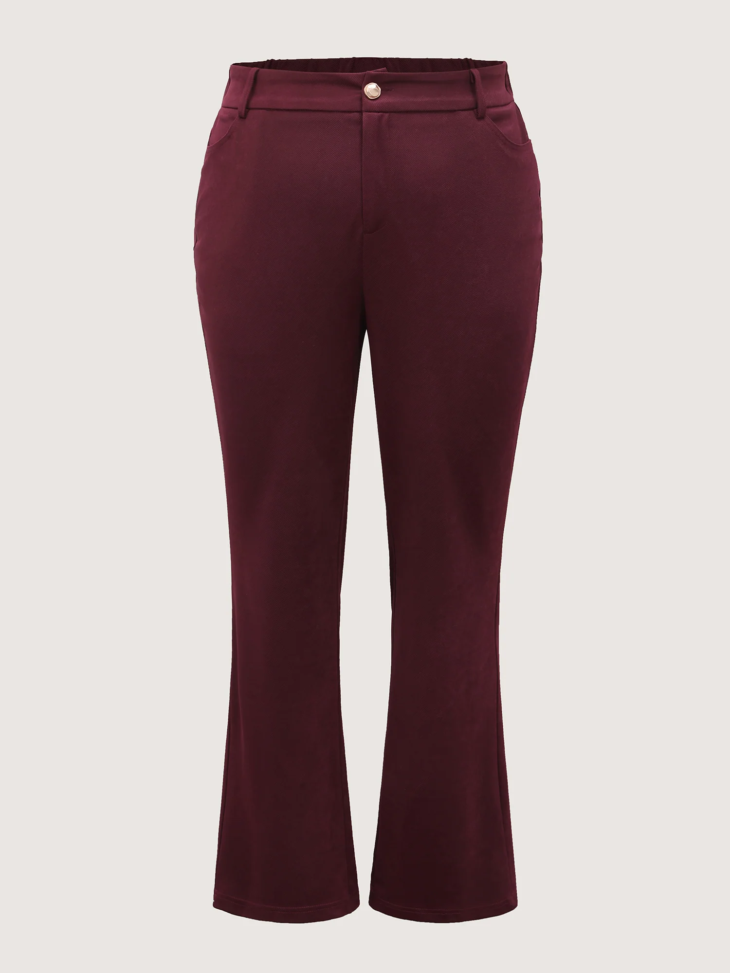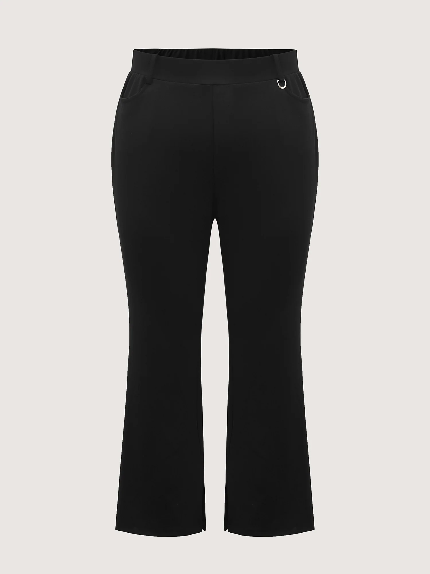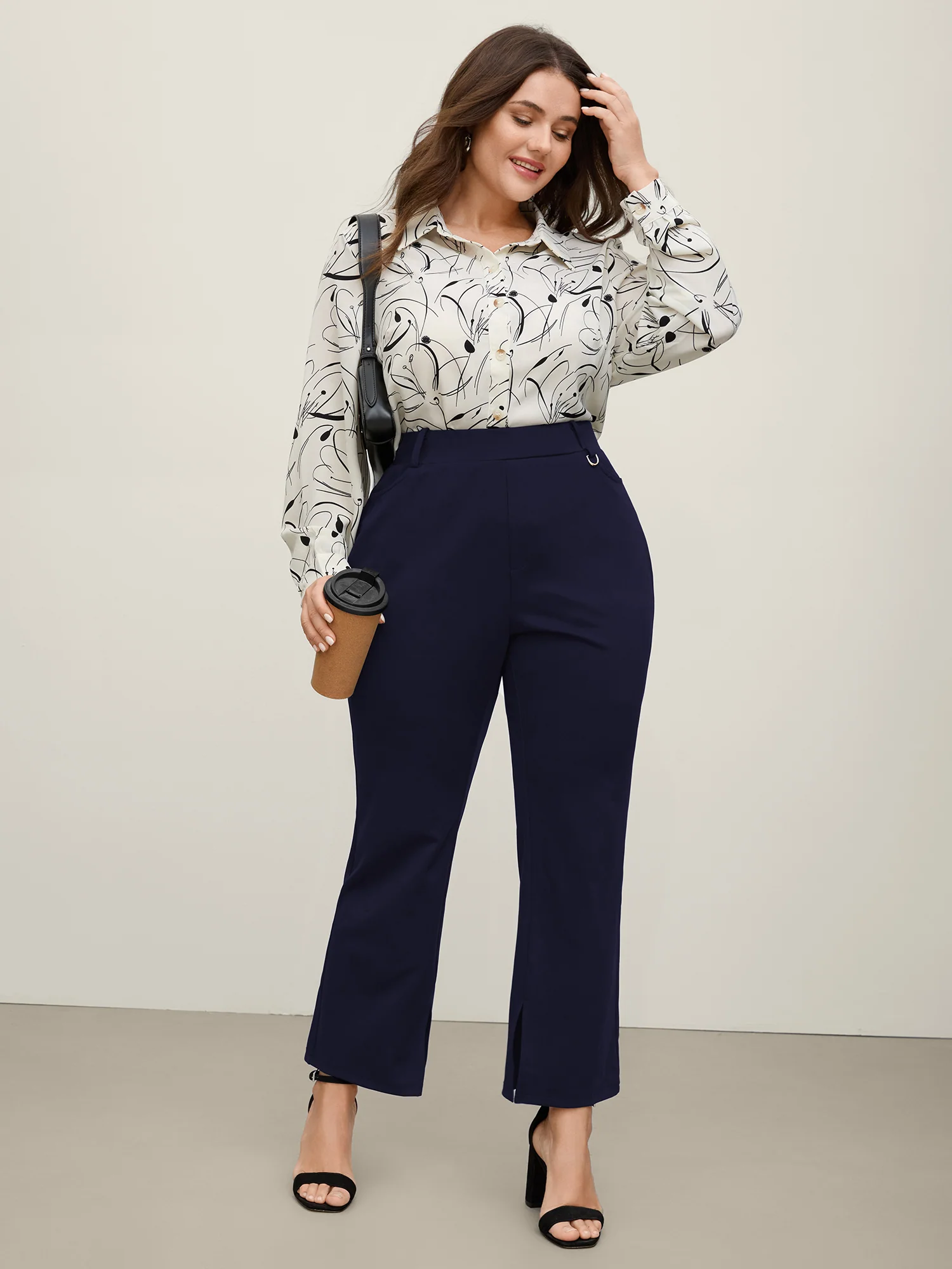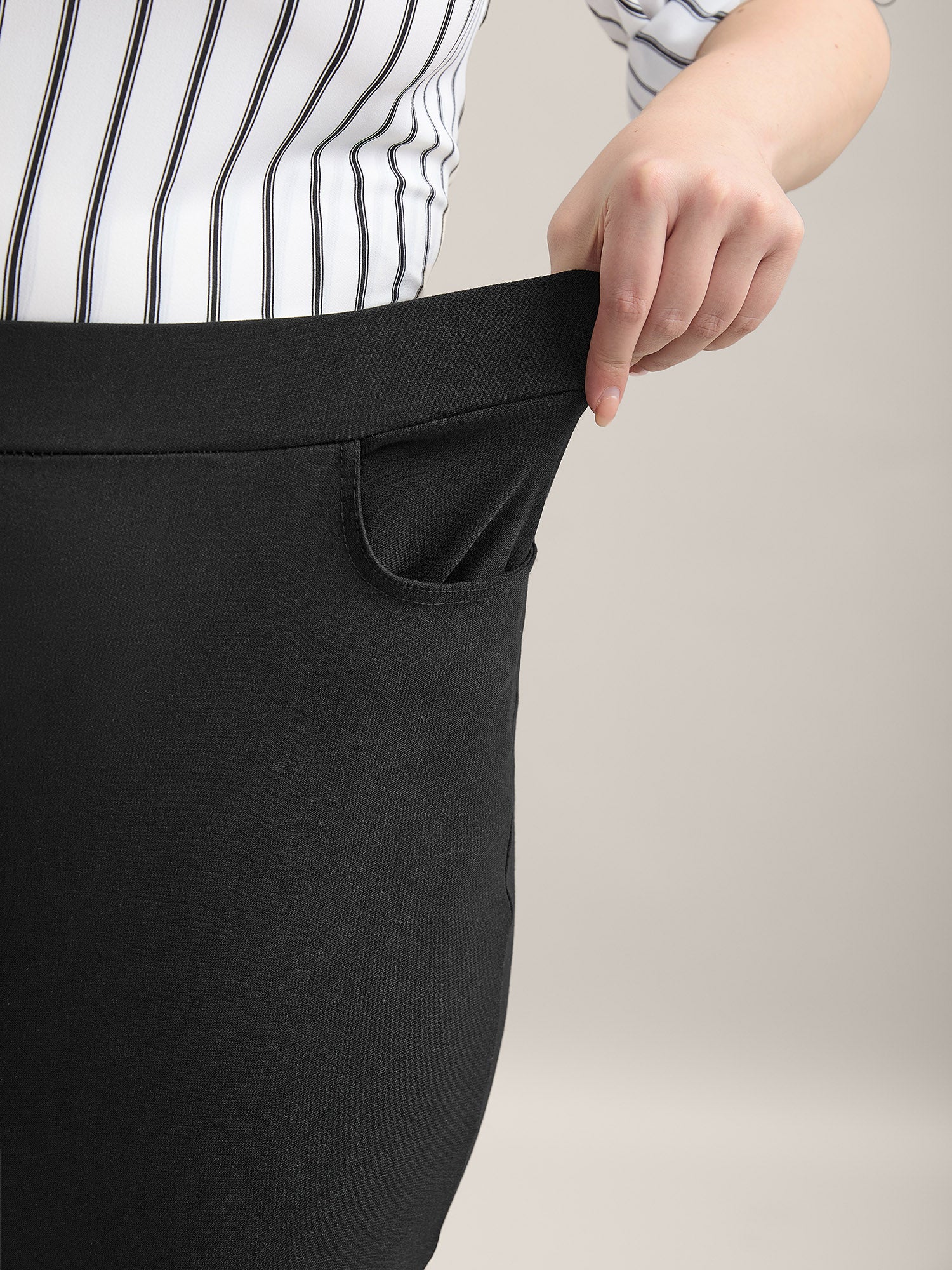 Stretchy Waist Asymmetrical Hem Straight-Leg Pants