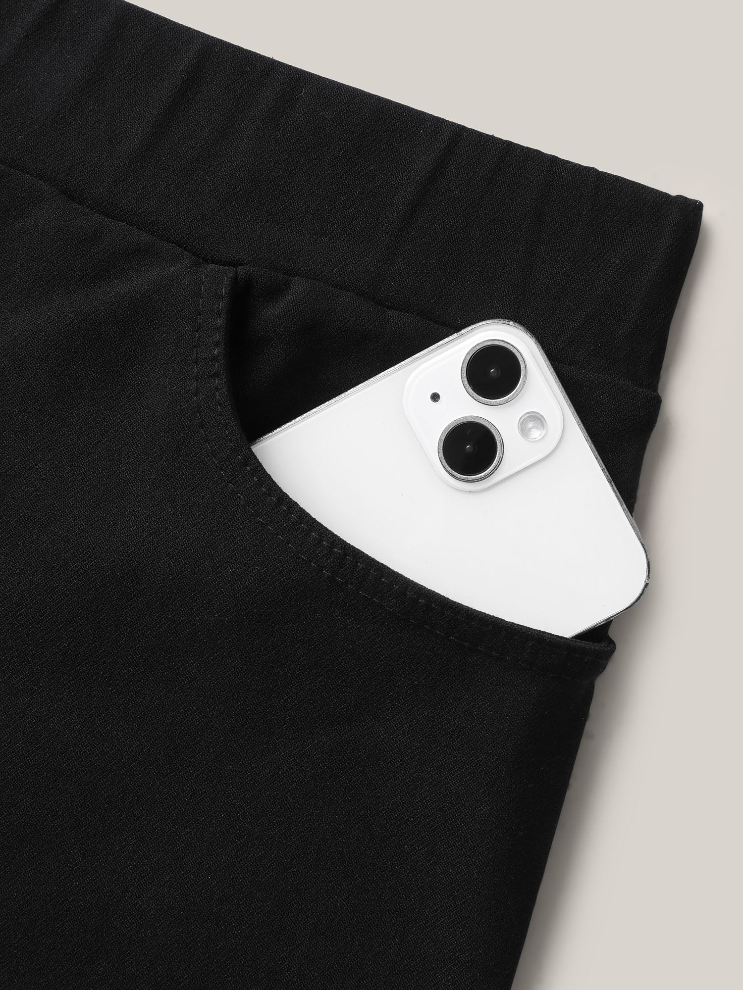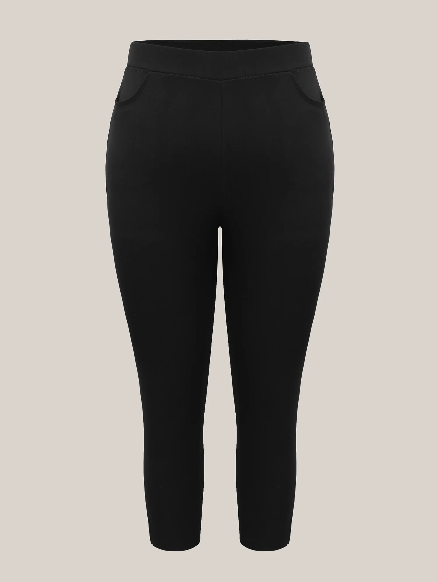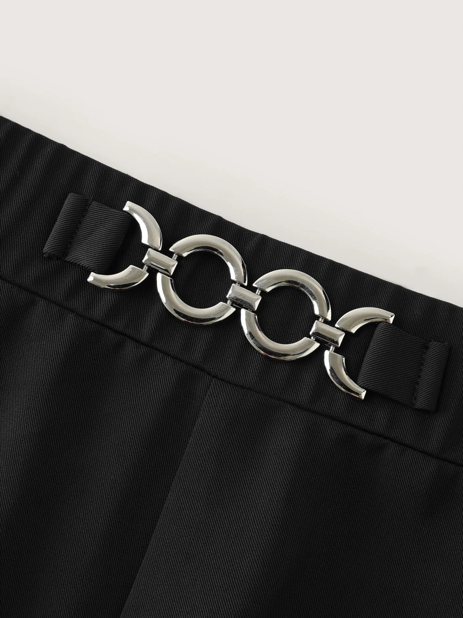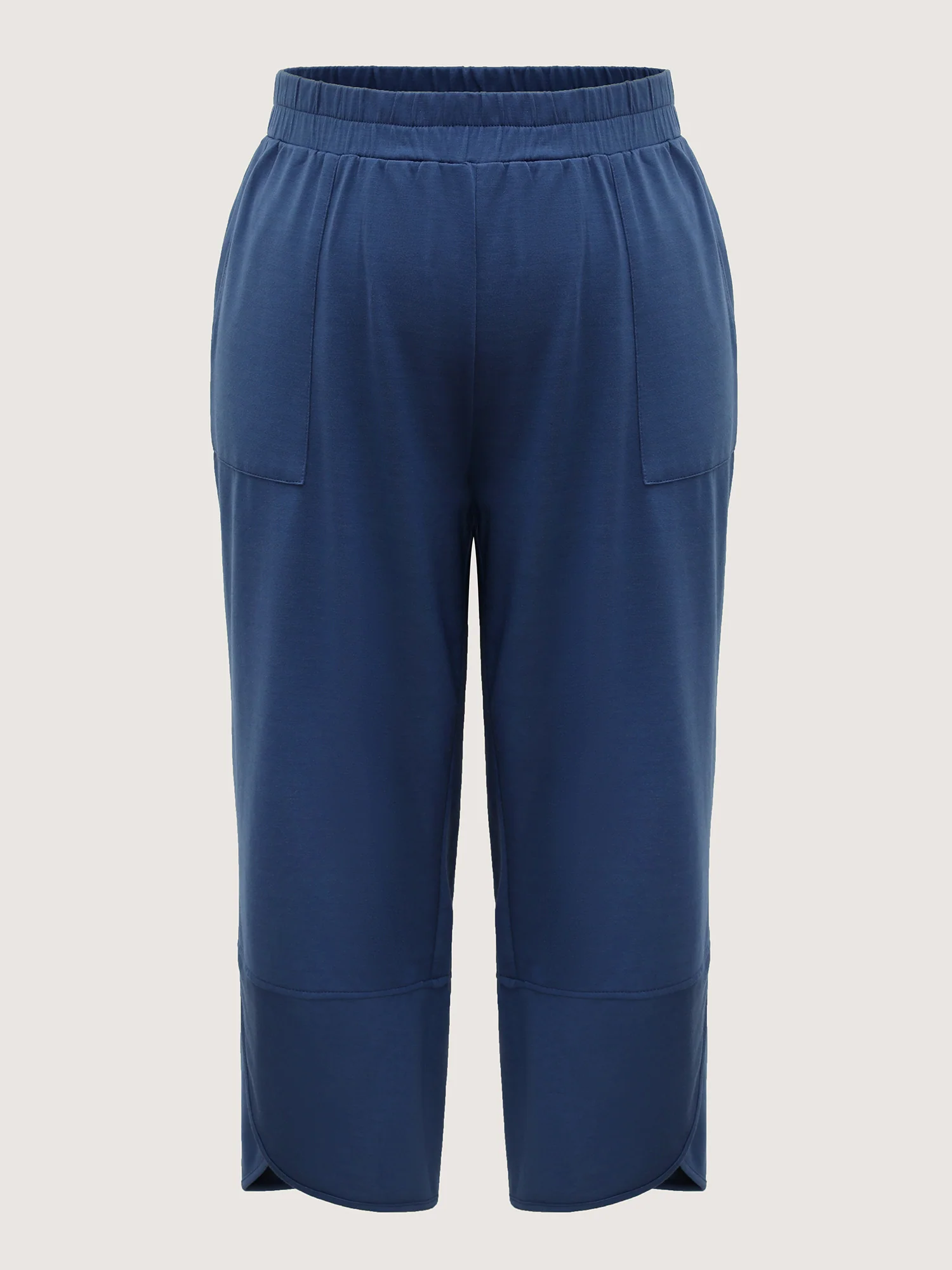 Stretchy Waist Asymmetrical Hem Straight-Leg Pants