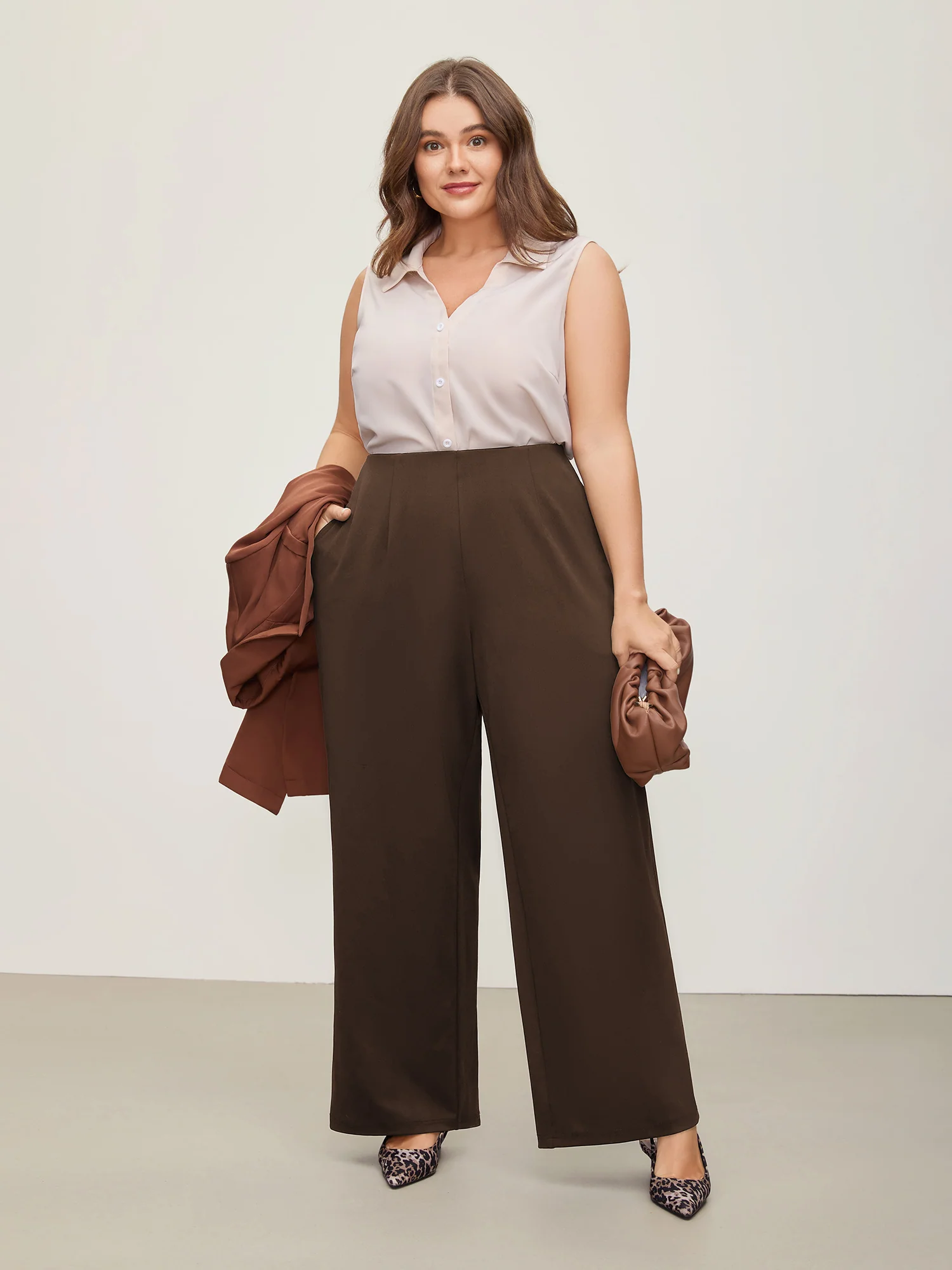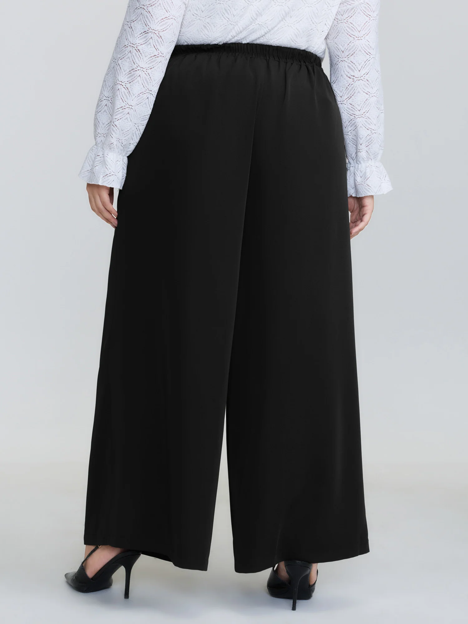 Crossover Waist Very Stretchy Wide-Leg Pants