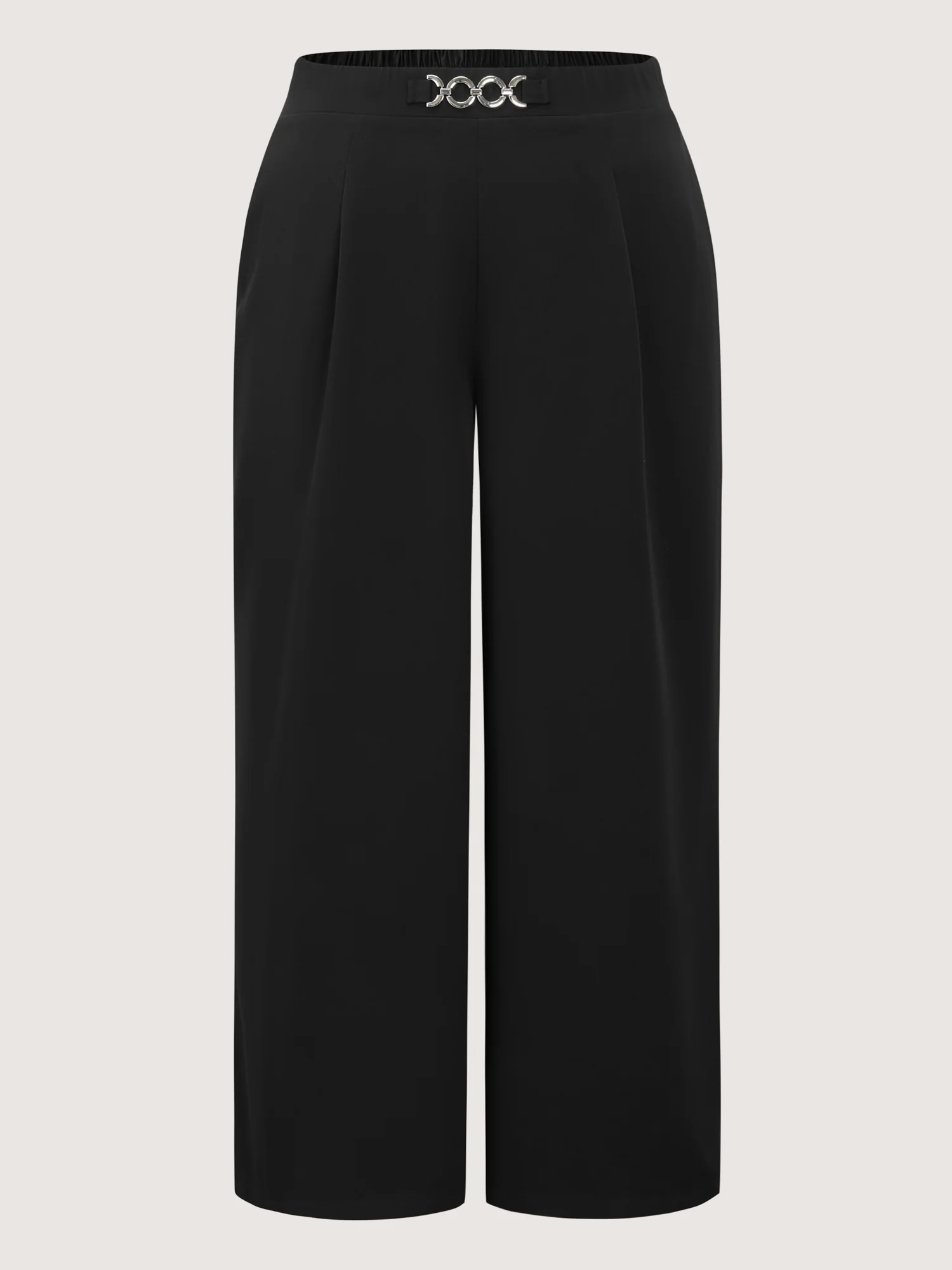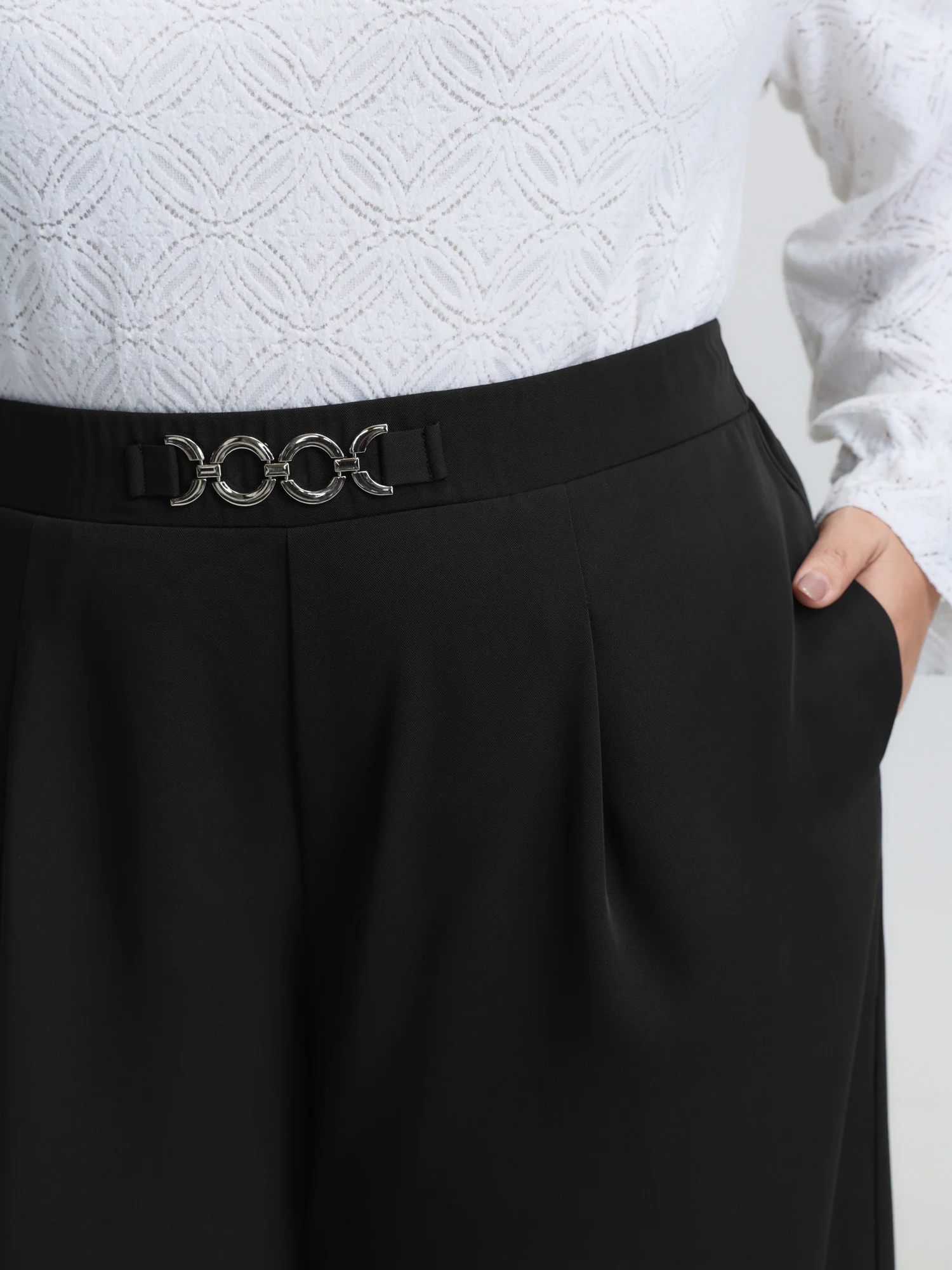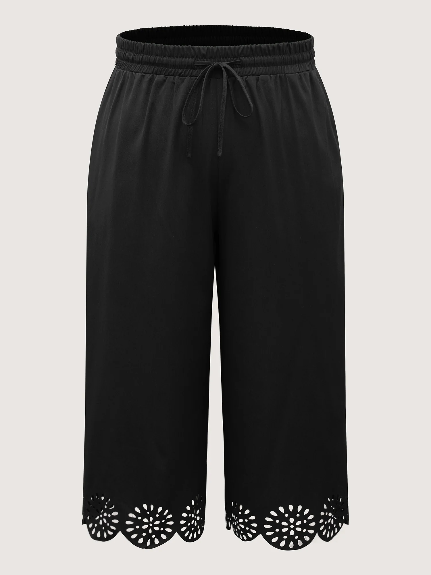 Scalloped Hem Laser Cut Wide-Leg Pants