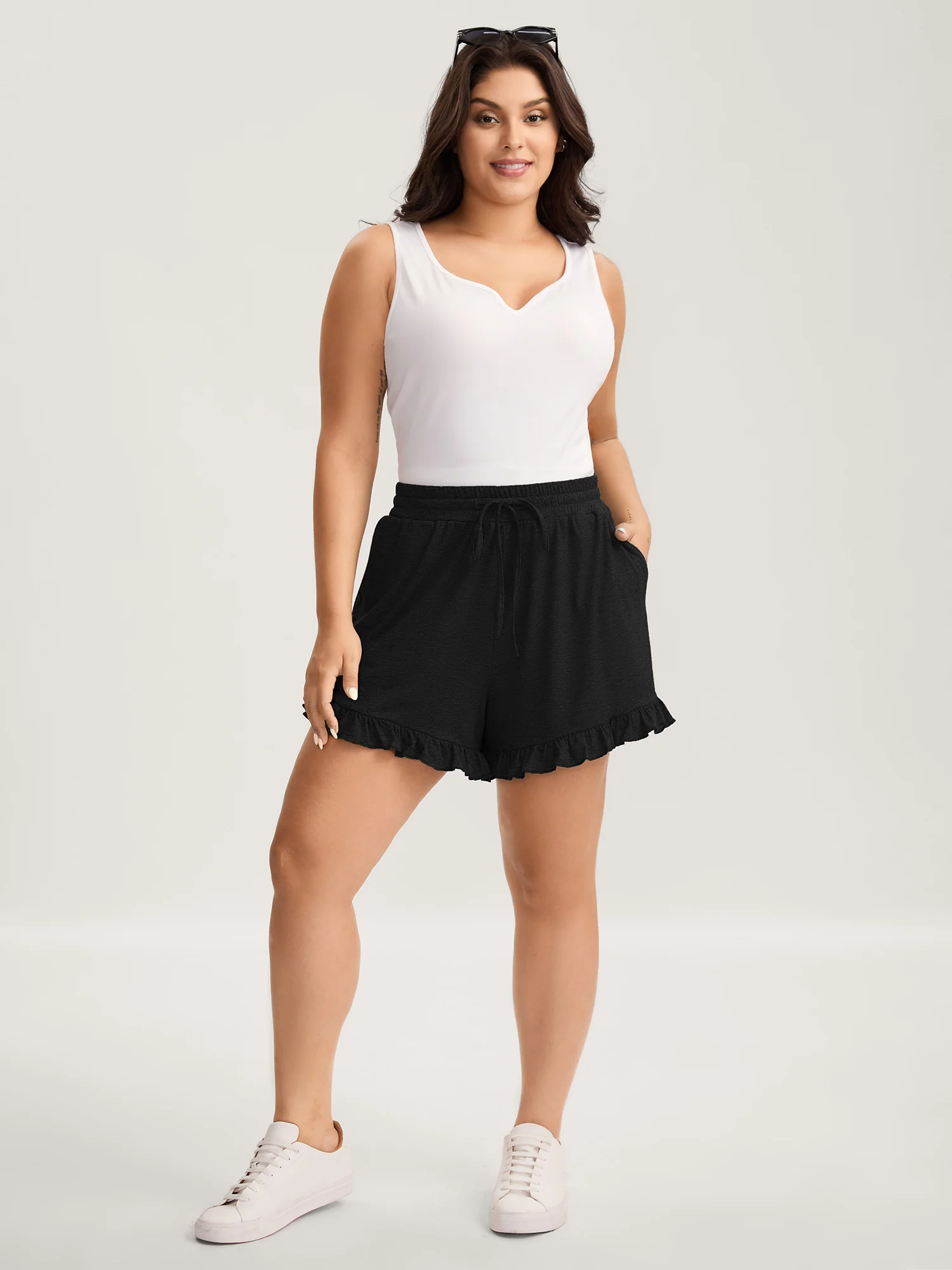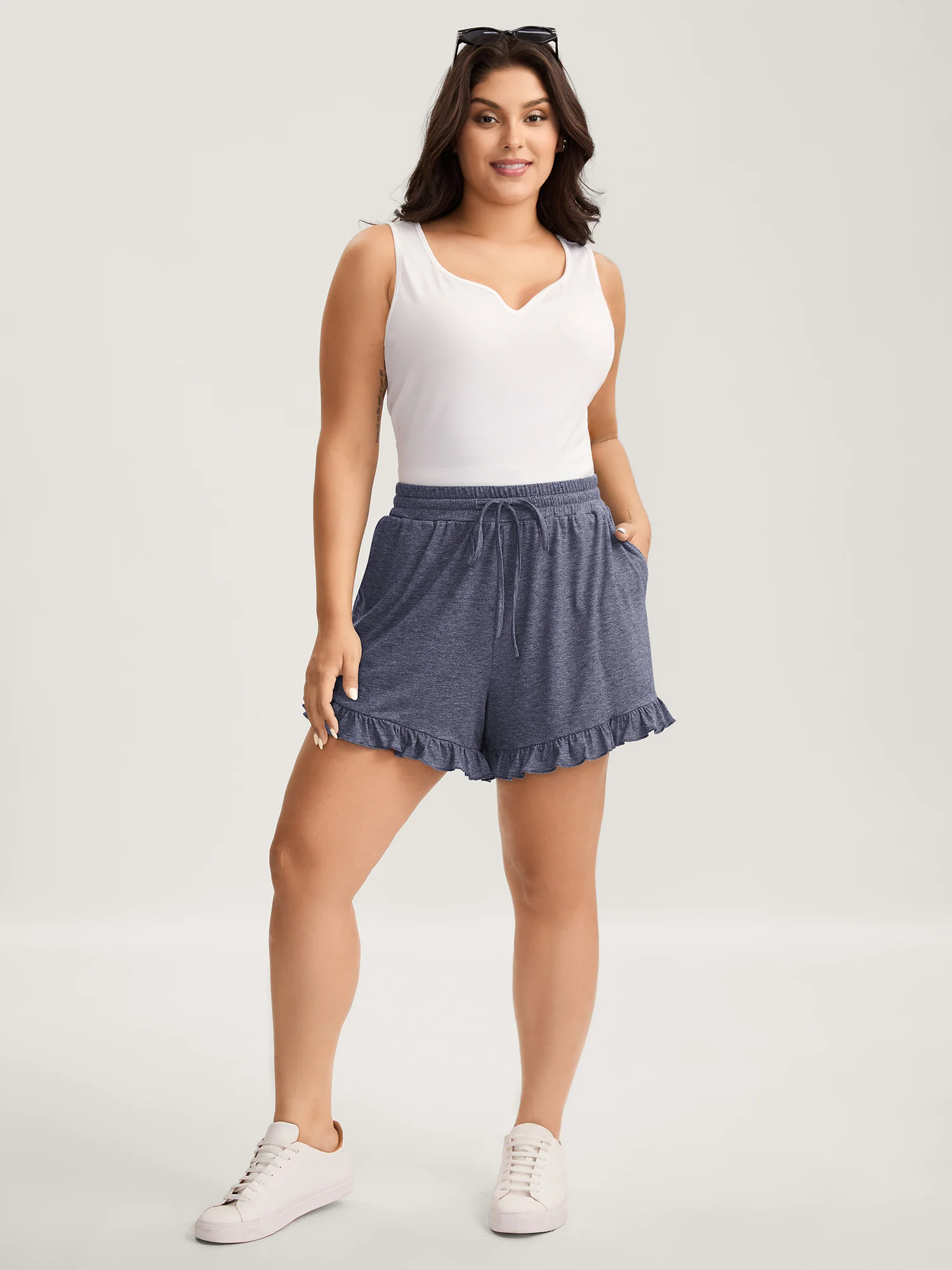 Supersoft Mixed Color Knit Drawstring Ruffled Shorts