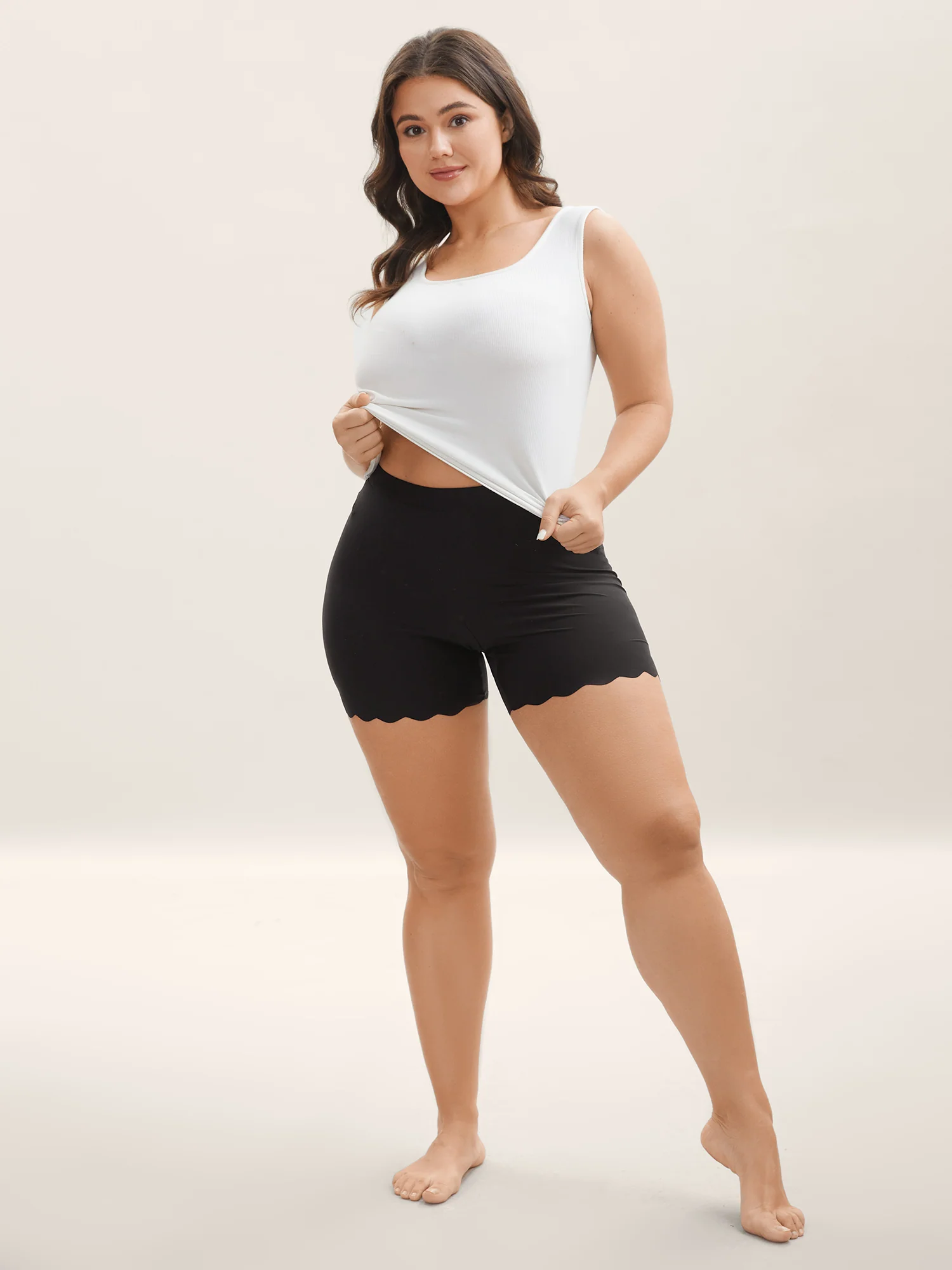Scalloped Trim Stretchy Skinny-Fit Leggings