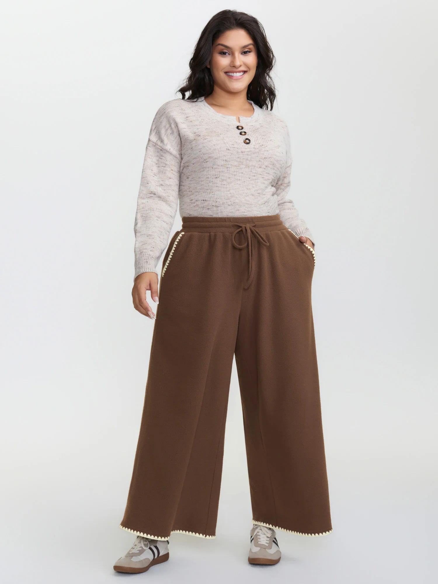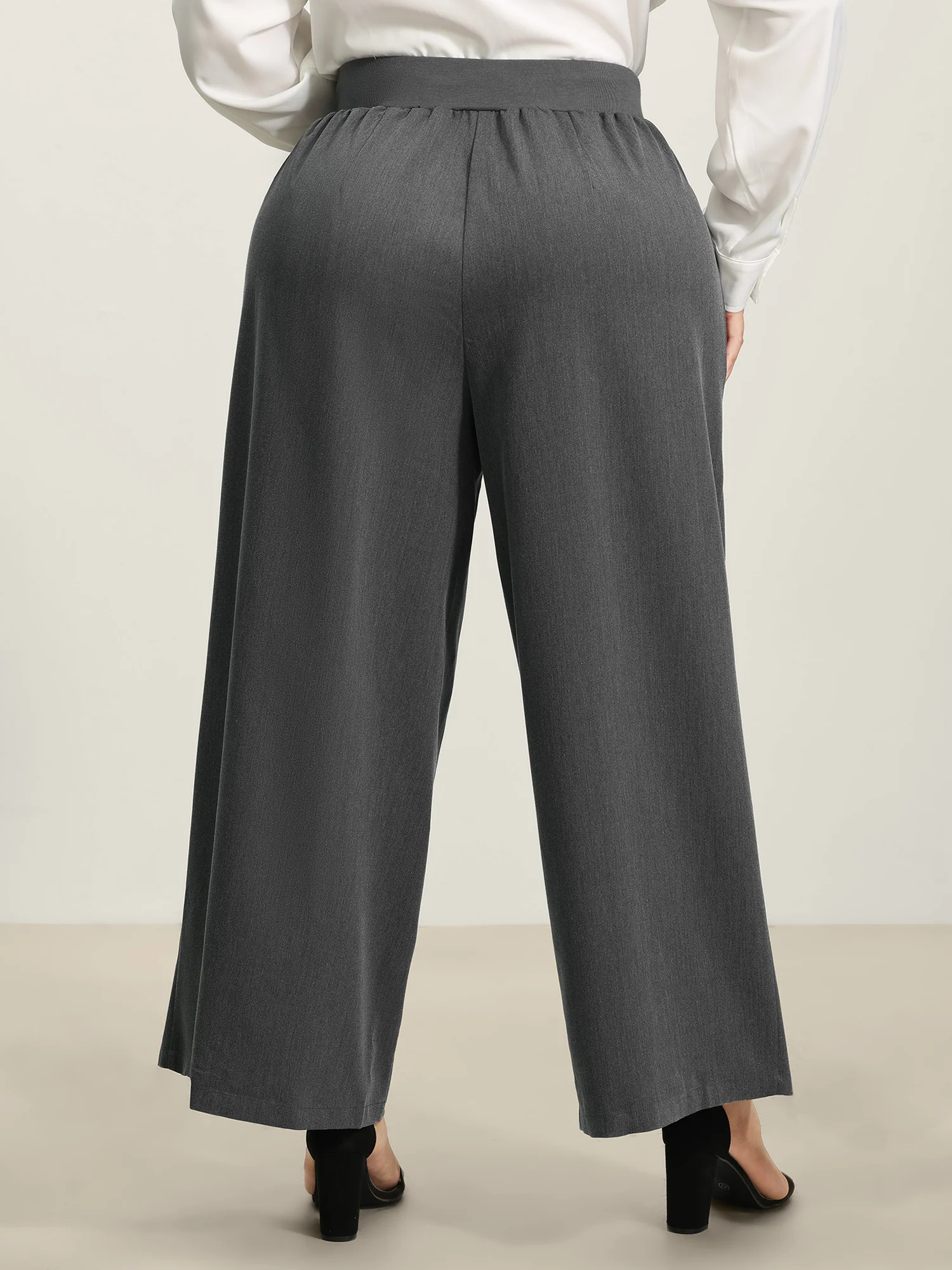 Heather Drawstring Waist Wide-Leg Pants