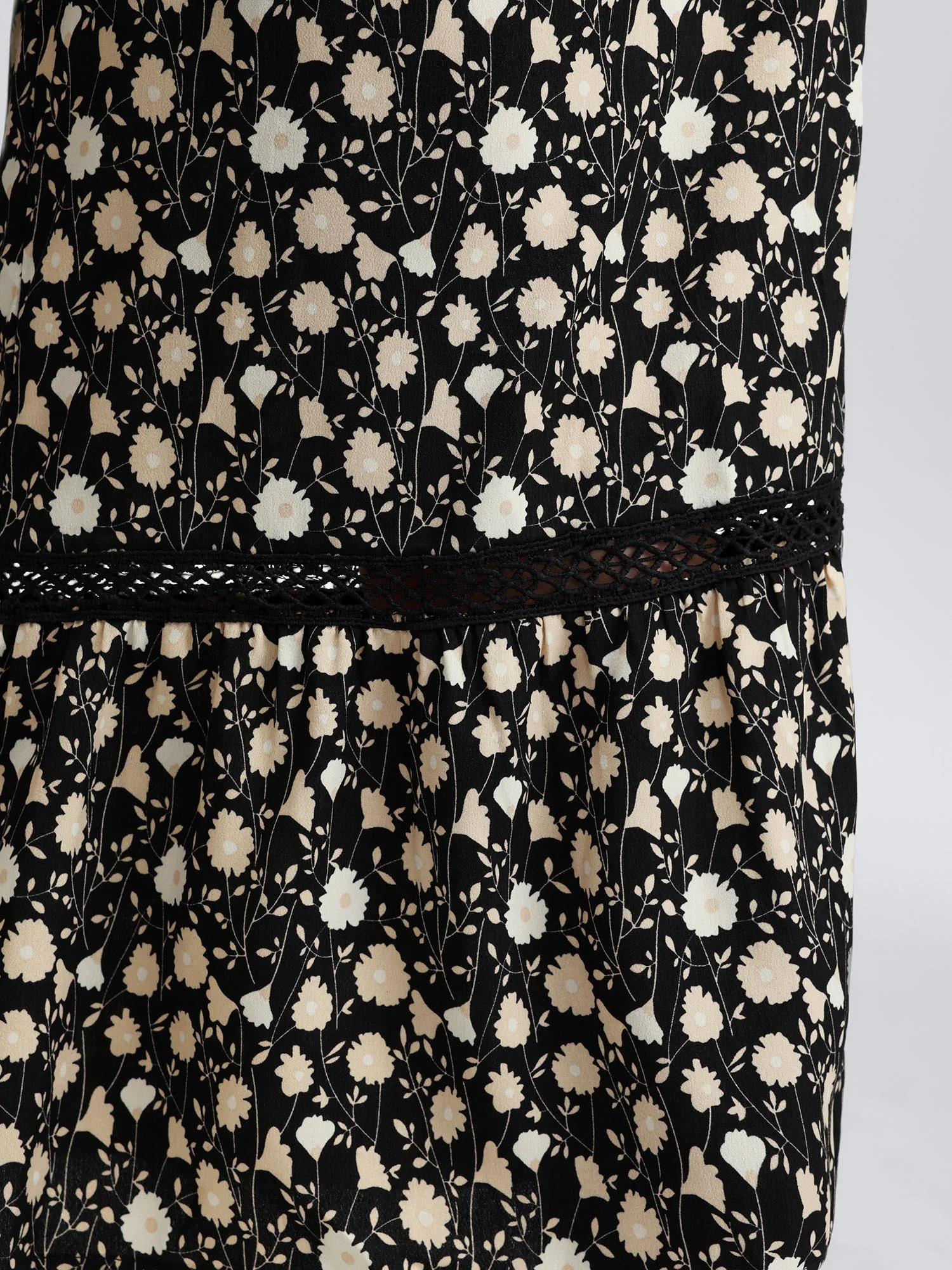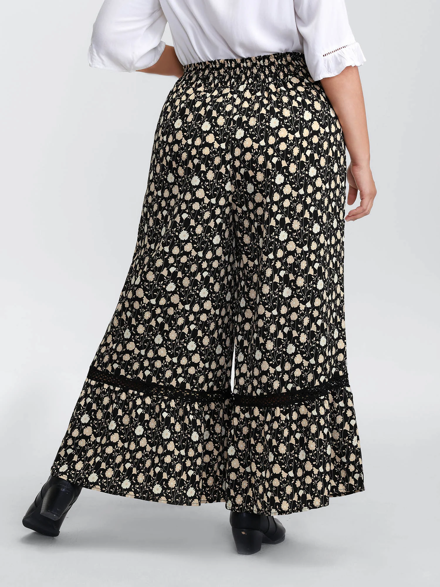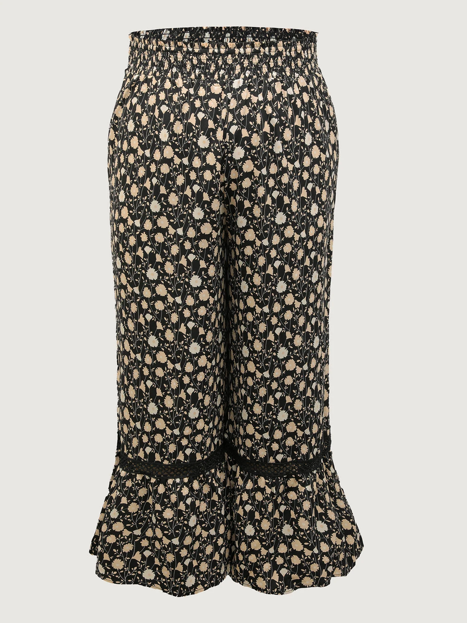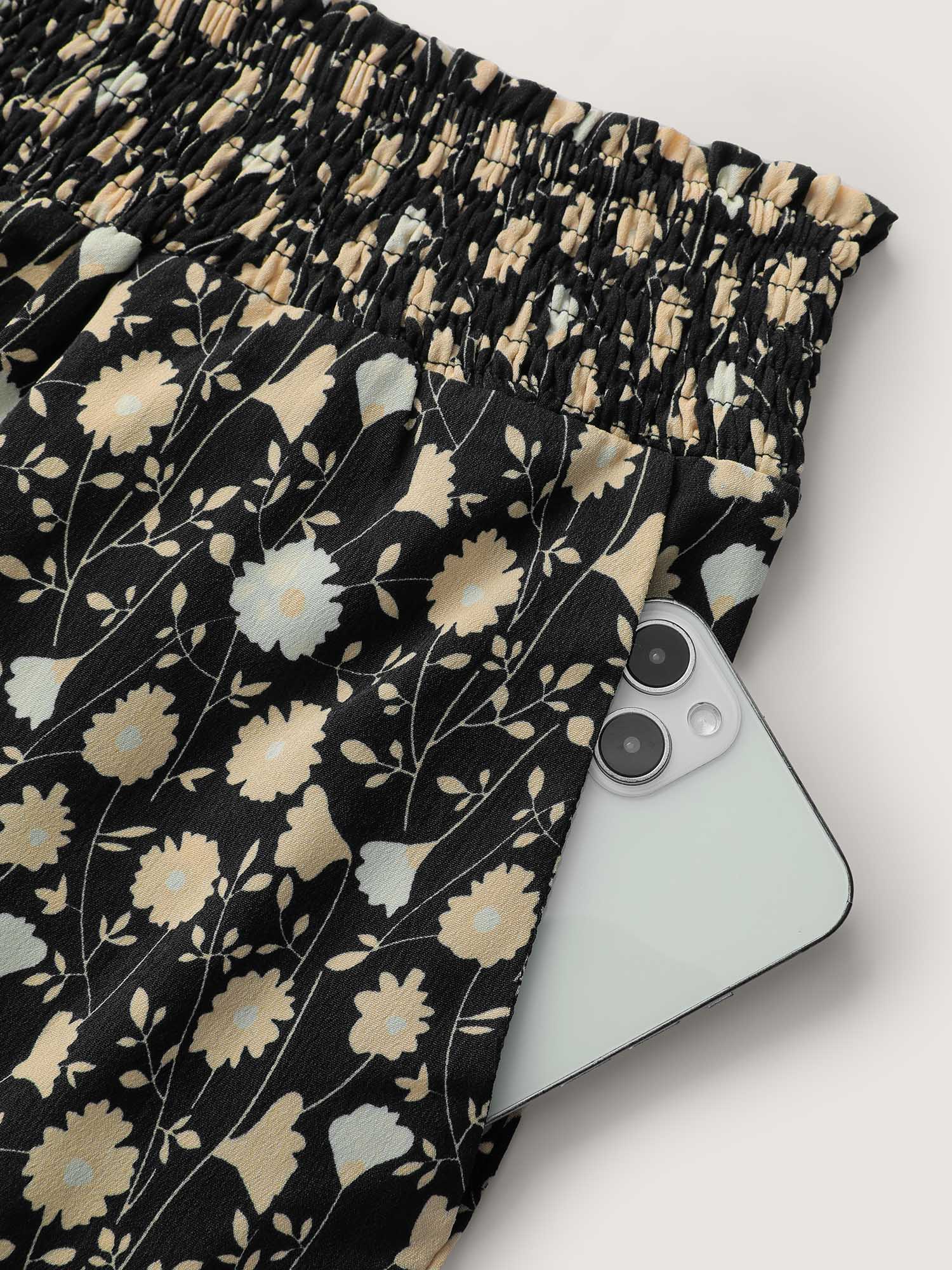 Floral Print Shirred Wide Waistband Tiered Pants