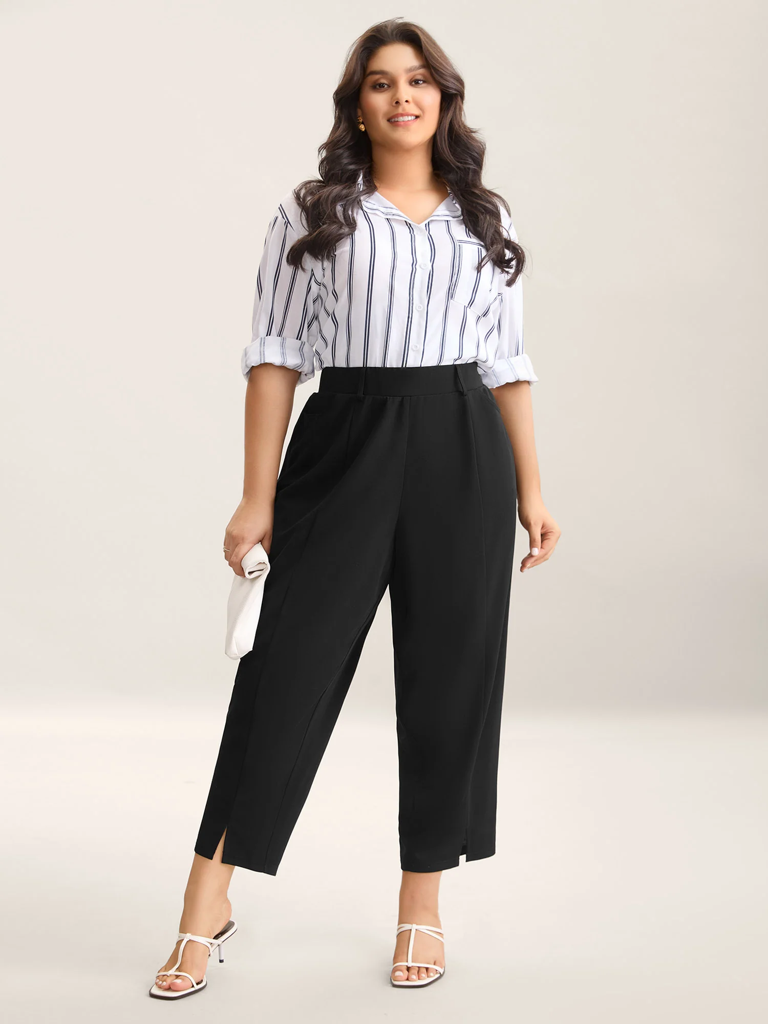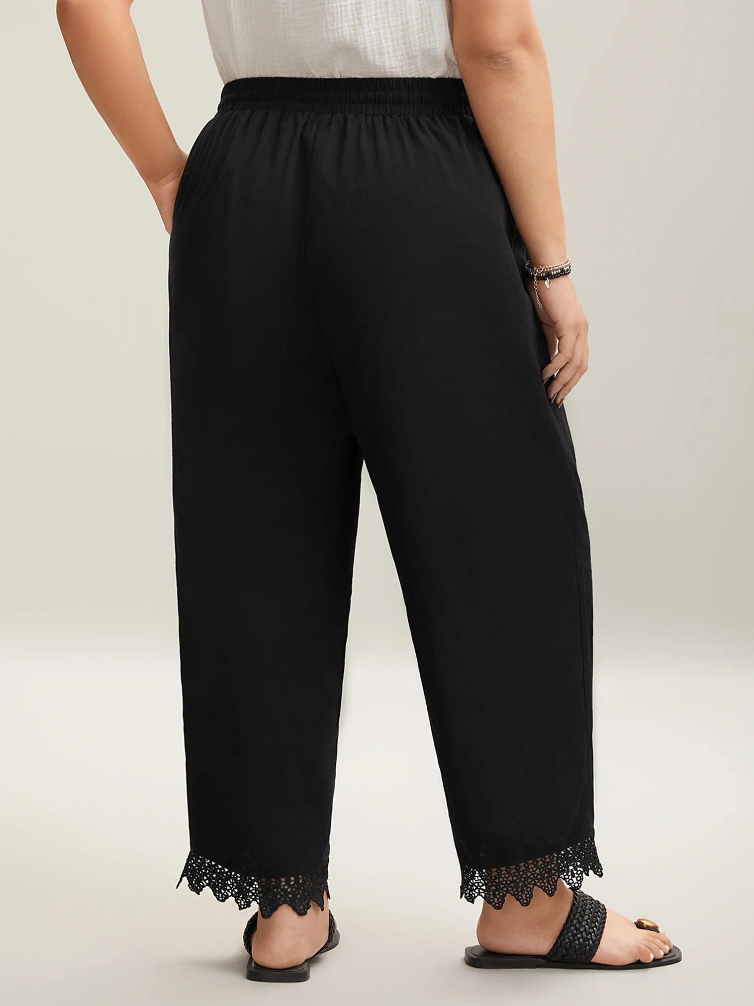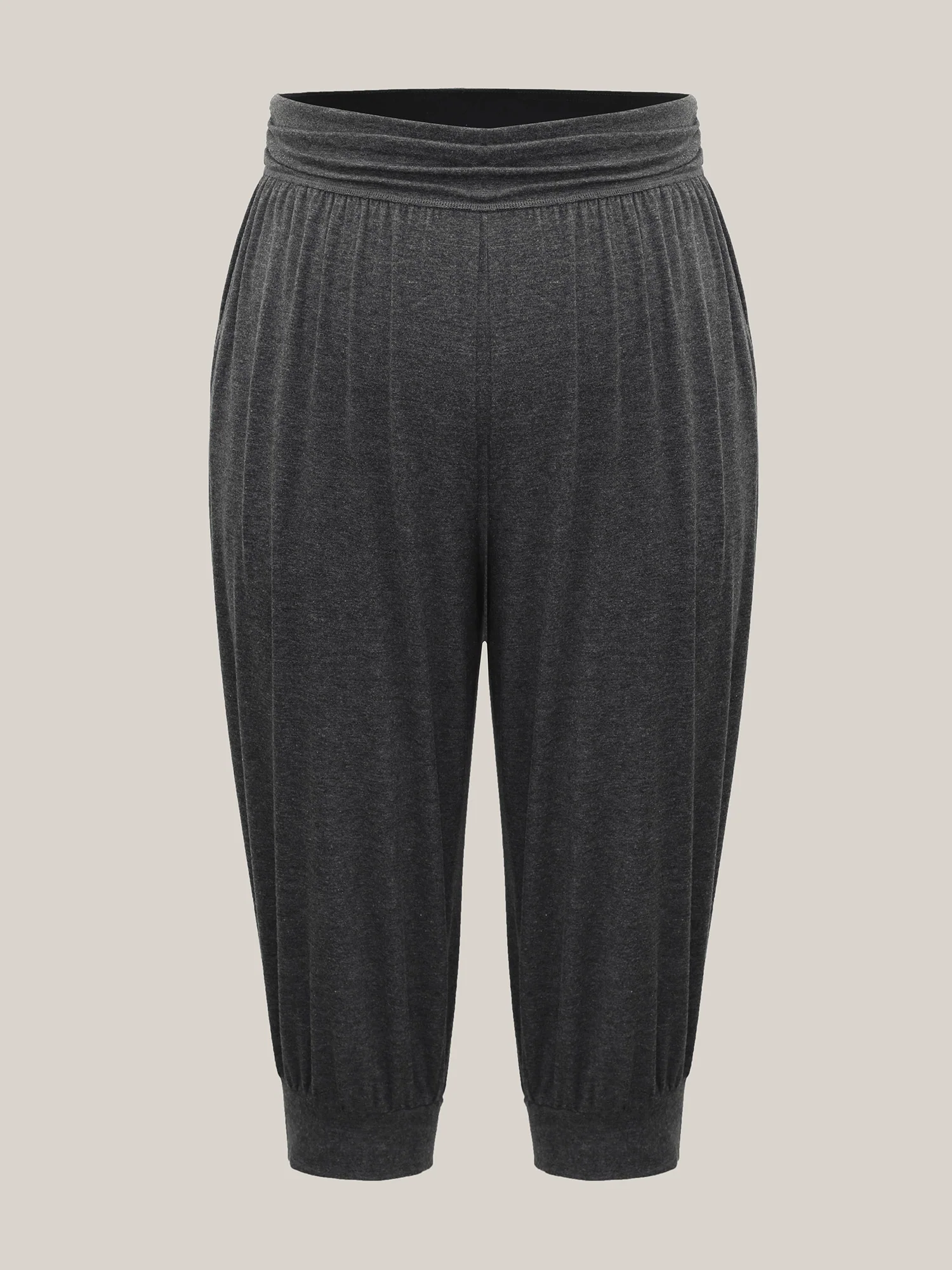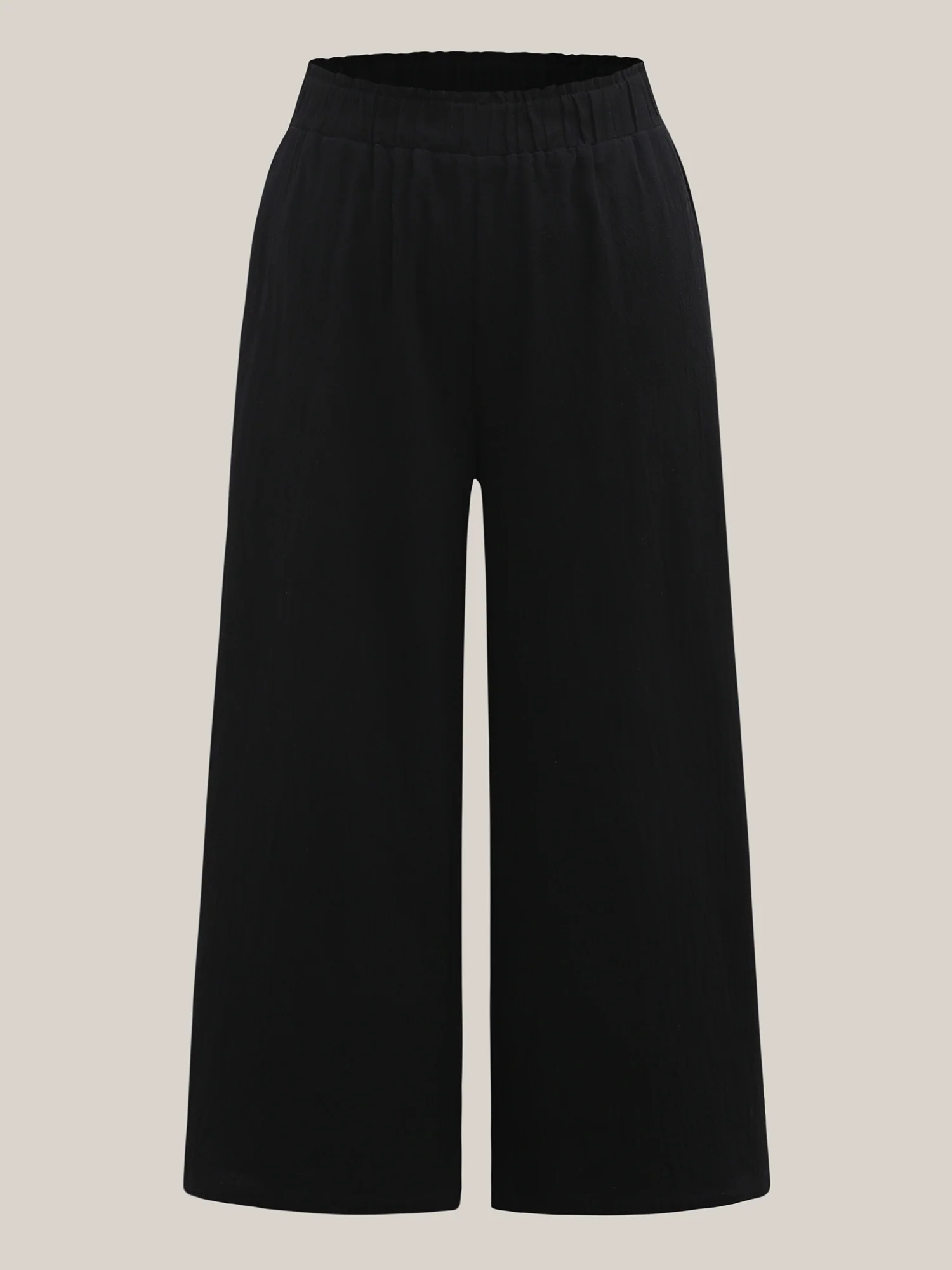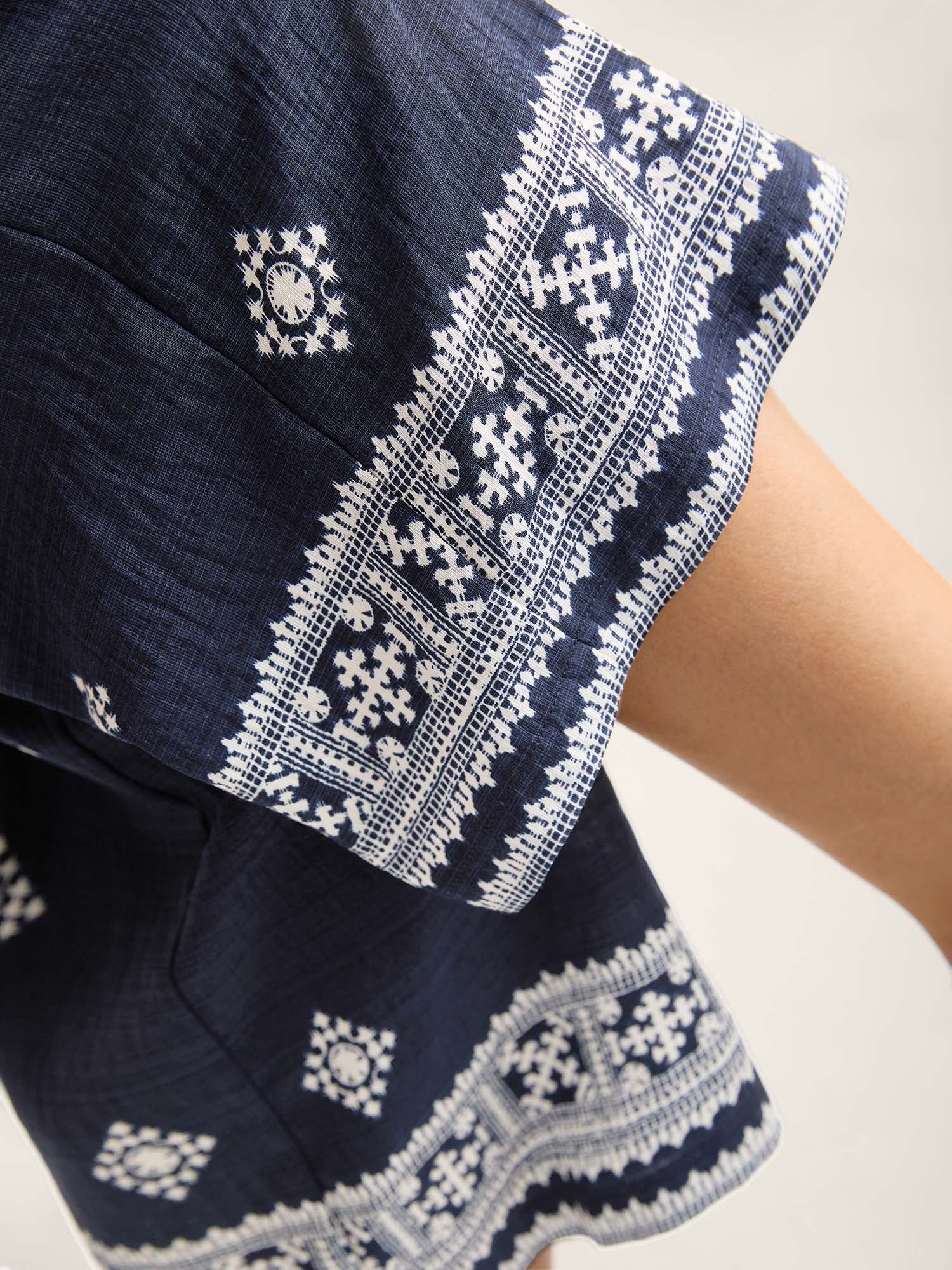 Tropical Leaf Pattern Shirred Wide-Leg Pants