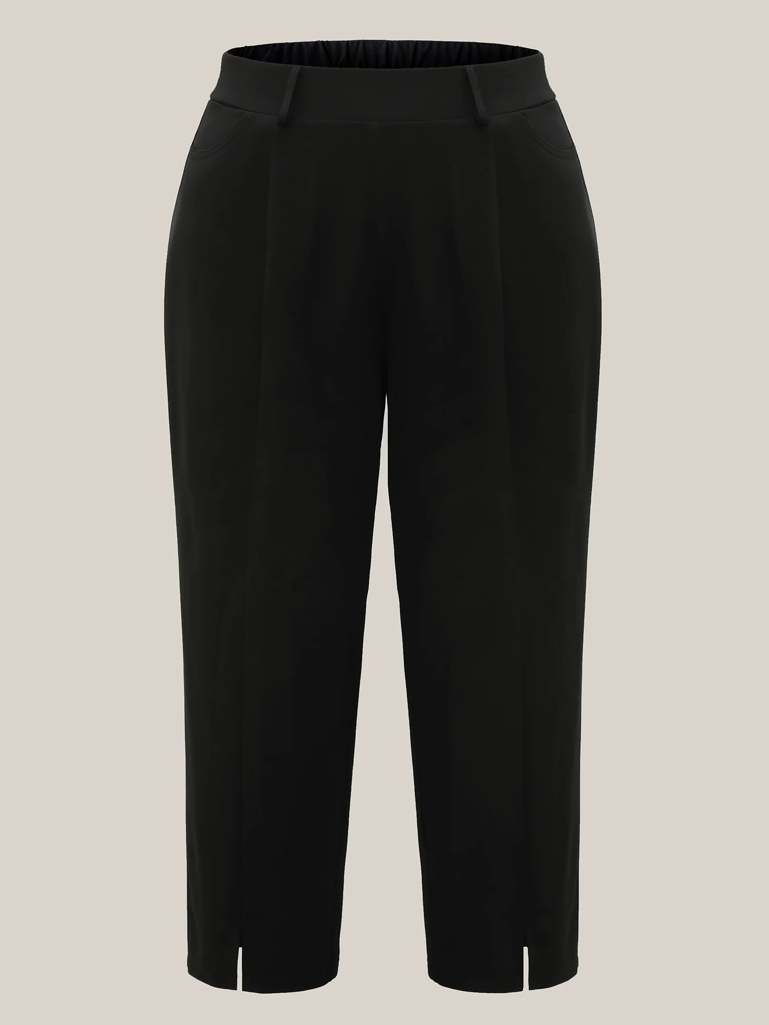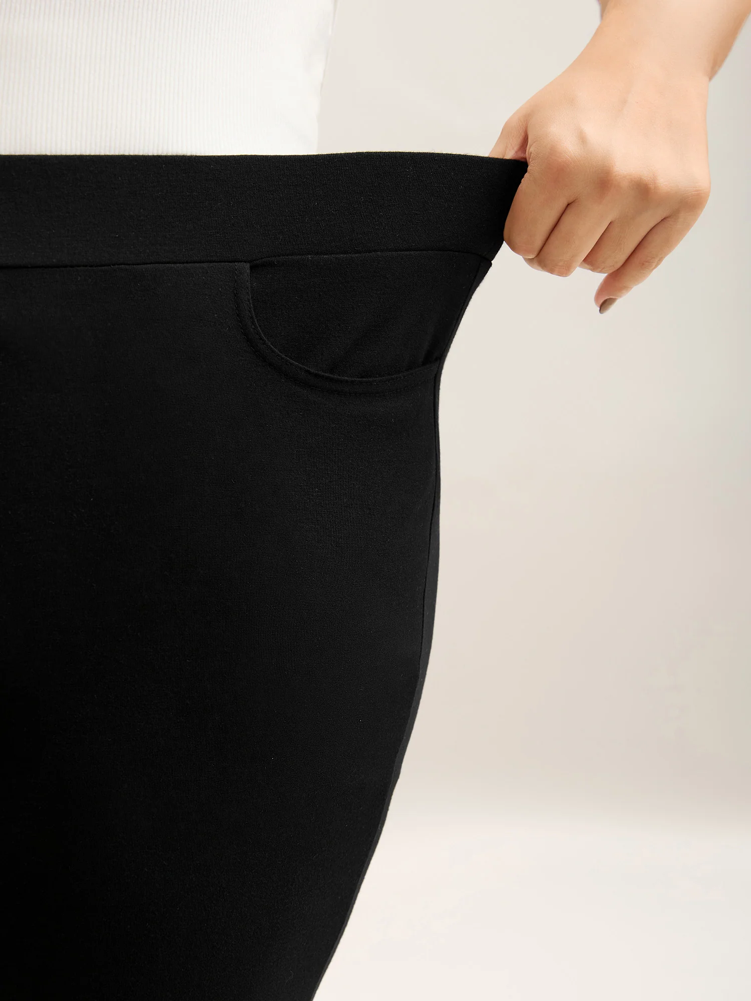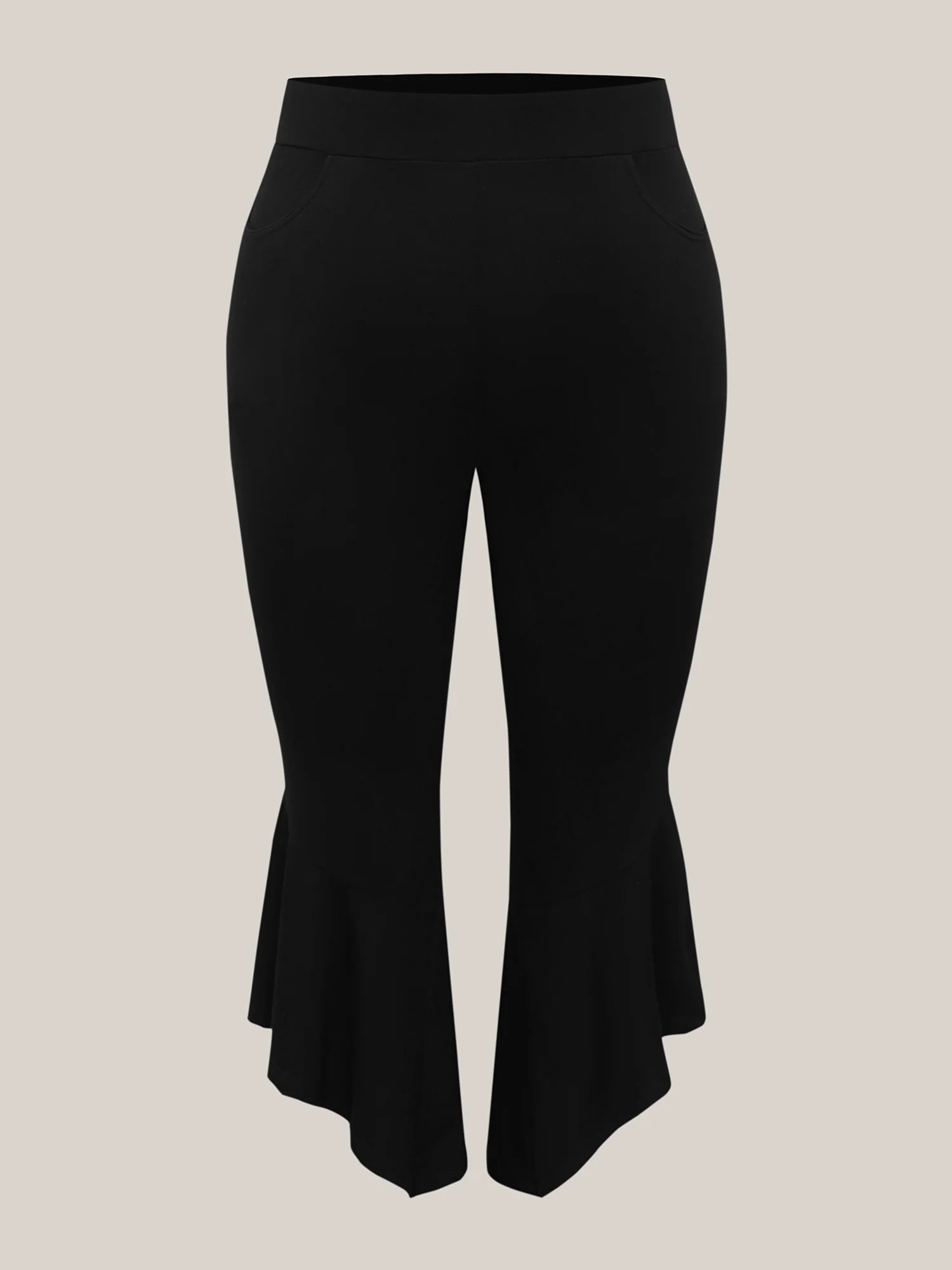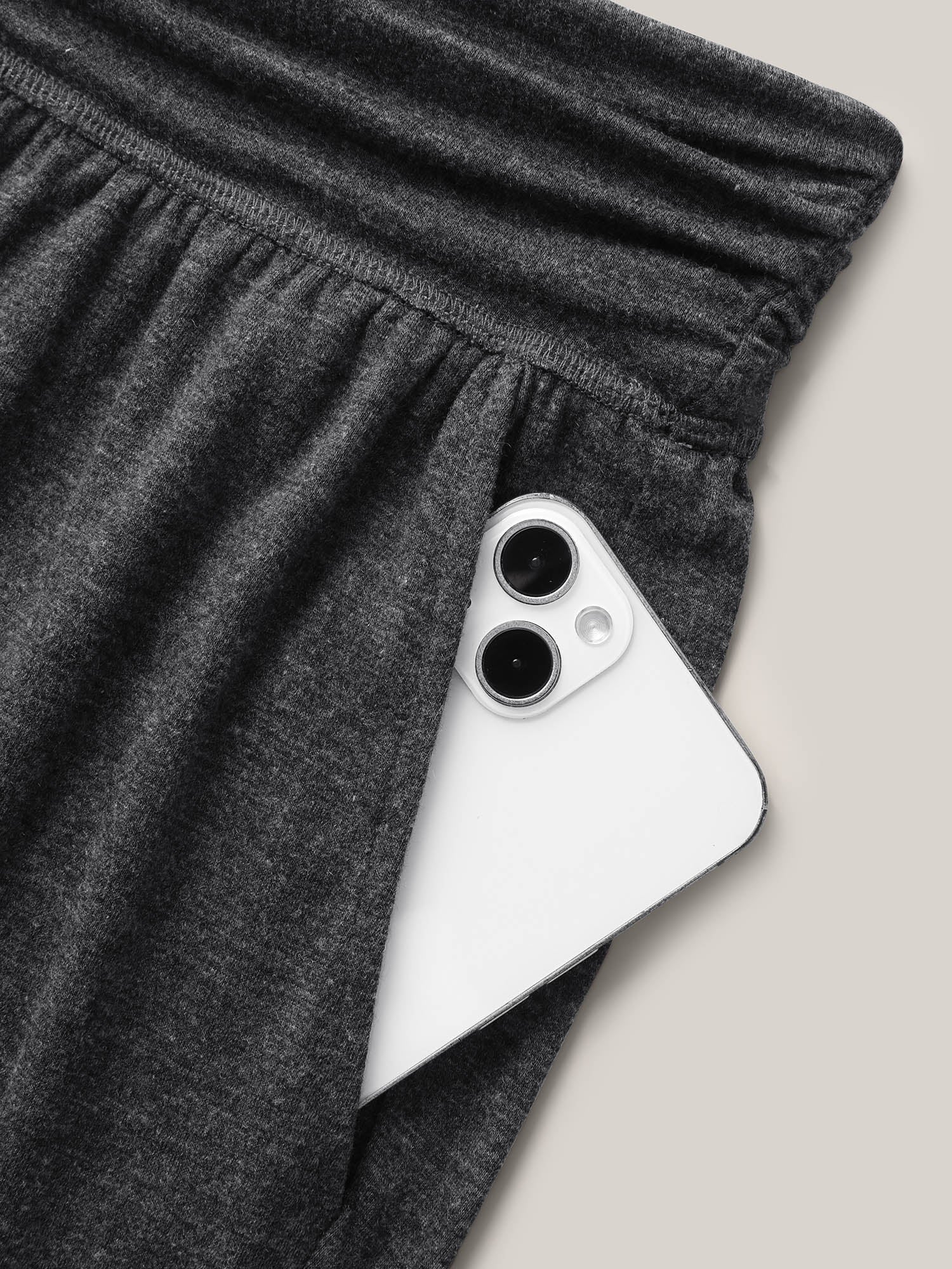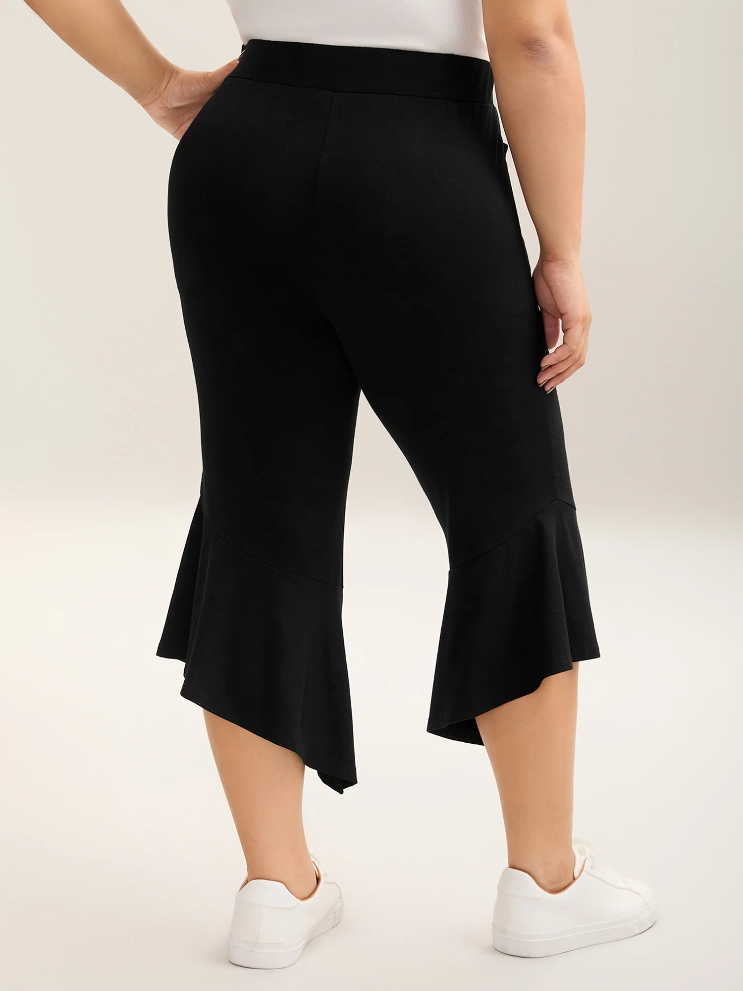 Tropical Leaf Pattern Shirred Wide-Leg Pants