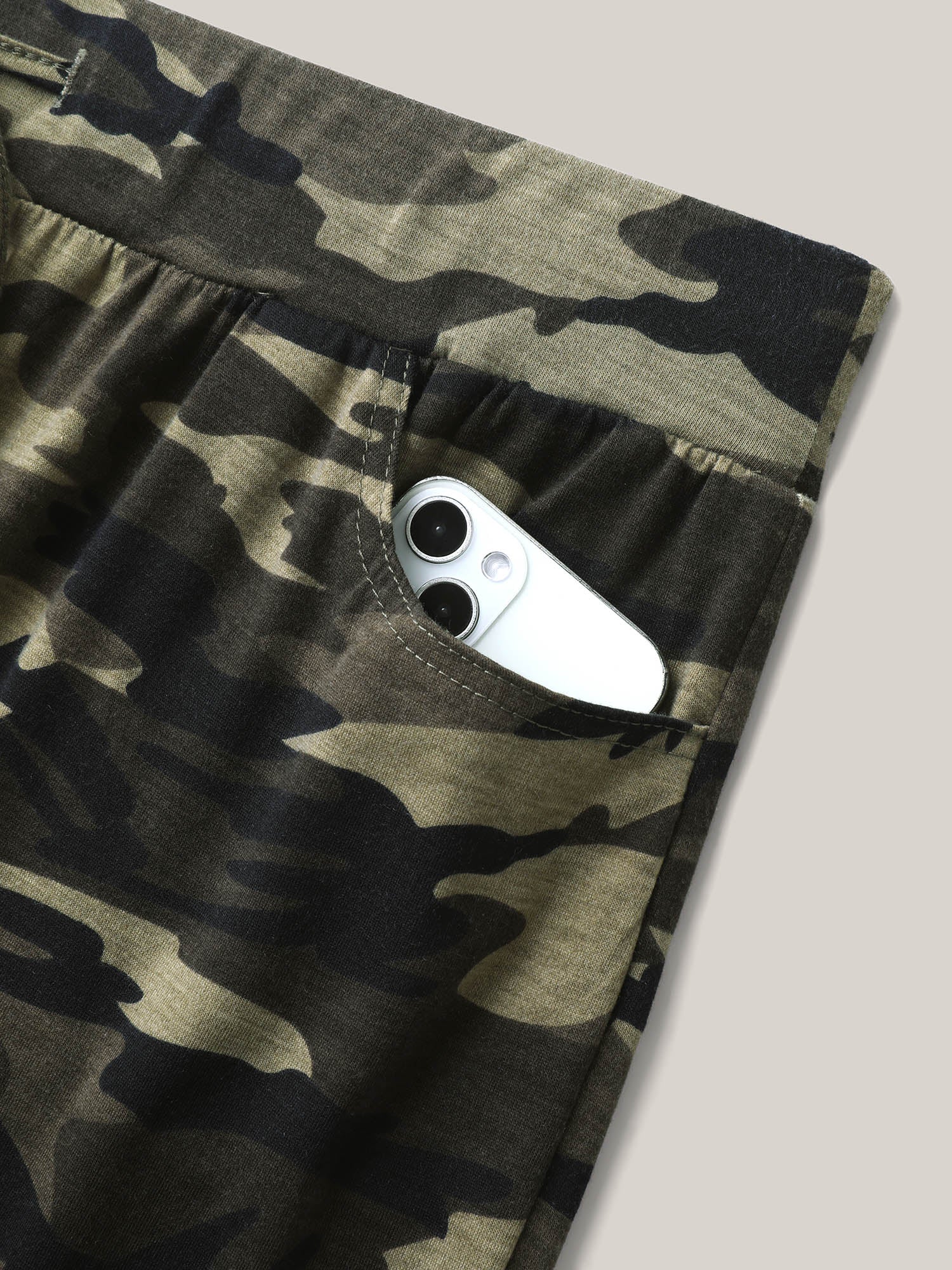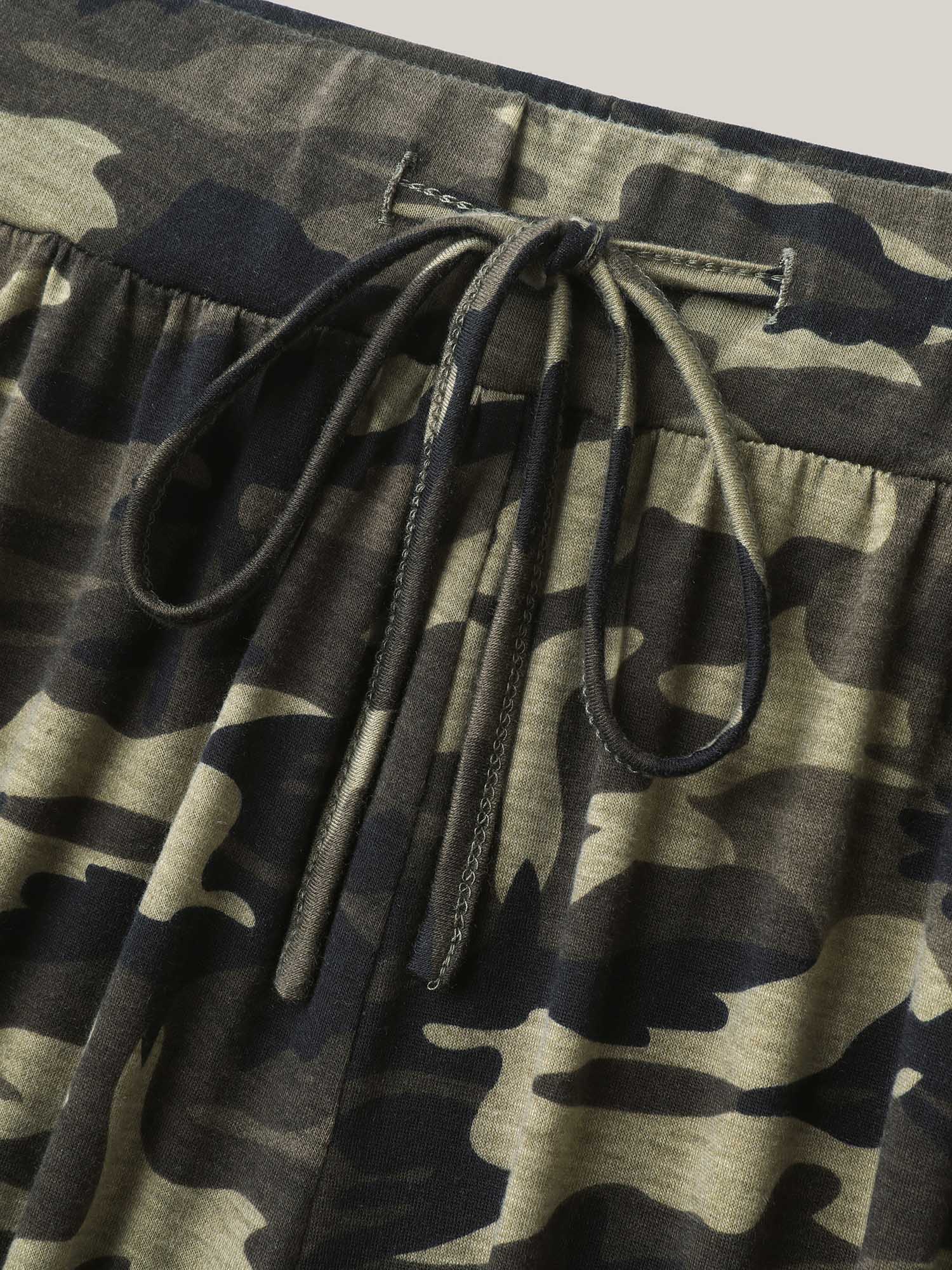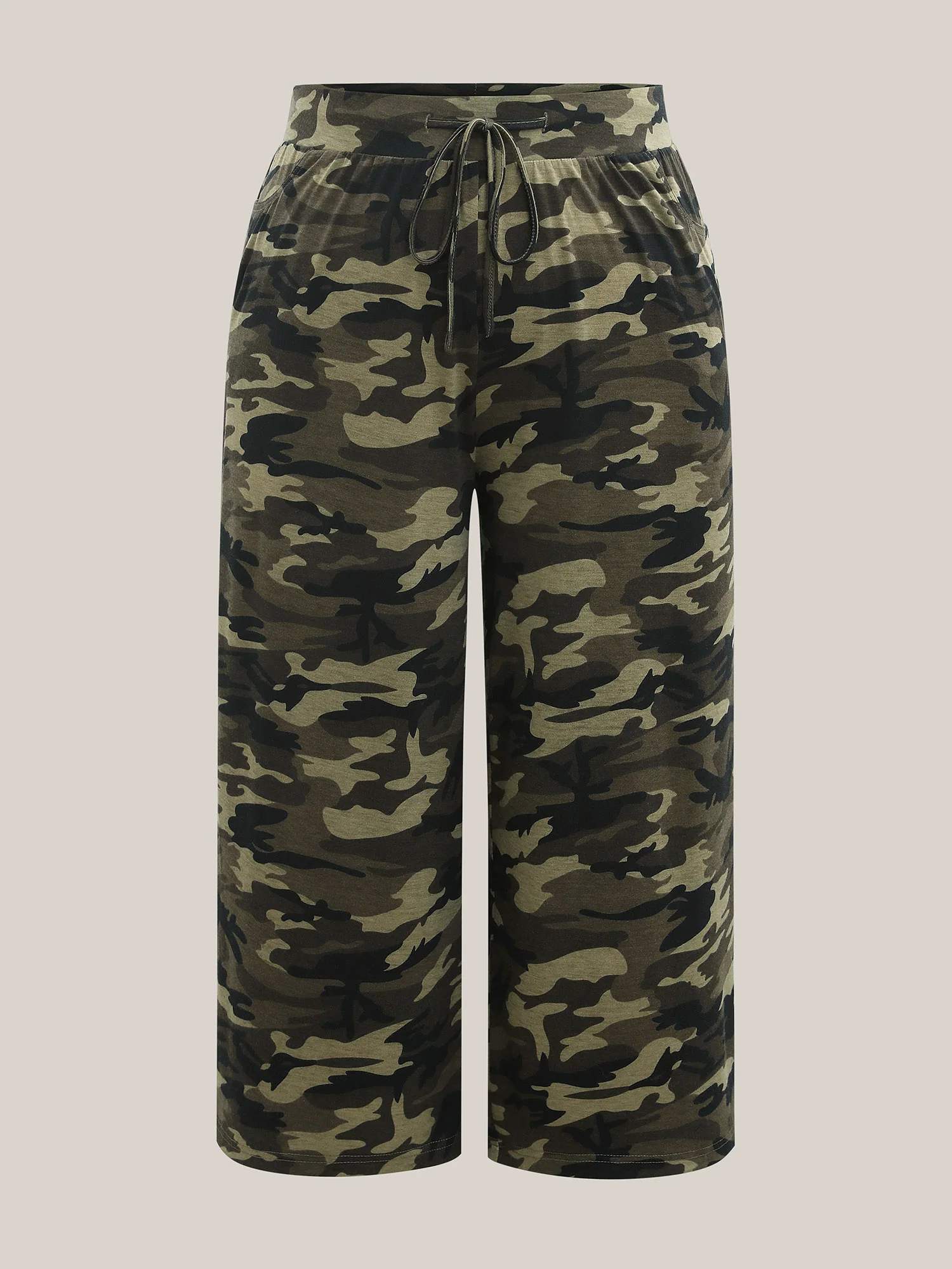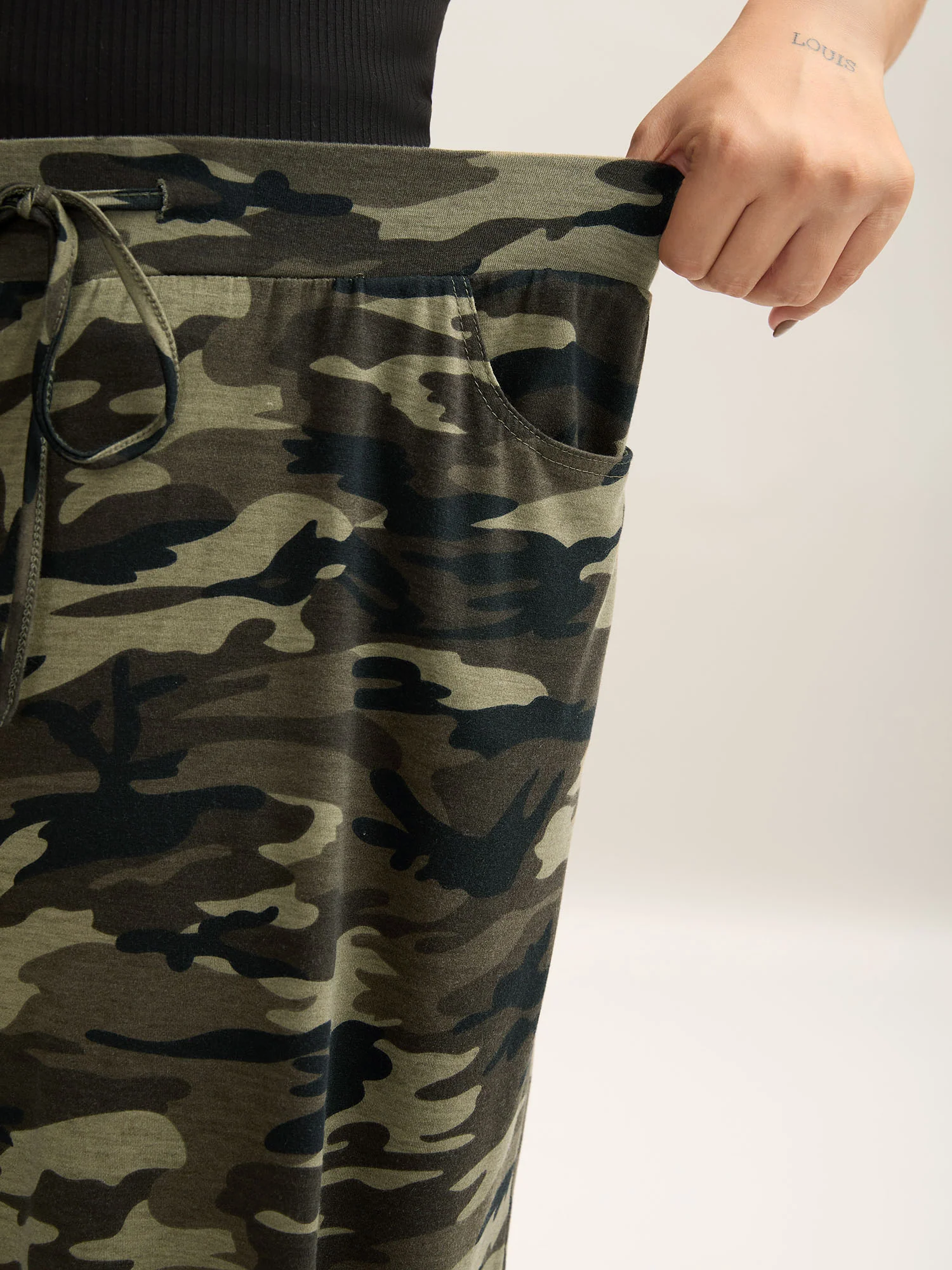 Camouflage Print Tie-Waist Wide-Leg Pants