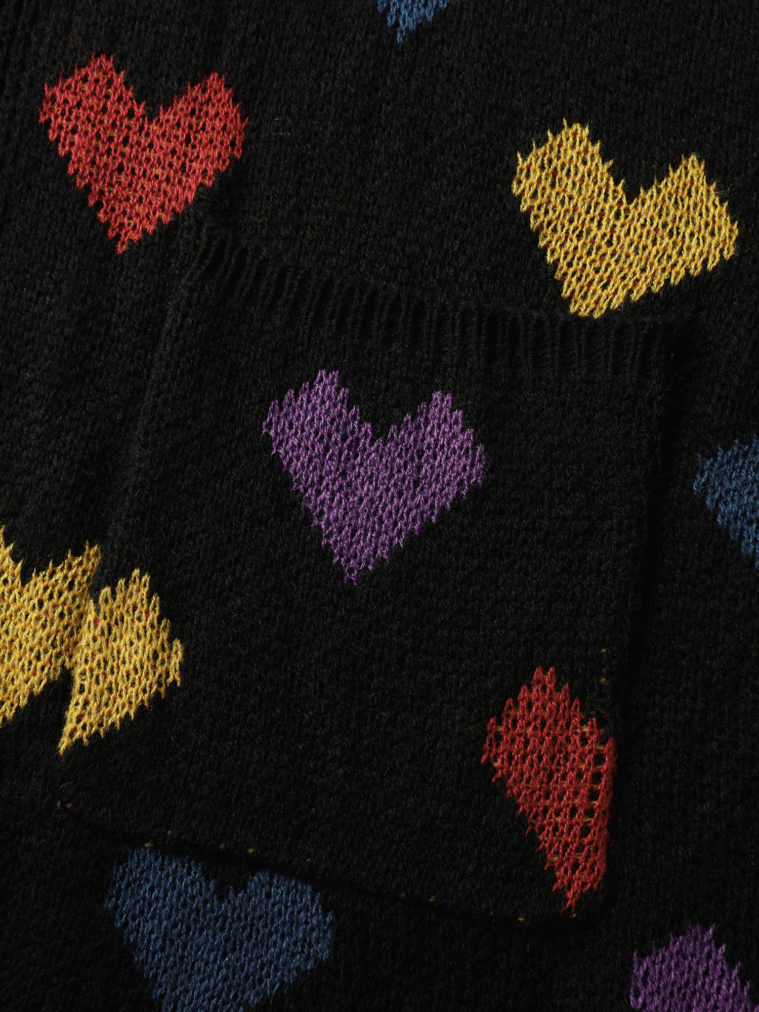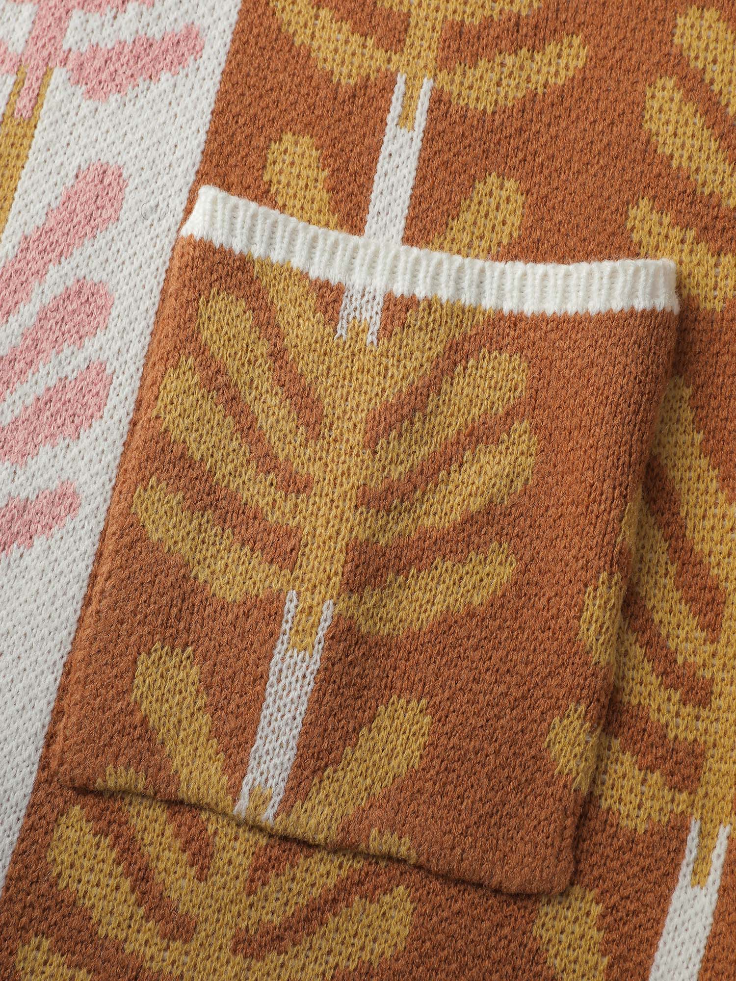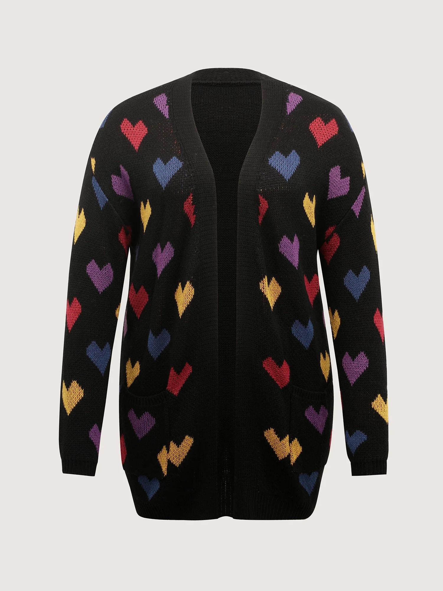 Colorful Hearts Jacquard Pockets Knit Cardigan