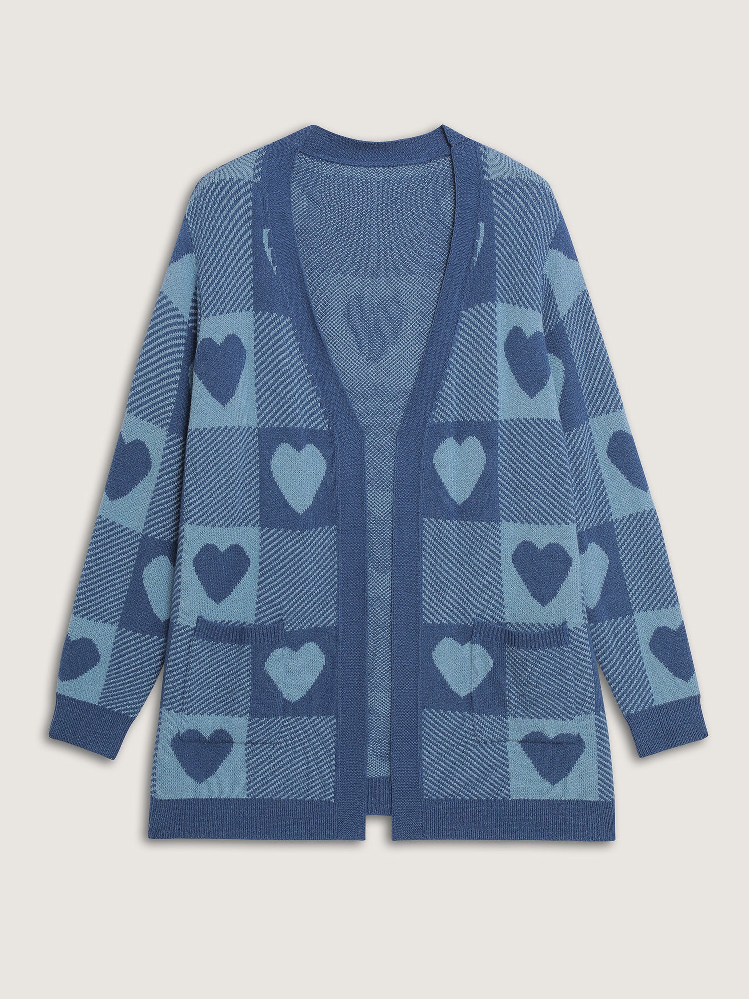 Supersoft Checkered Hearts Jacquard Pockets Knit Cardigan
