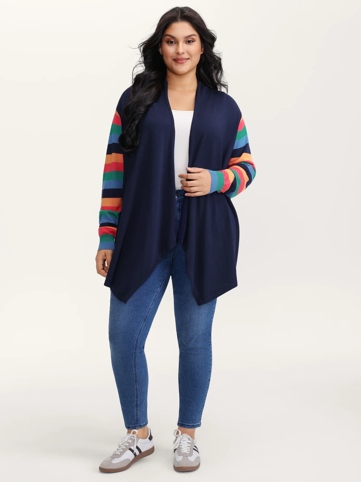 Colorful Stripes Irregular Hem Knit Cardigan