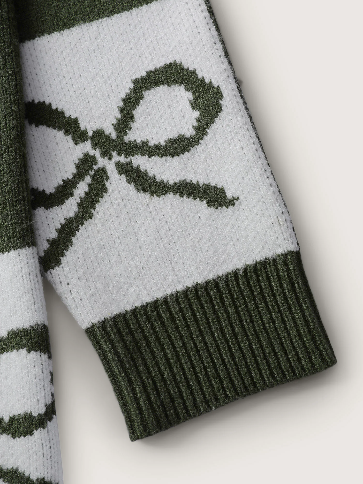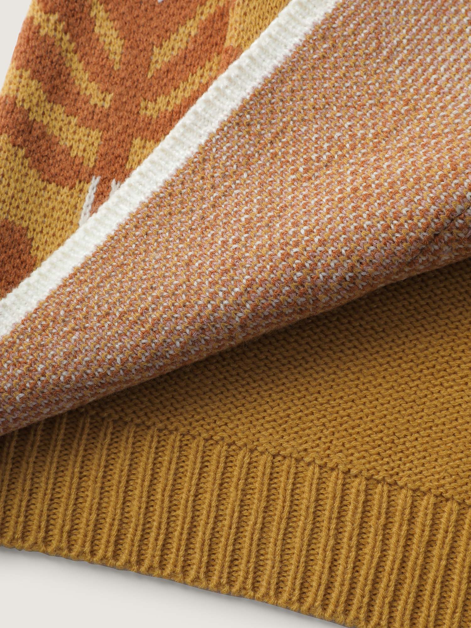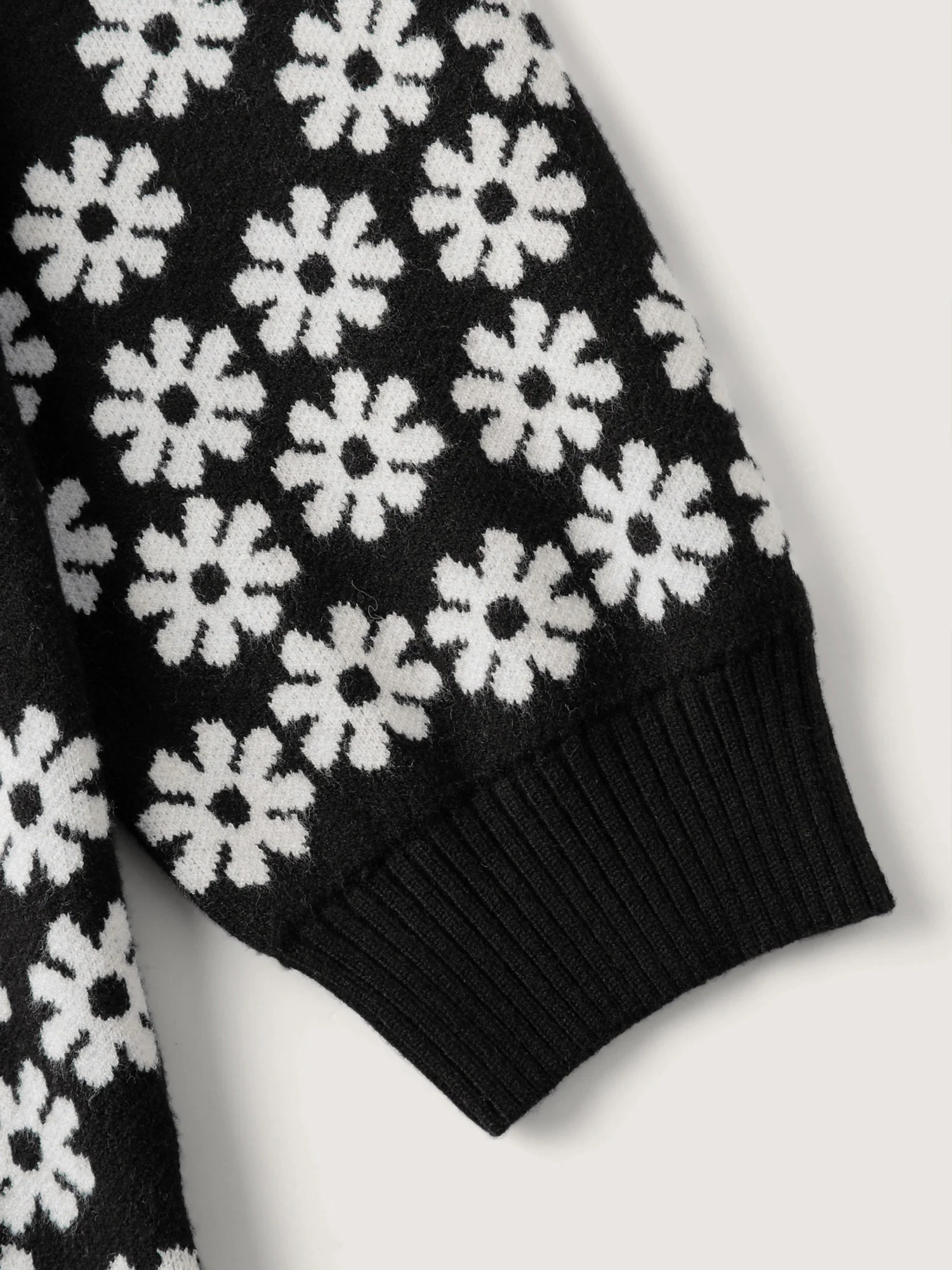 Leaf Jacquard Print Contrast Knit Cardigan