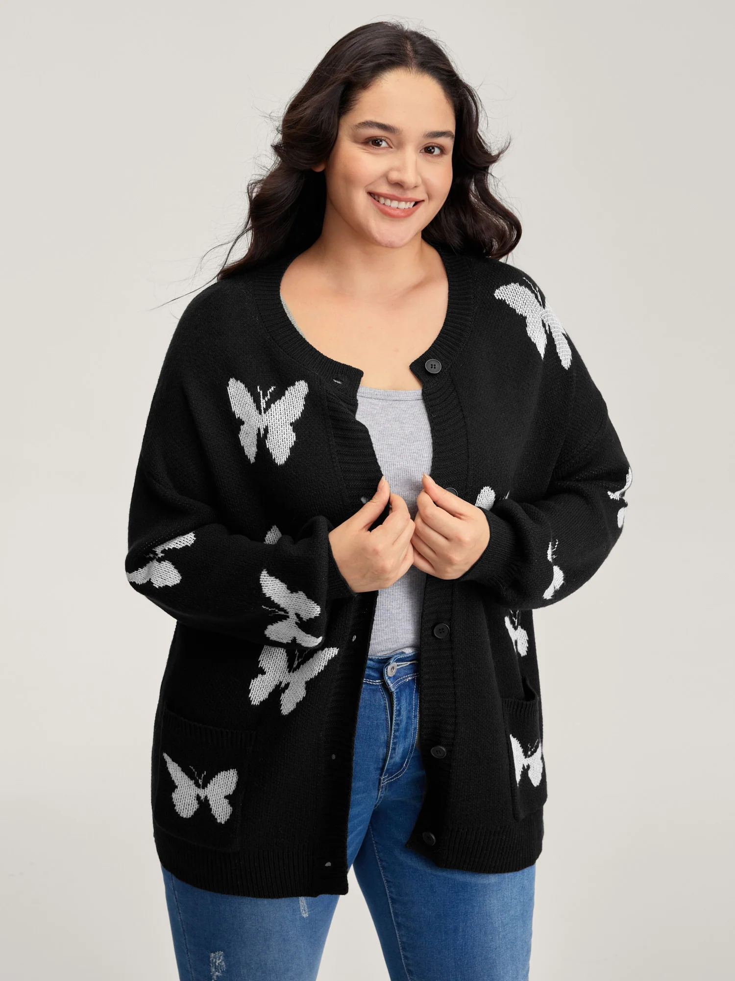 Butterfly Jacquard Pattern Knit Cardigan