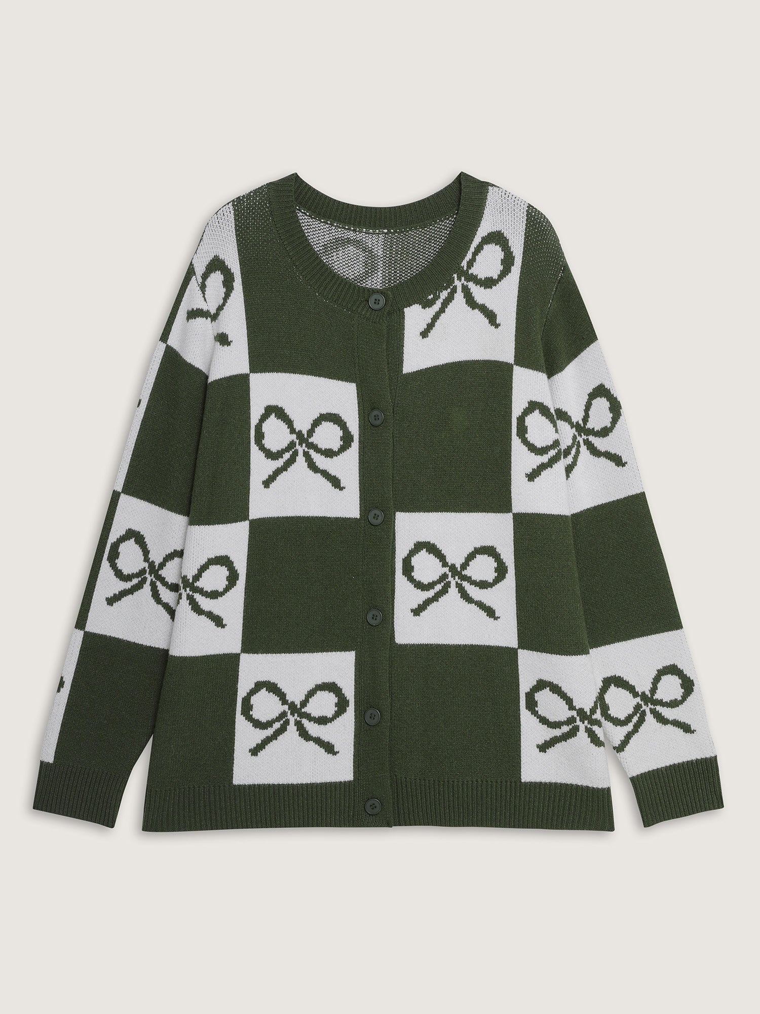 Checkered Bowknot Contrast Knit Cardigan