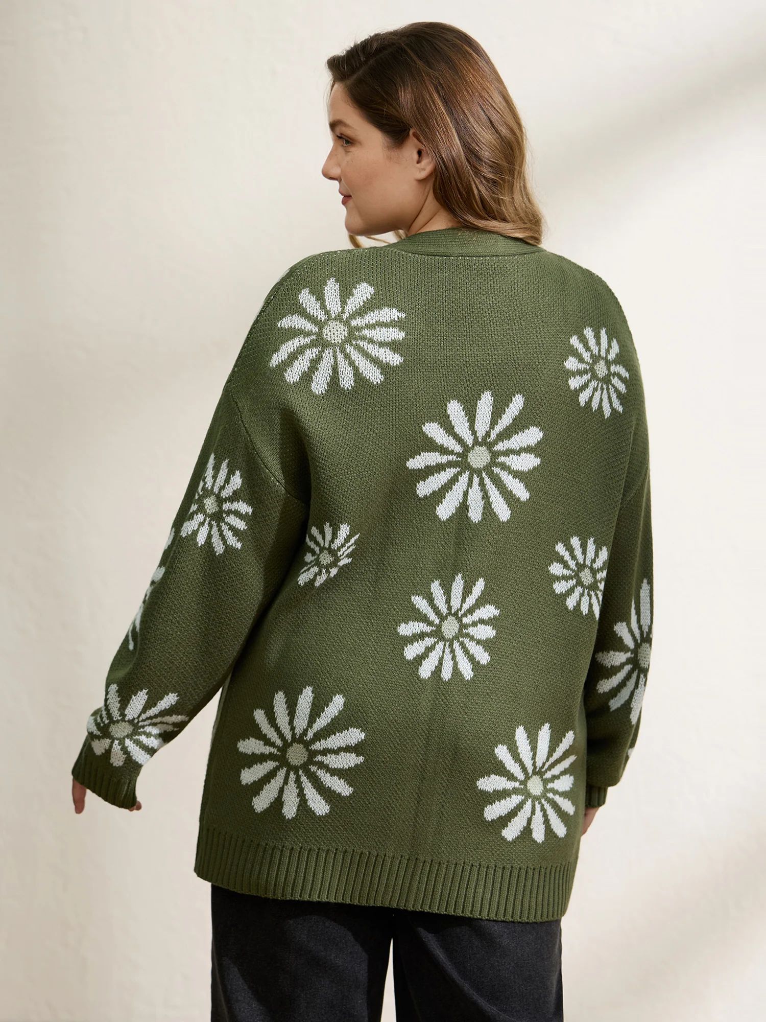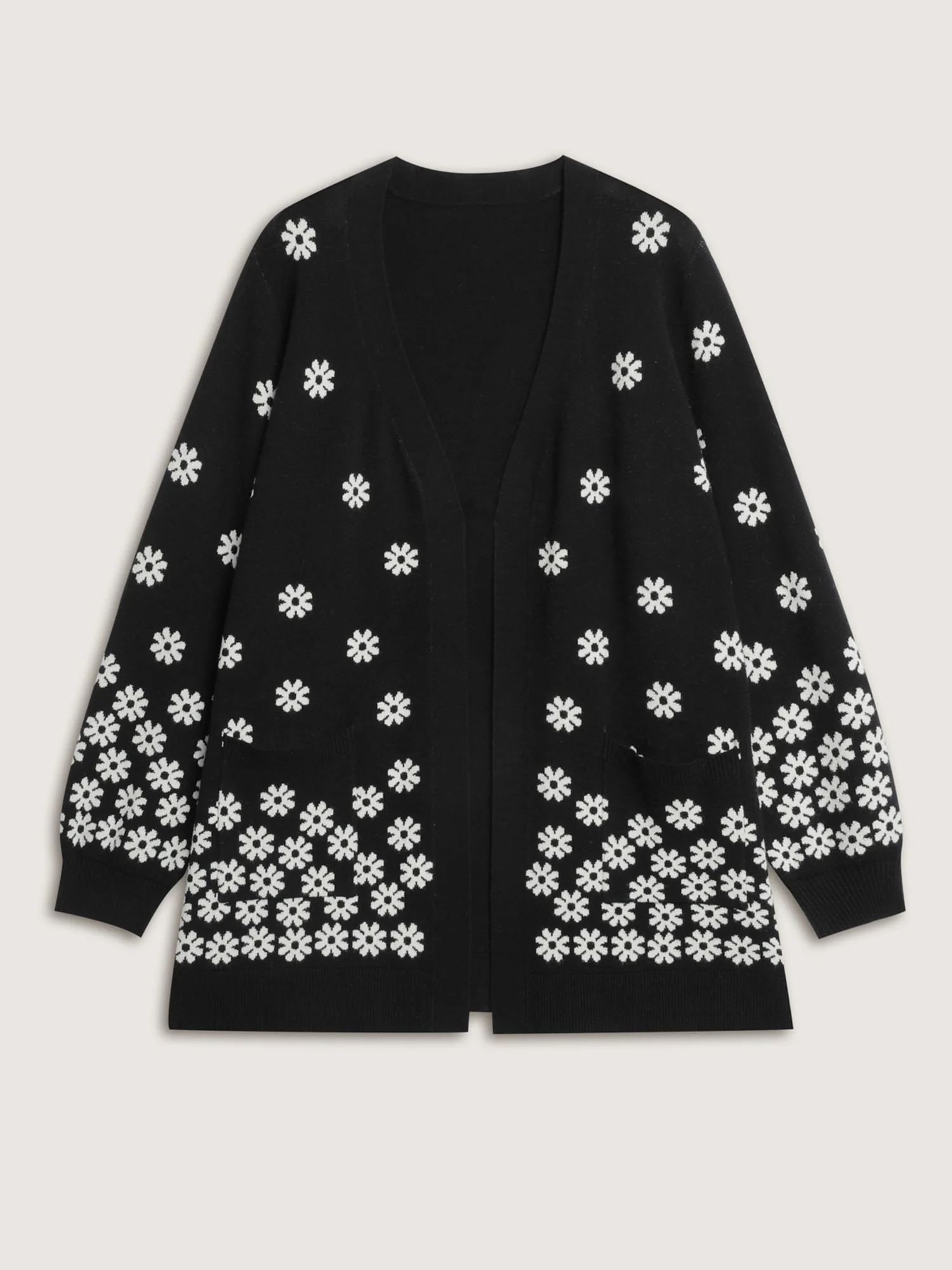 Scattered Floral Pattern Open-Front Cardigan