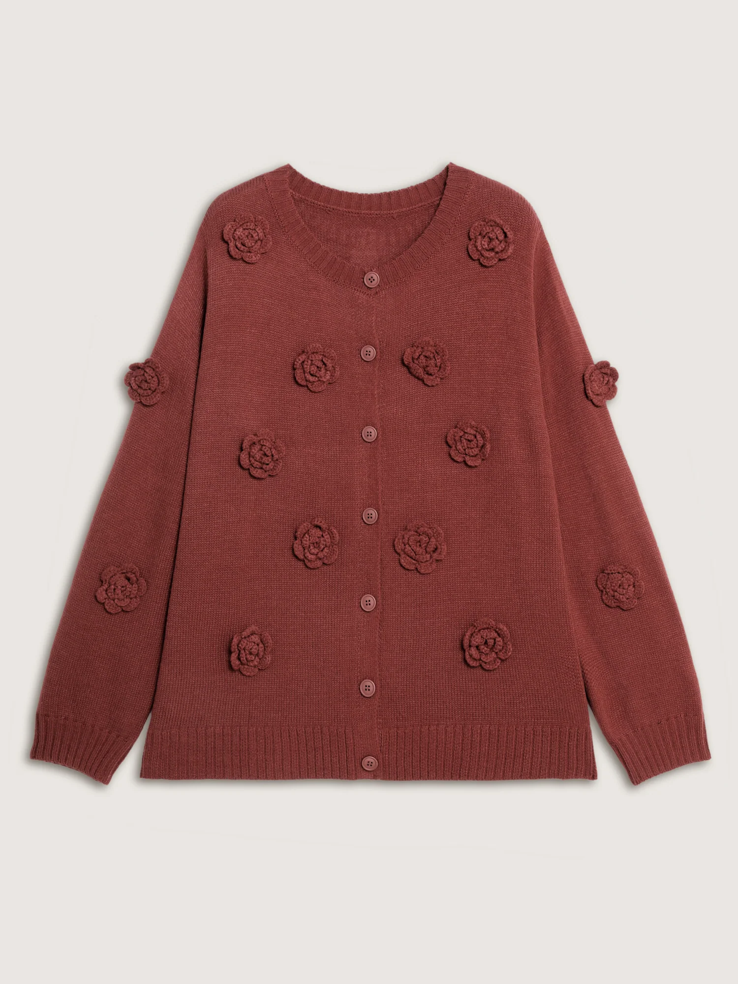 3D Floral Pattern Round Neck Knit Cardigan