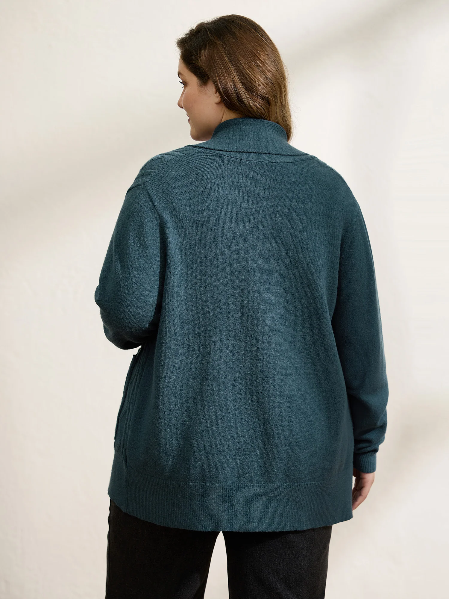 Supersoft Cable Knit Pockets Shawl Collar Knit Cardigan