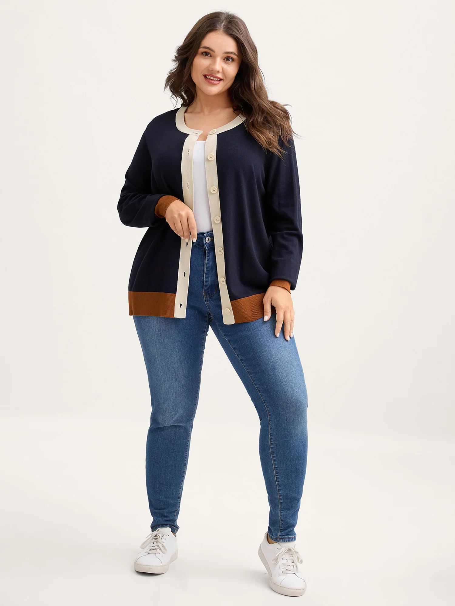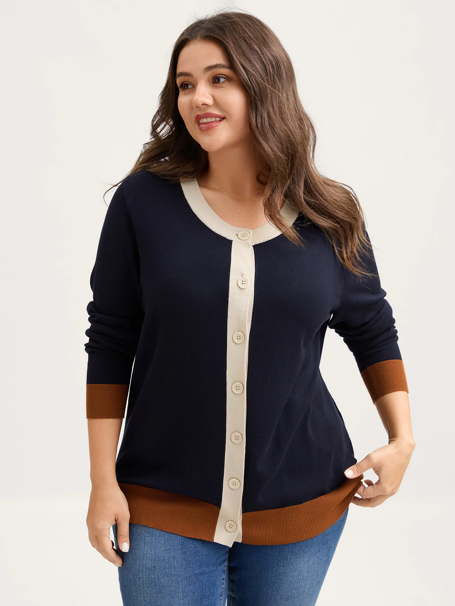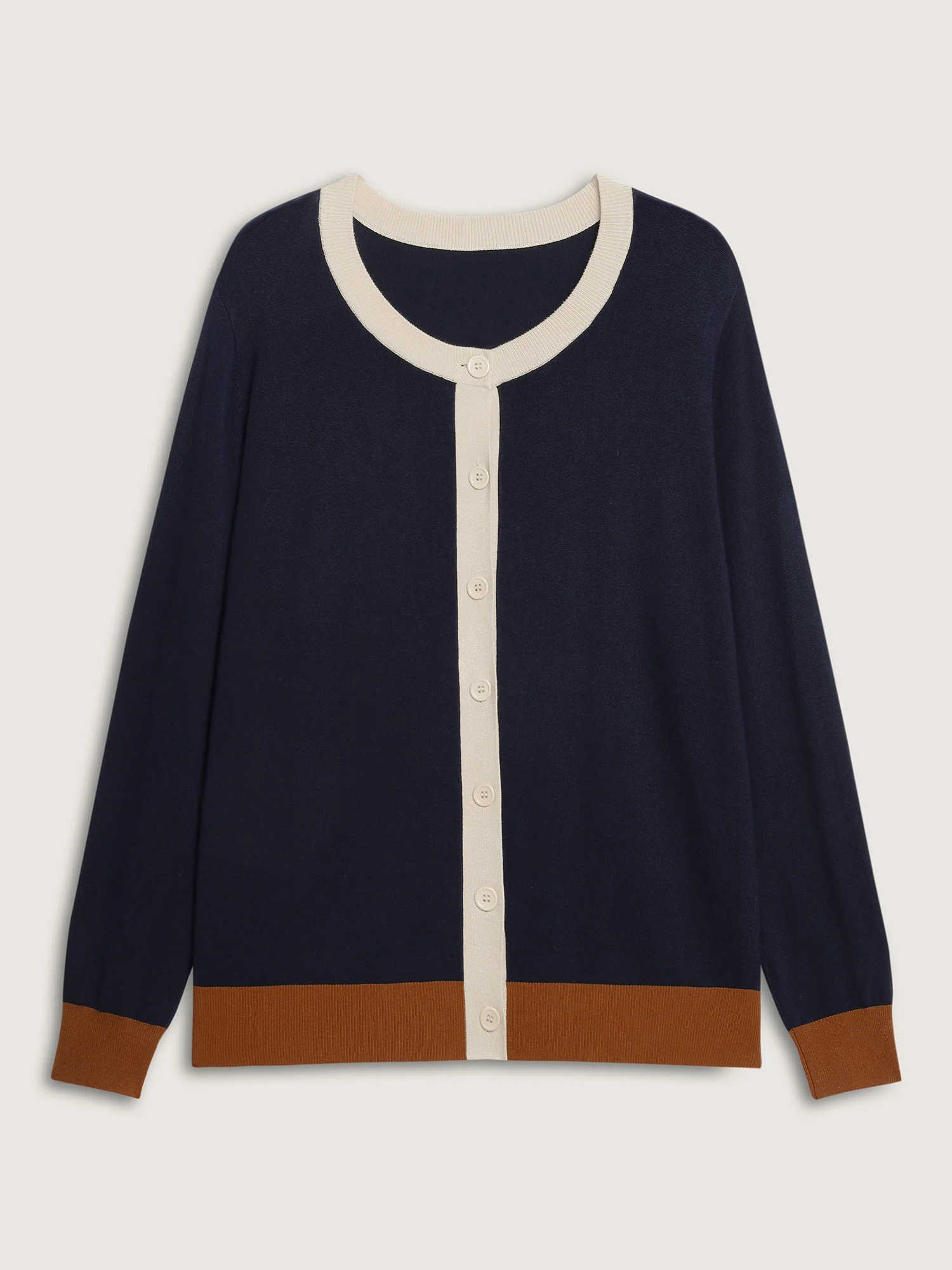 Supersoft Color Contrast Button-Down Knit Cardigan