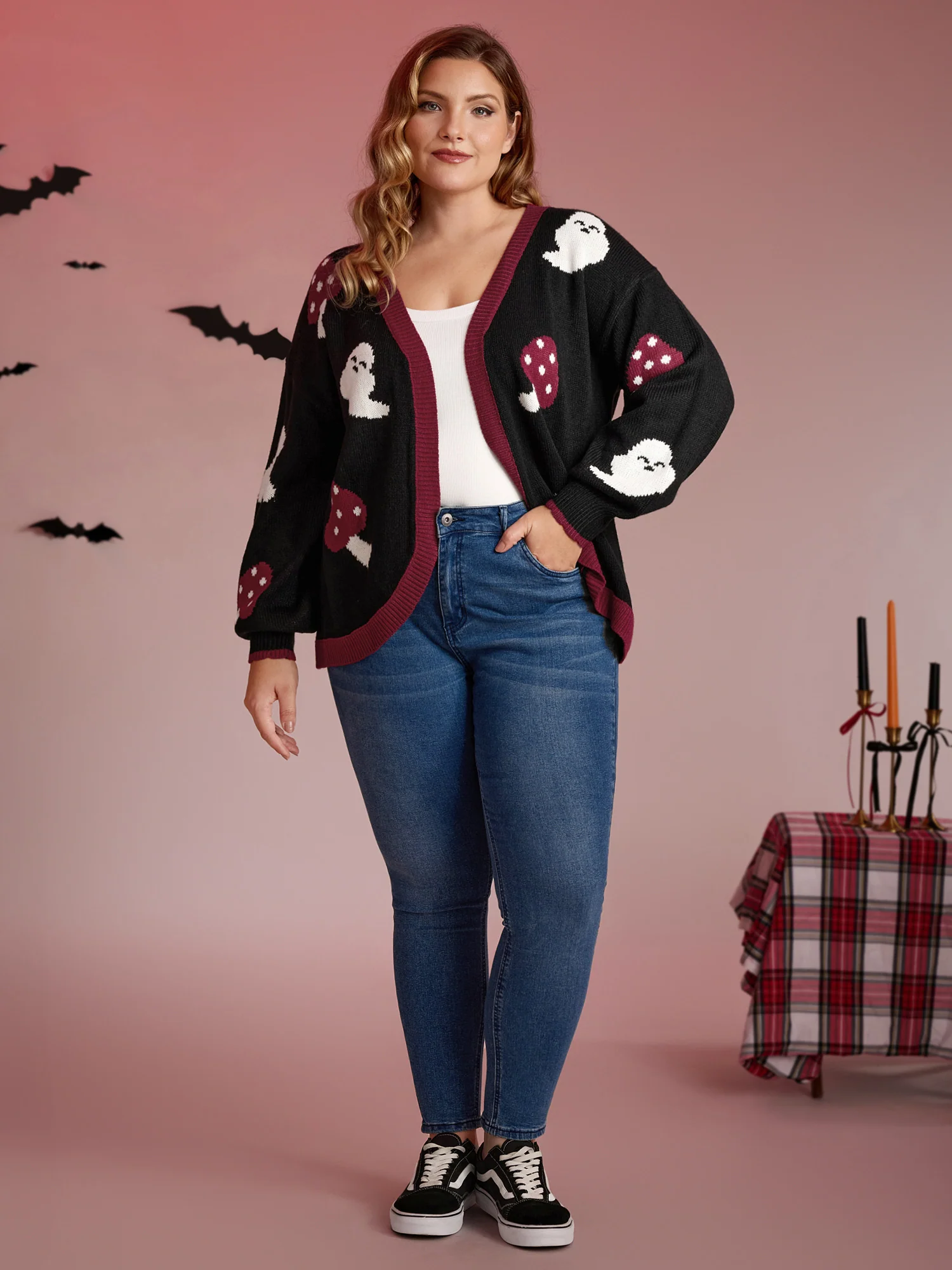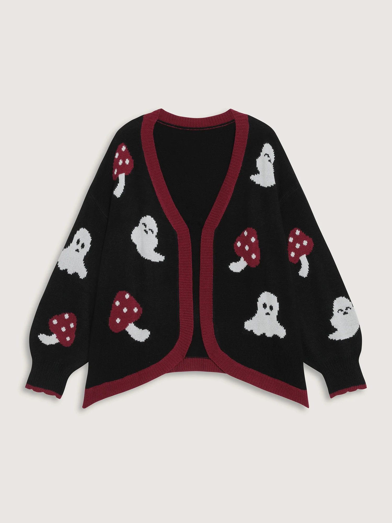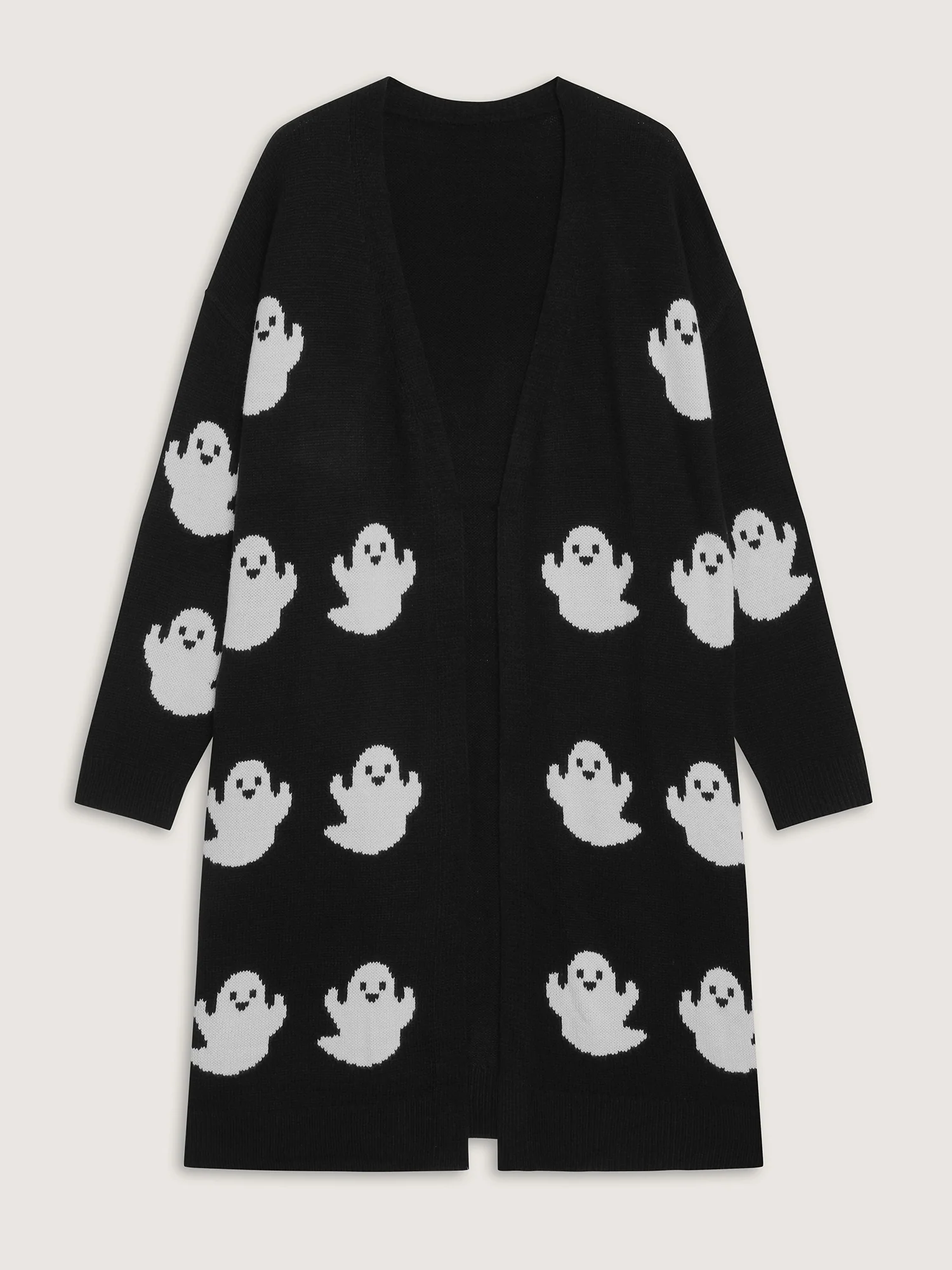 Happy Ghost Curvy Hem Open-Front Cardigan