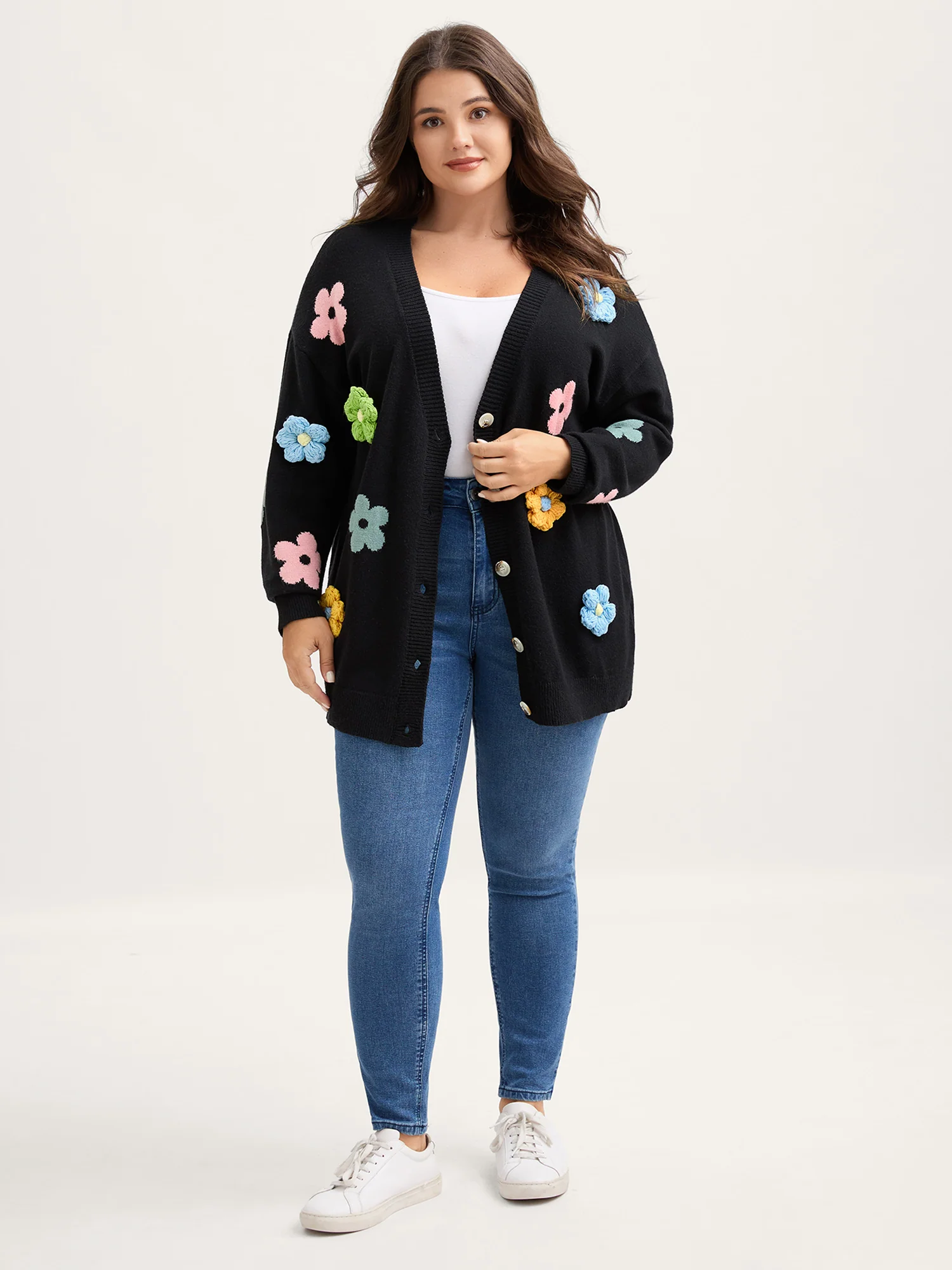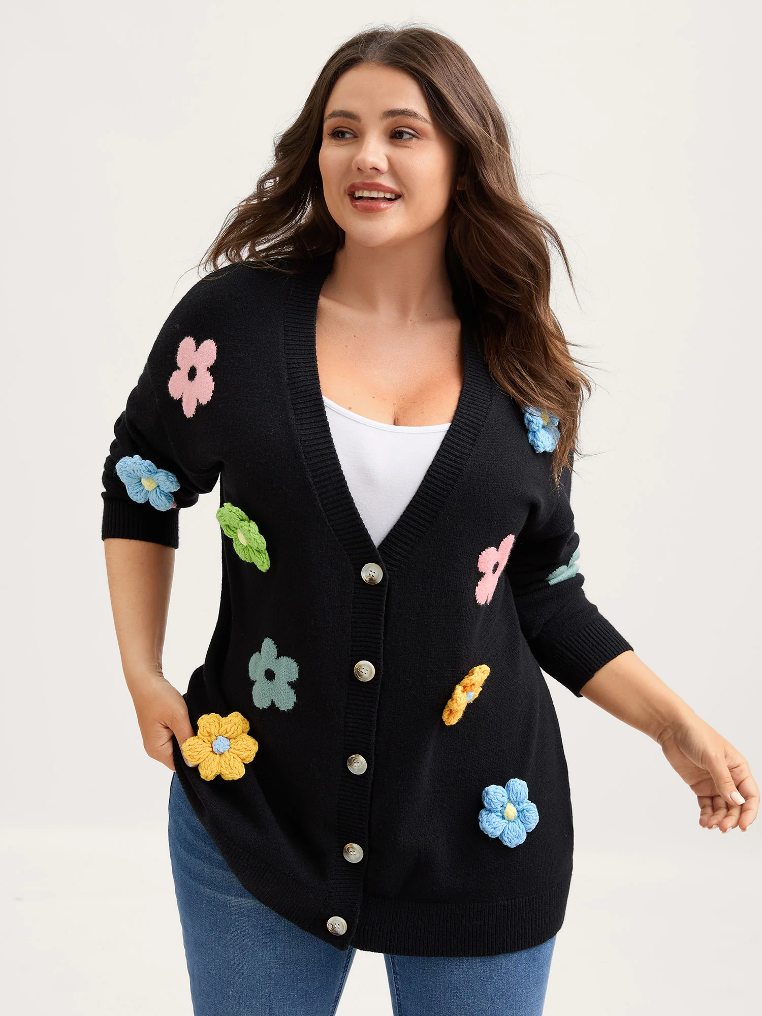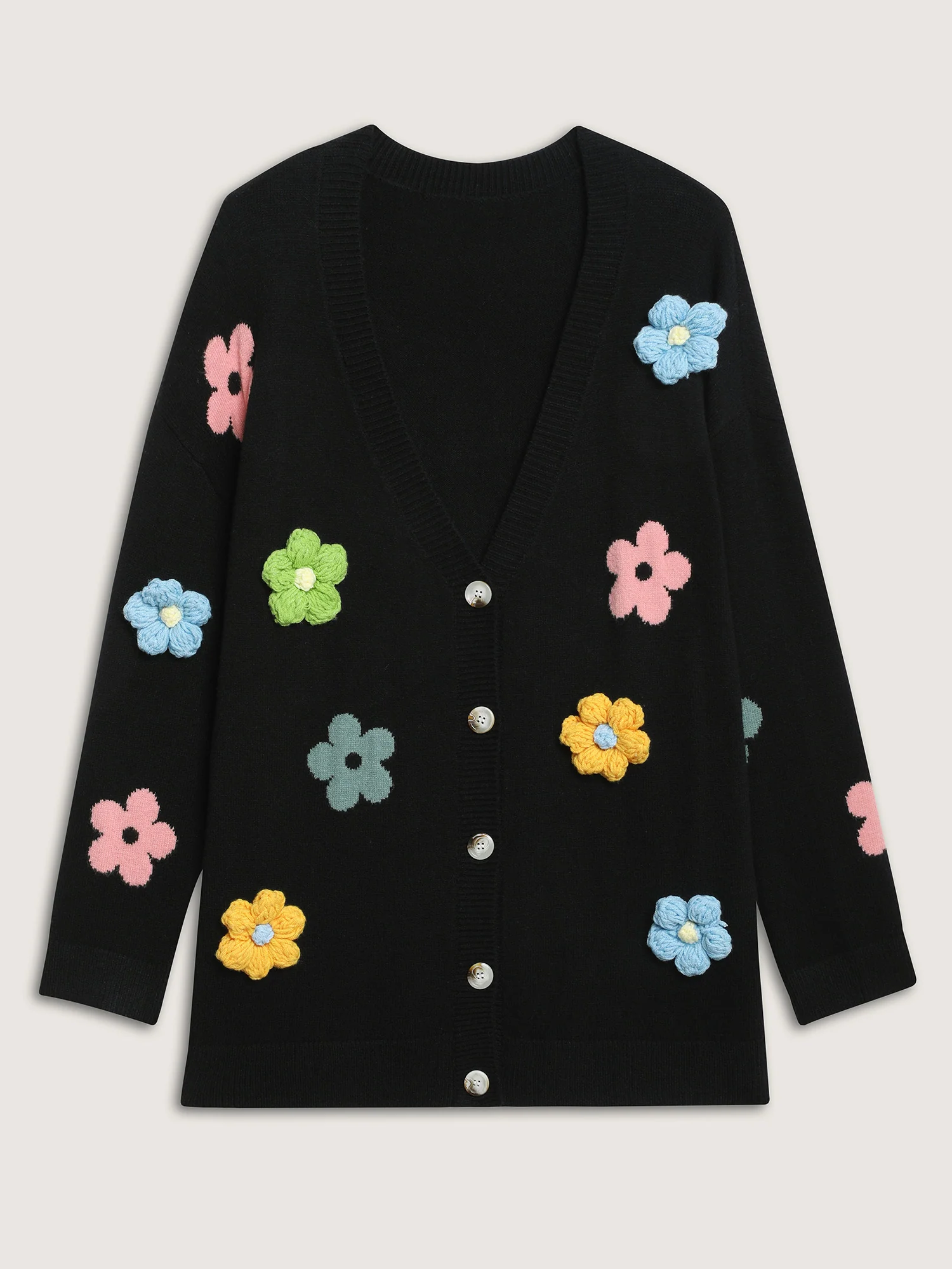 Happy Ghost Curvy Hem Open-Front Cardigan