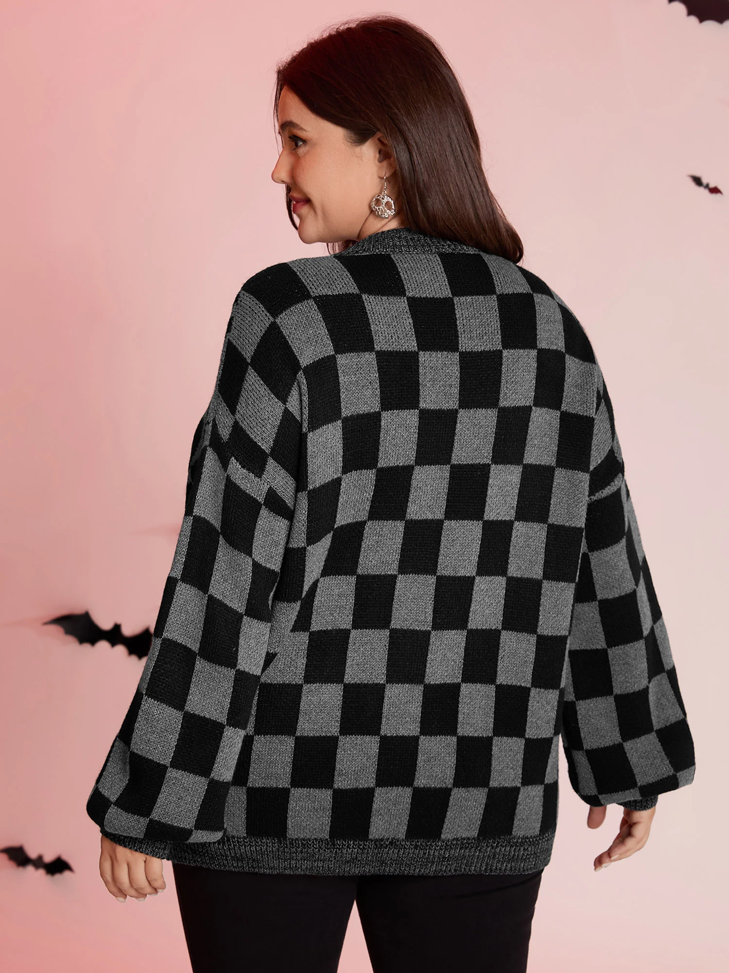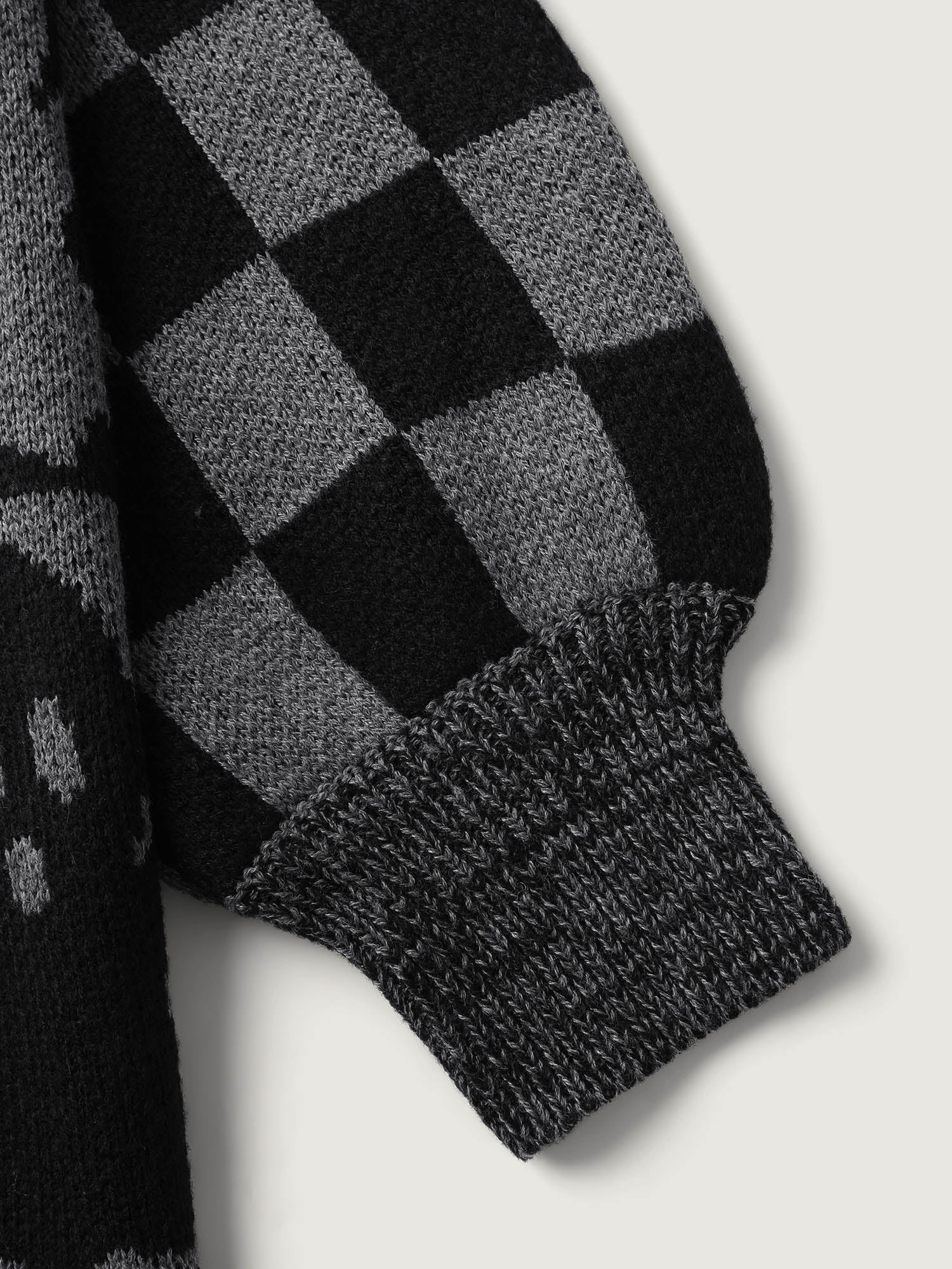 Ghost Checkered Jacquard Arc Swing Cardigan