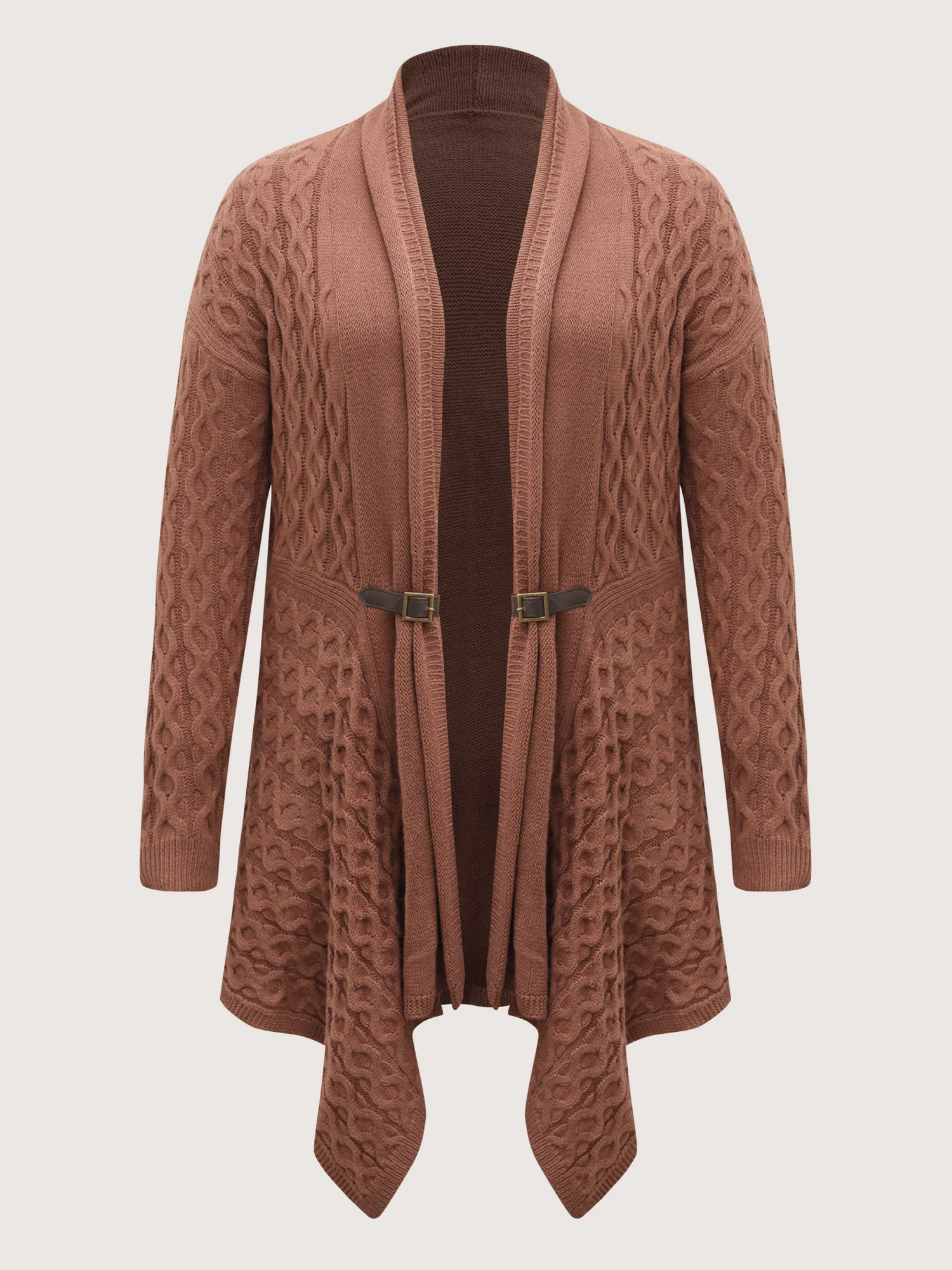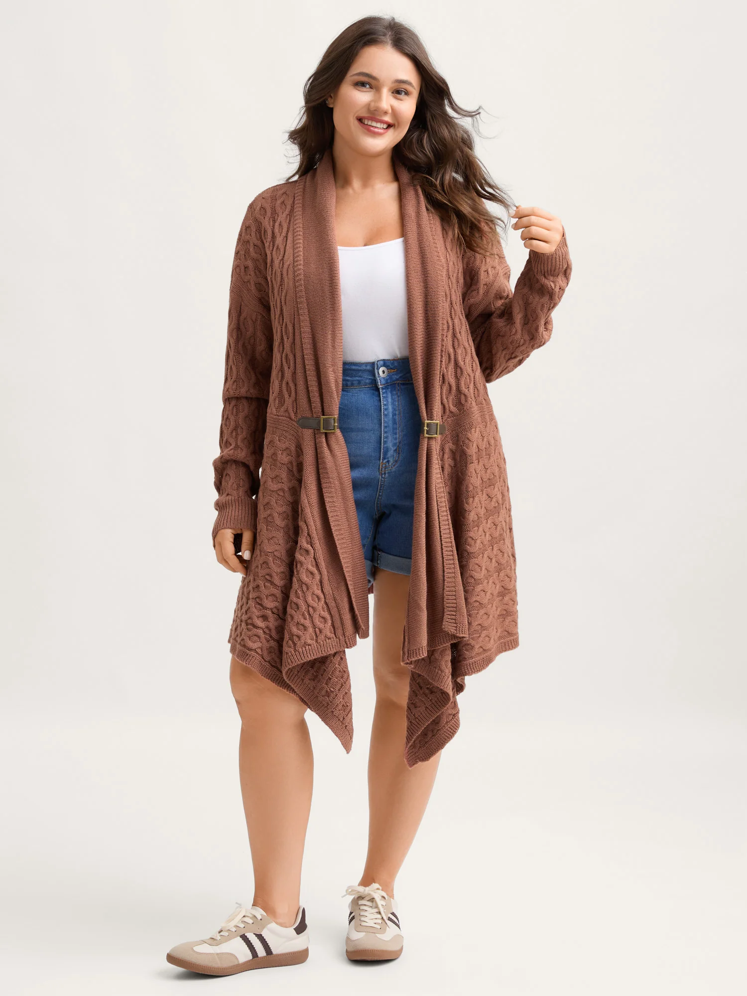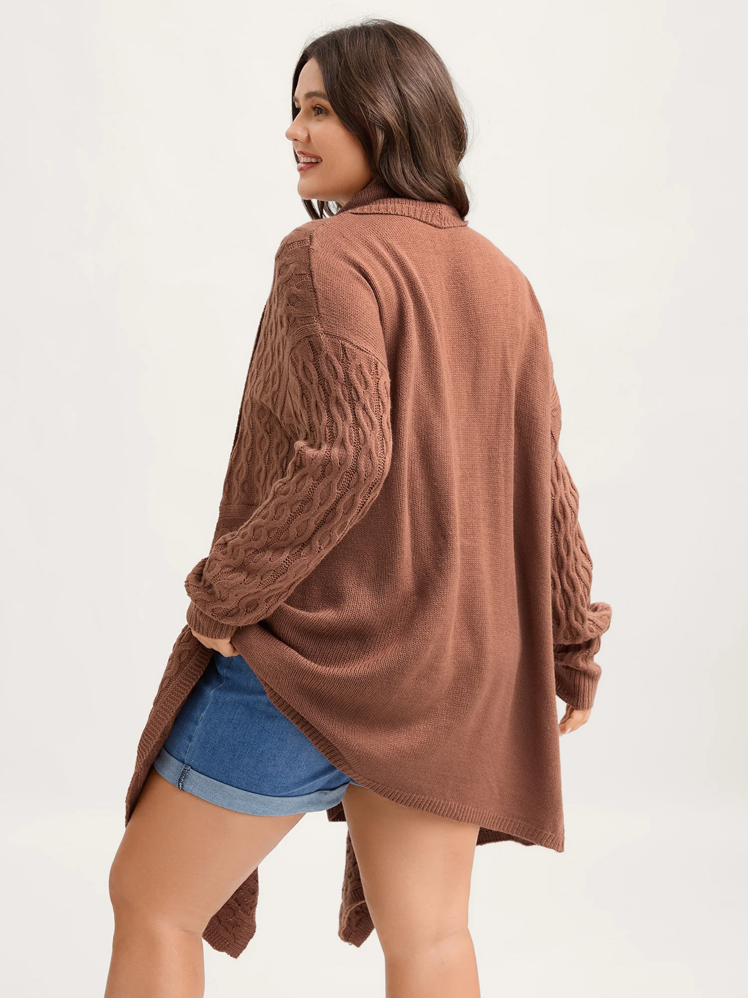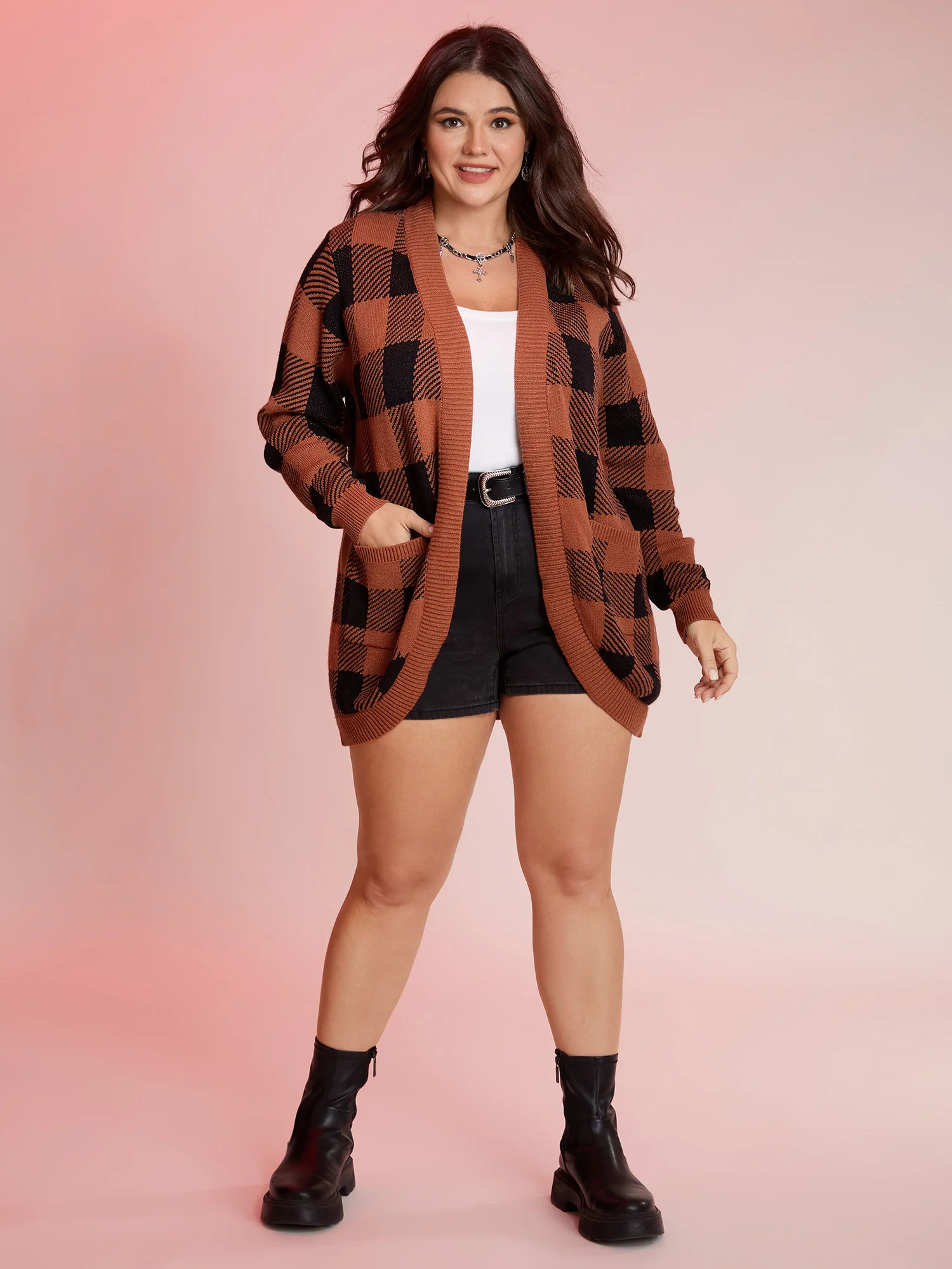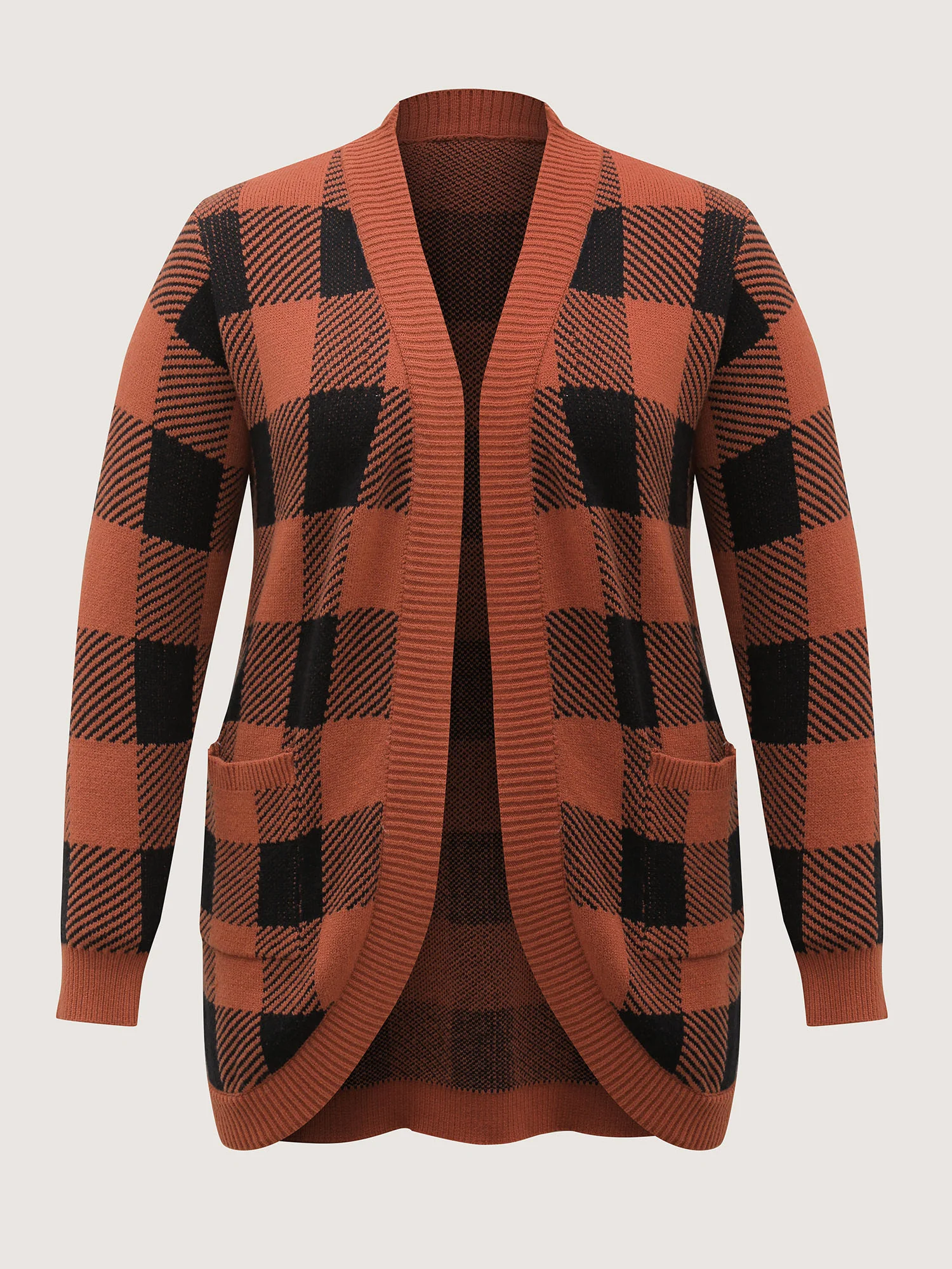 Supersoft Check Pattern Curvy Hem Pockets Cardigan