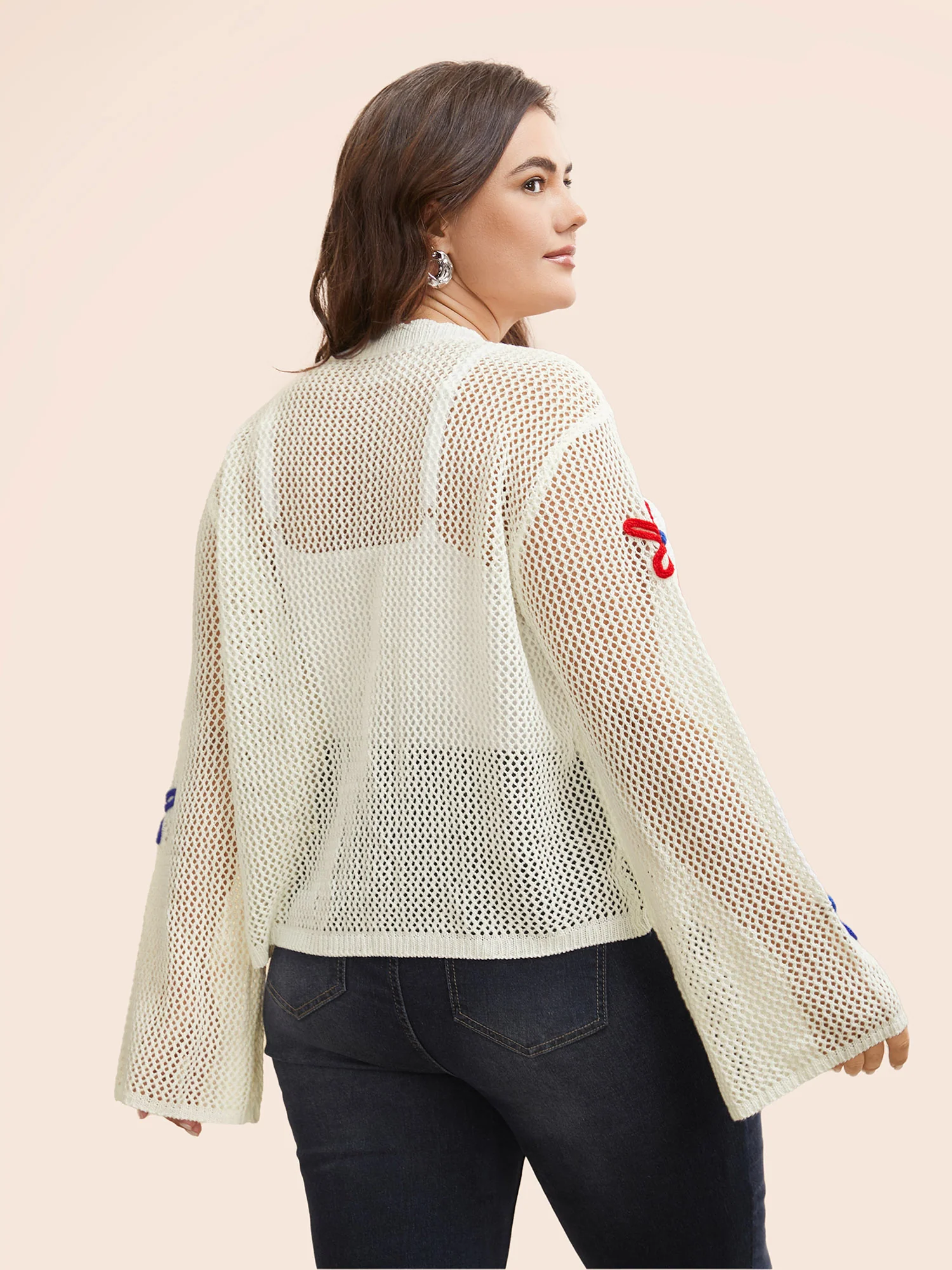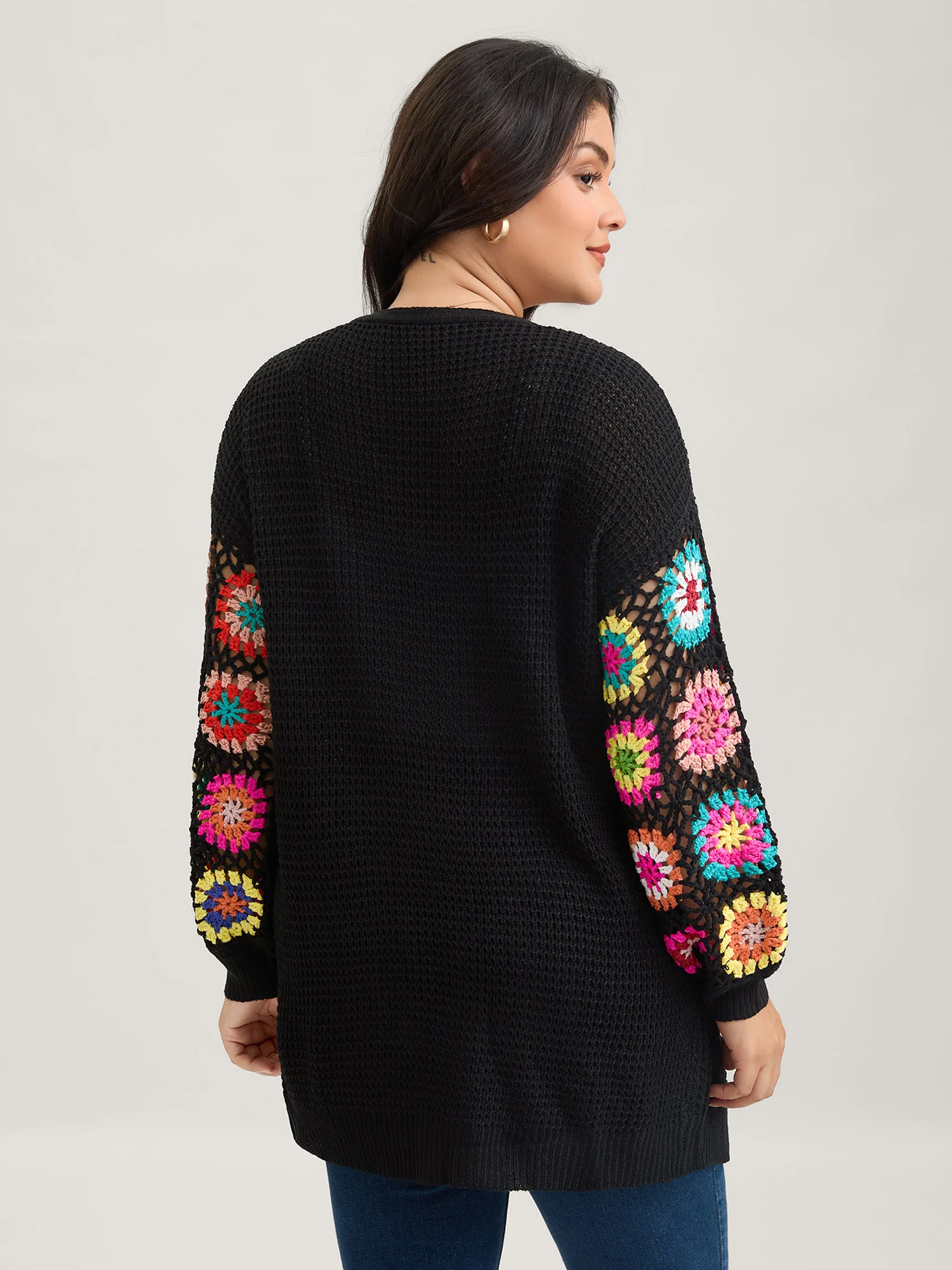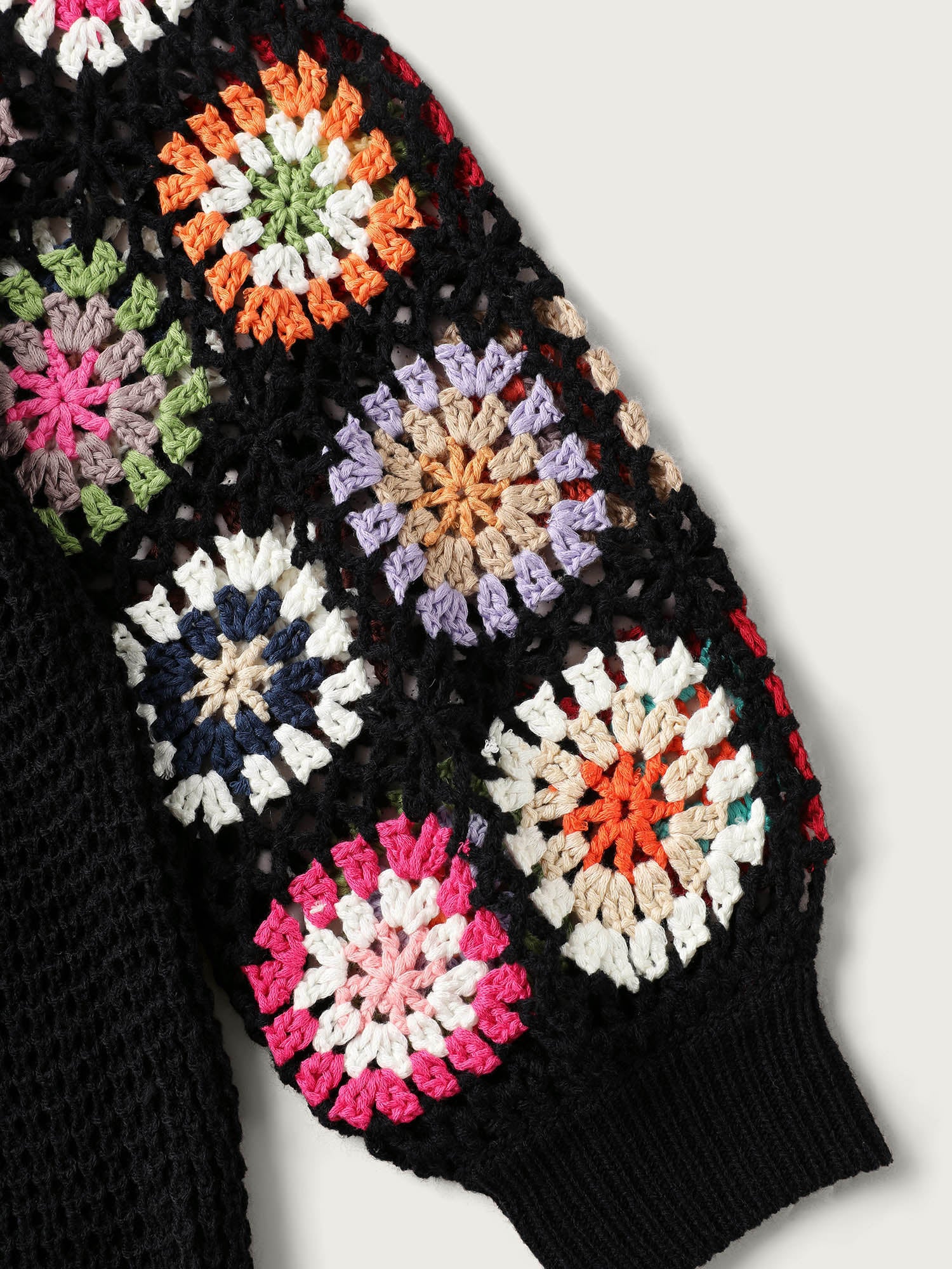 Crochet Floral Drop Shoulder Cut Out Cardigan