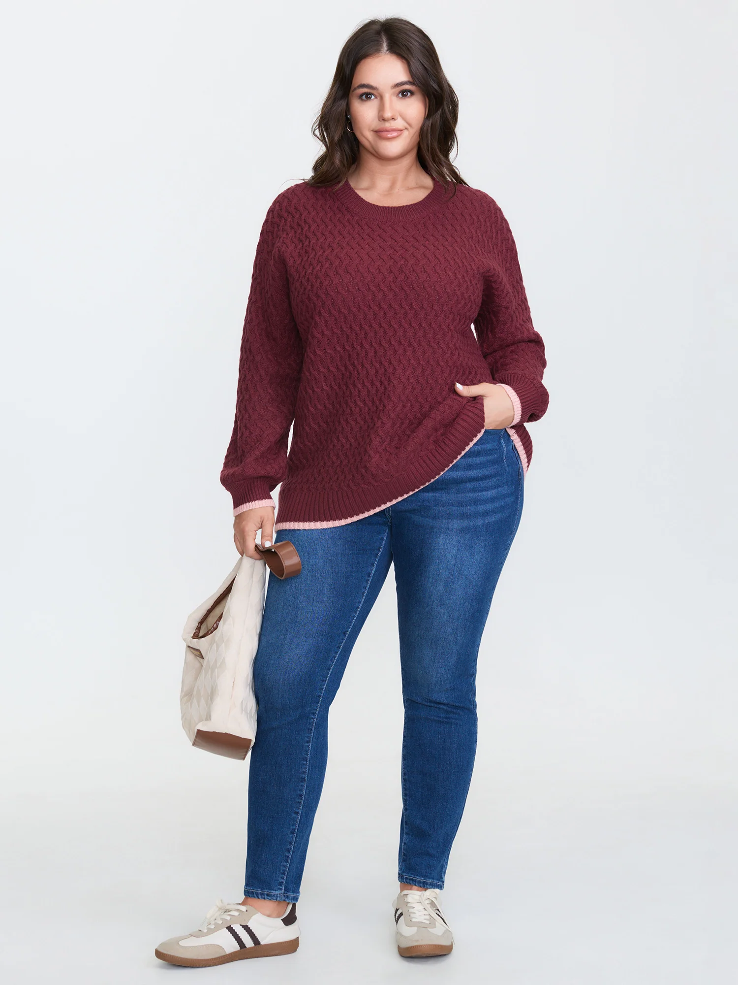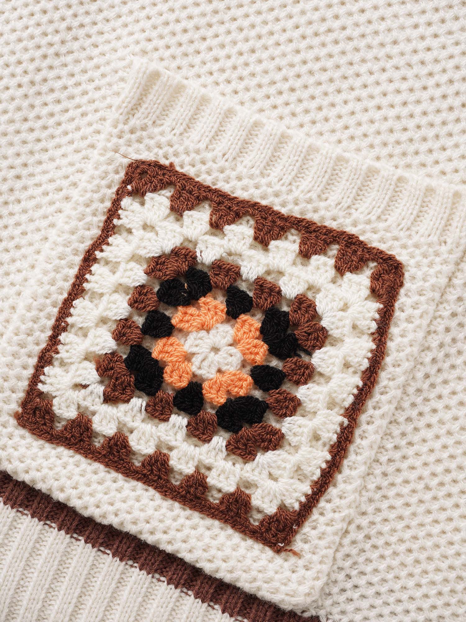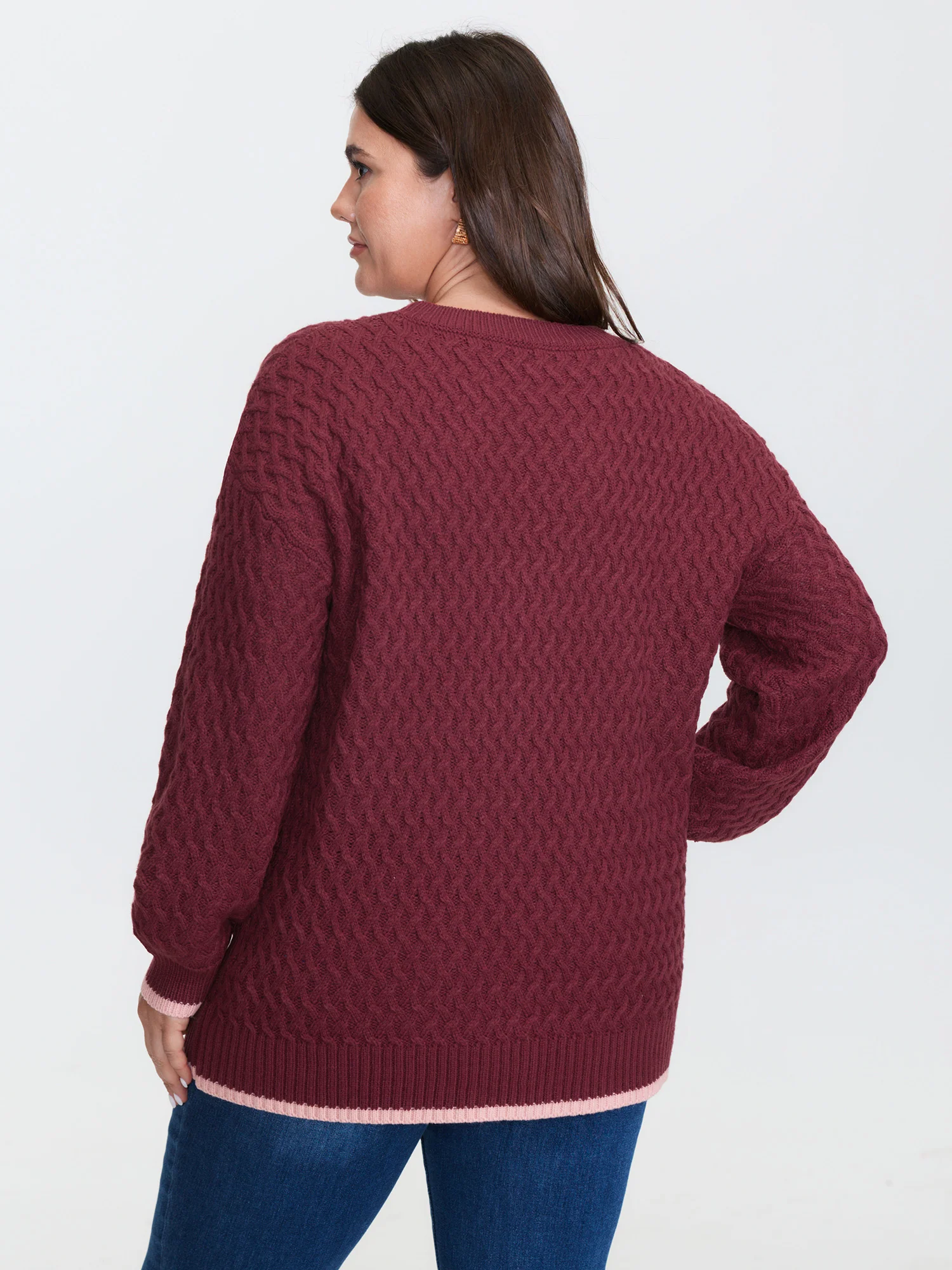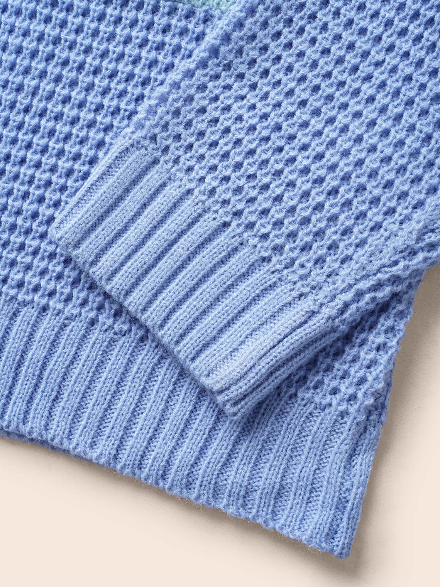 Crisscross Textured Color Contrast Pullover