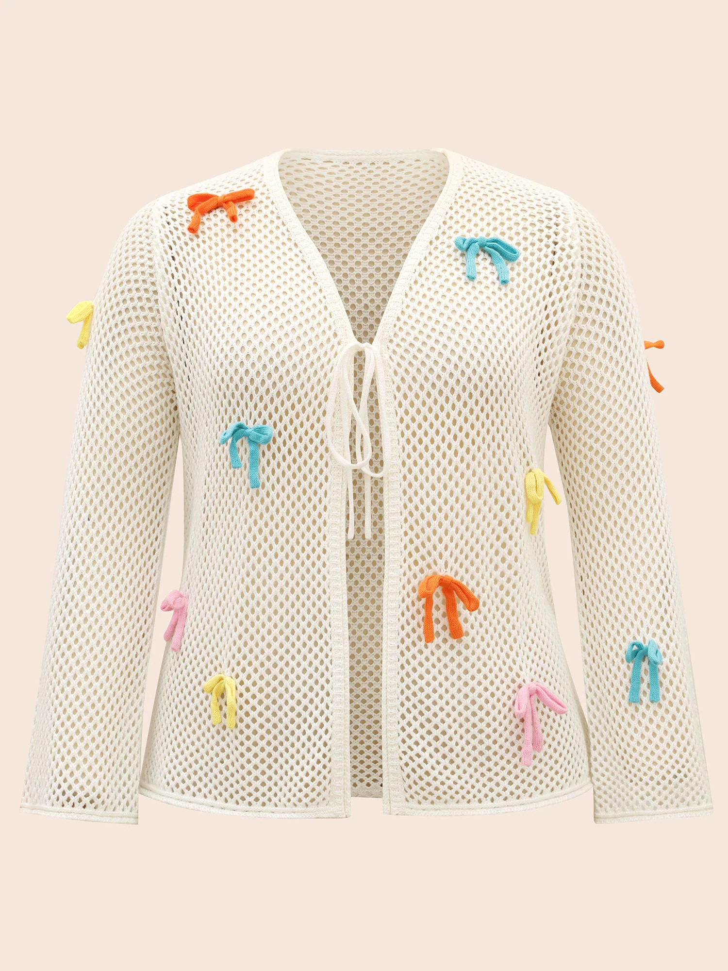 Bowknot Tie Knot Bell Sleeve Cardigan