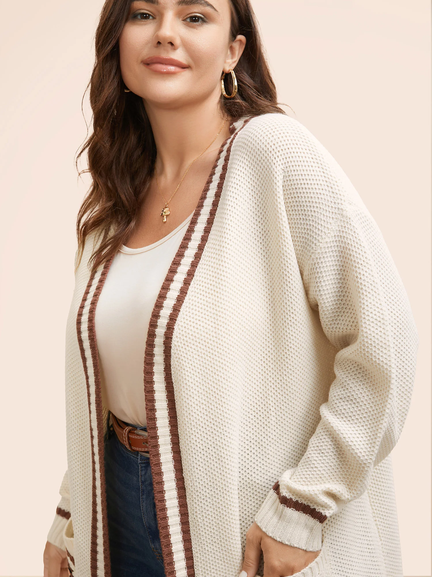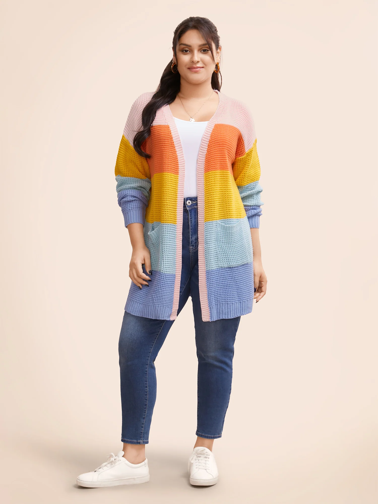 Colorblock Contrast Drop Shoulder Pocket Cardigan