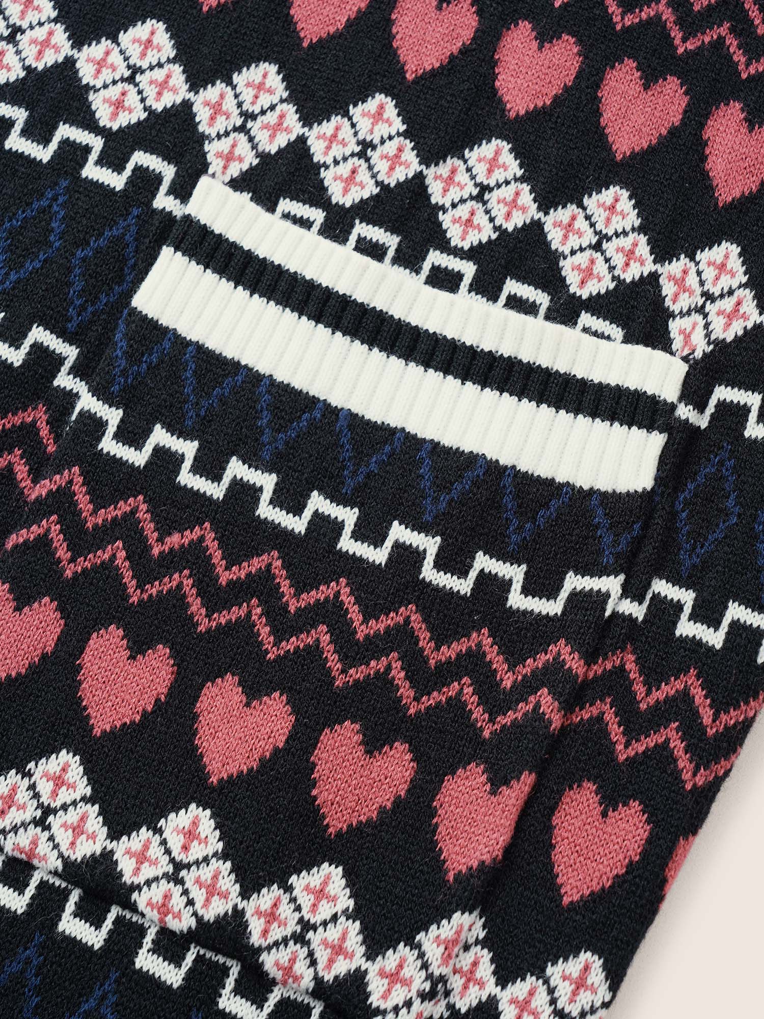 Heart Geometric Jacquard Pocket Cardigan