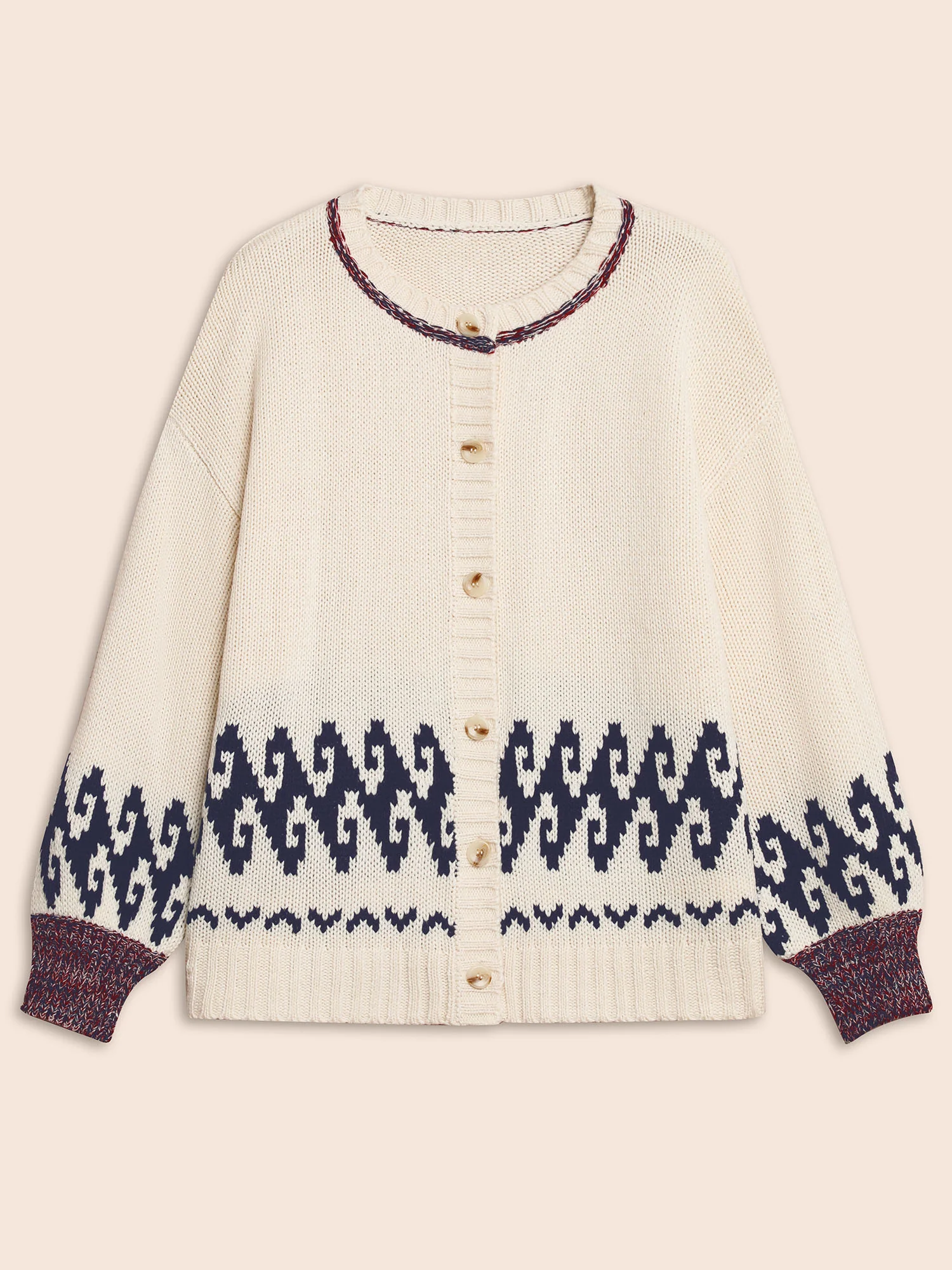 Fair Isle Balloon Sleeve Crew Neck Cardigan