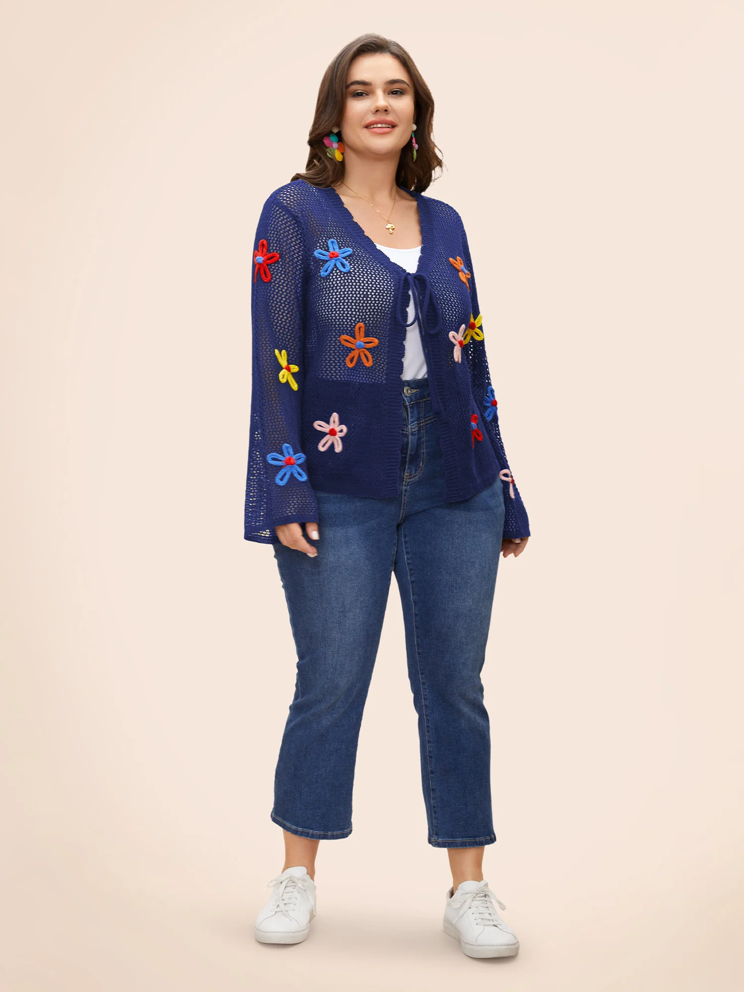 Knit Floral Front Tie Cardigan