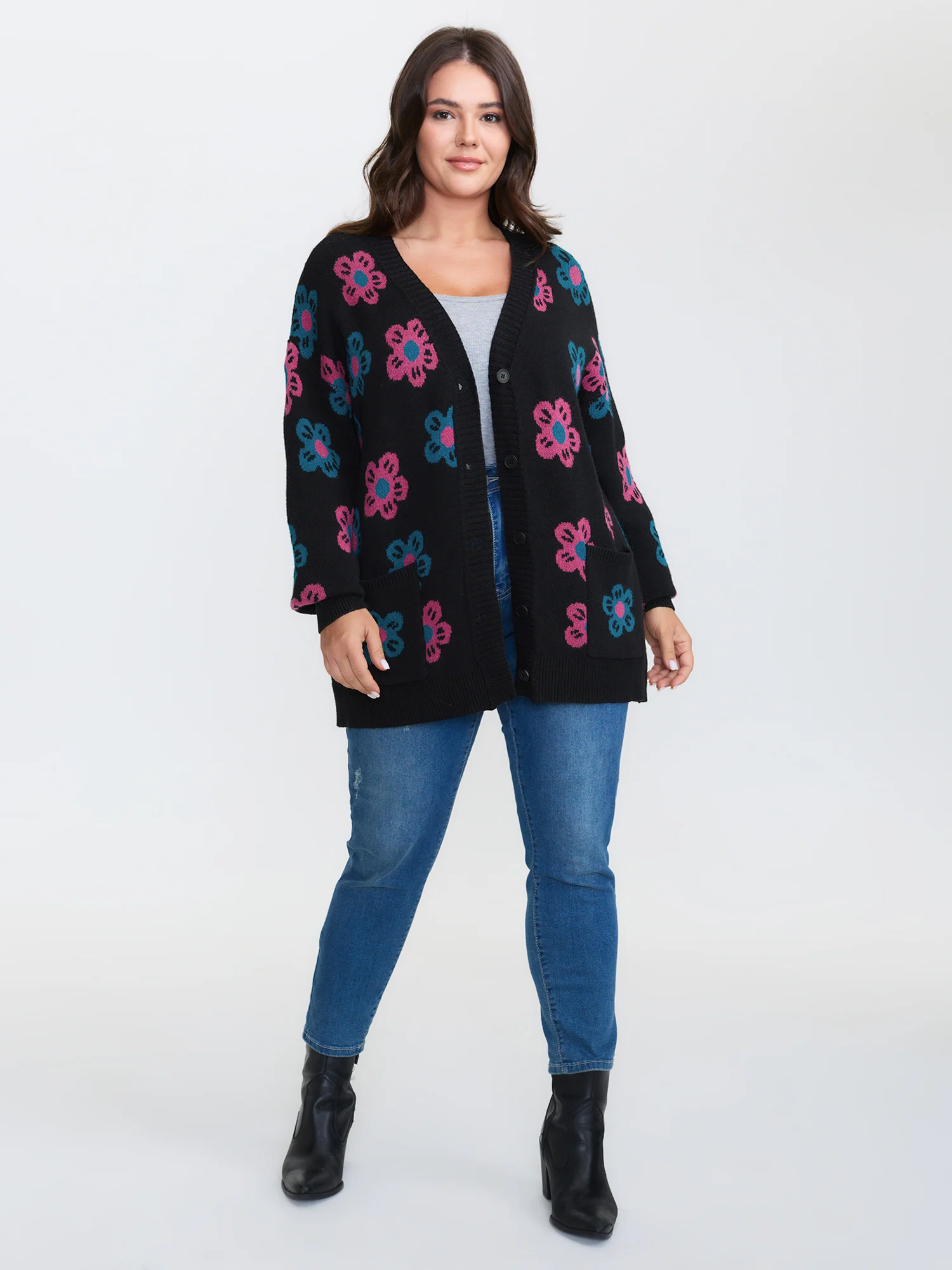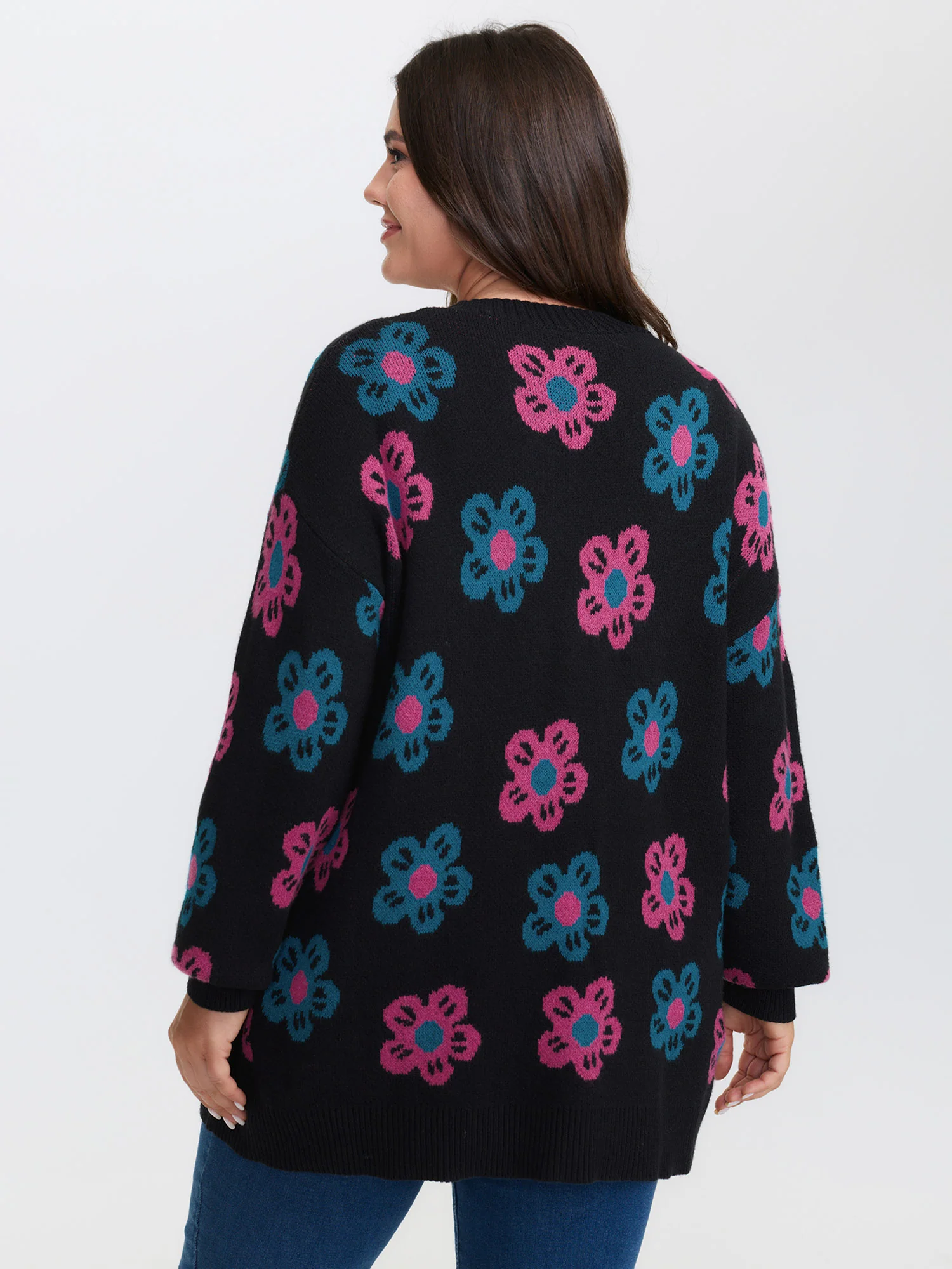 Supersoft Colorful Floral Drop Shoulder Knit Cardigan
