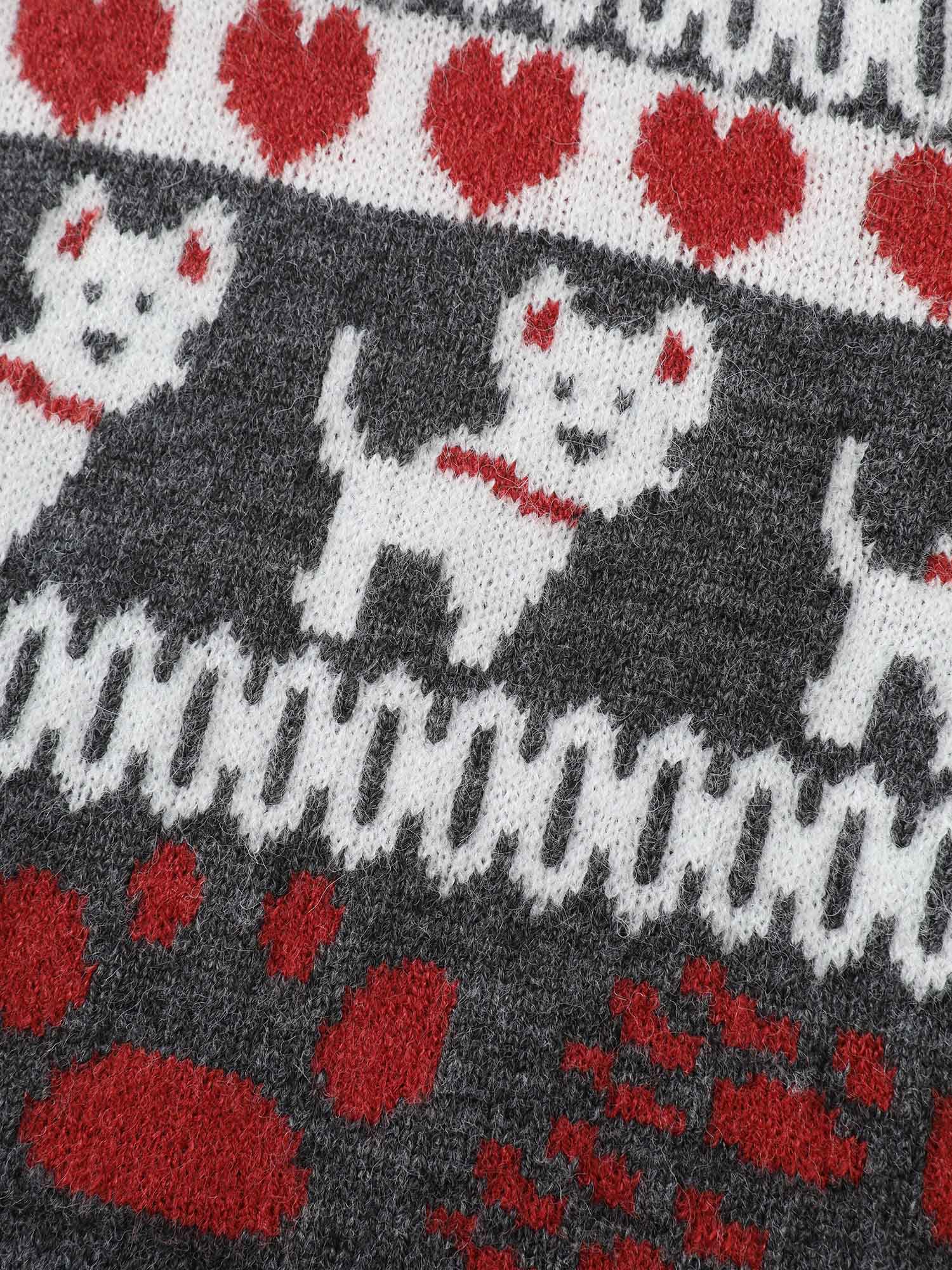 Animal Print Jacquard Polo Collar Knit Cardigan