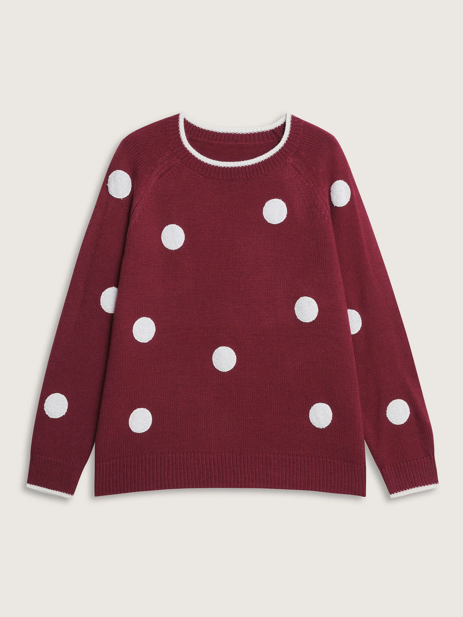 Polka Dots Textured Raglan Sleeve Pullover